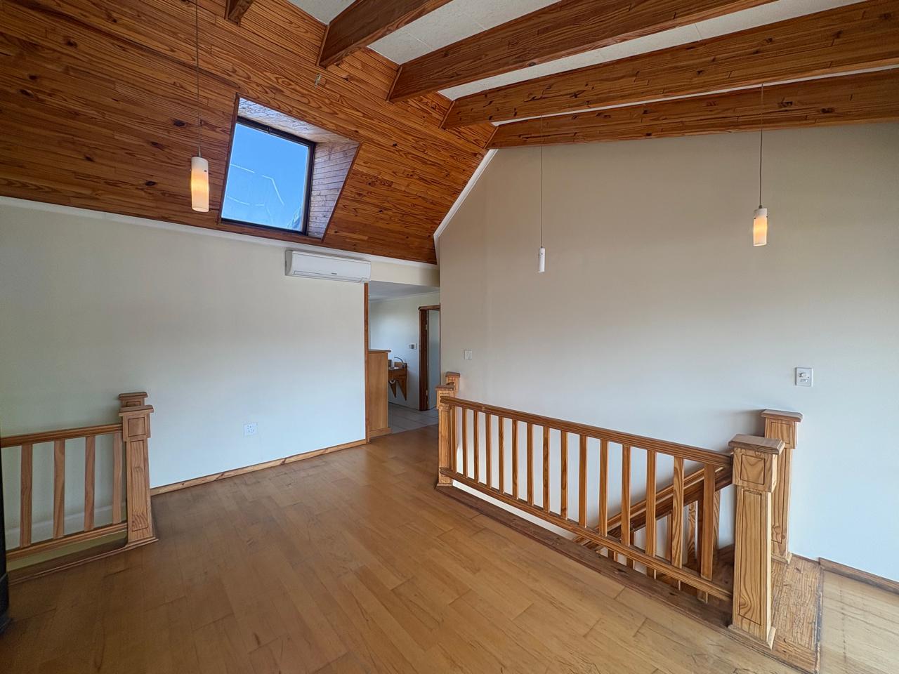 Upstairs, you'll find a versatile space that can serve as a granny flat or teenager's pad. This self-contained area includes one bedroom, a full bathroom, a lounge, a kitchenette, and a balcony with breathtaking panoramic views.