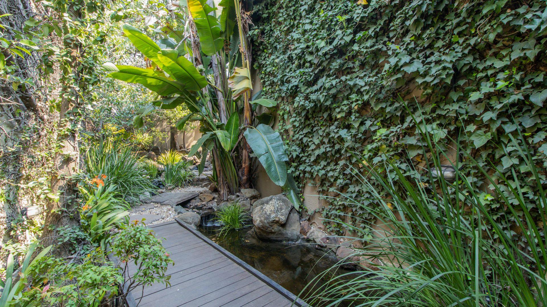 Three of the four main bedrooms have doors that open directly to the tranquil garden and pool area, enhancing the peaceful ambiance of the home. The expansive garden is meticulously maintained, creating a serene oasis for relaxation and enjoyment. Additional amenities include a separate outside laundry room and staff quarters.