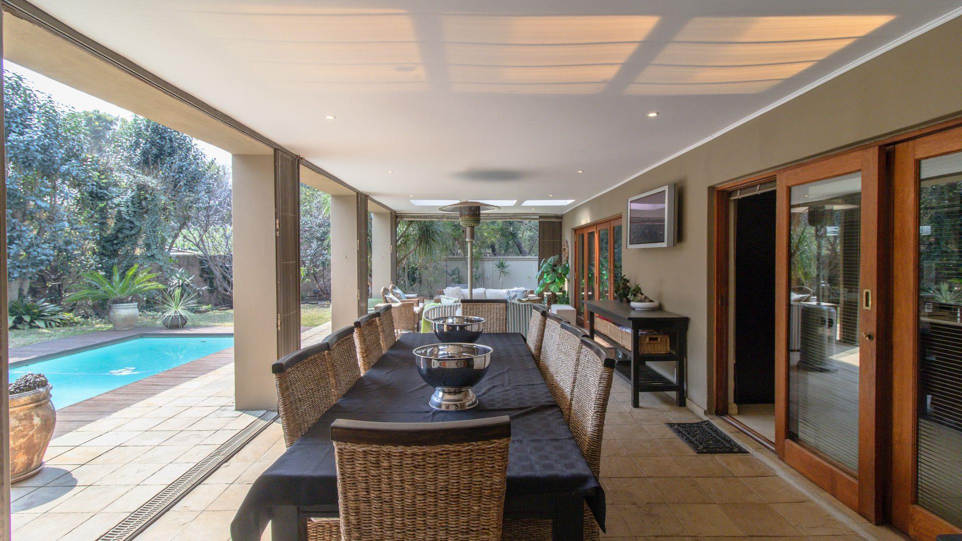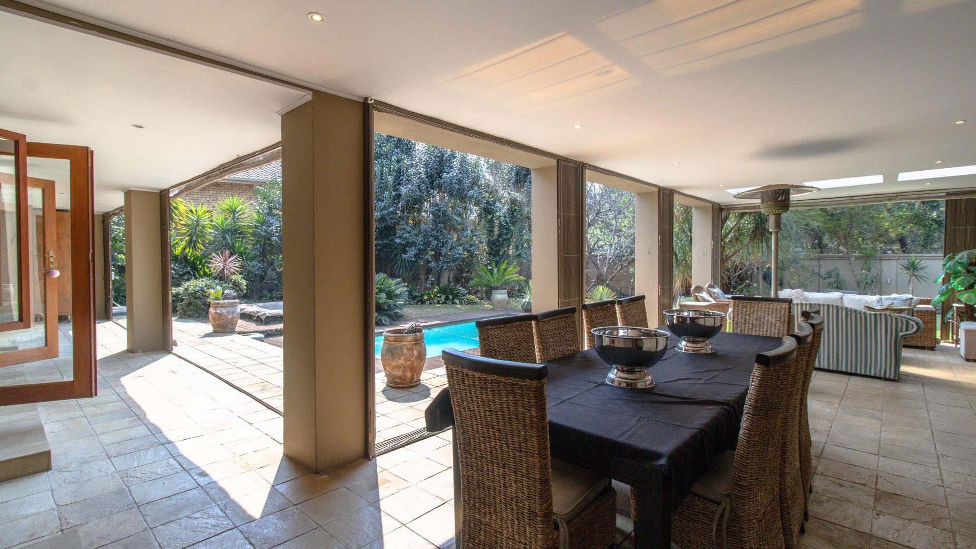 At the heart of this home lies an open-plan TV lounge, equipped with a state-of-the-art projector and a retractable big screen, ideal for entertainment enthusiasts. This space seamlessly flows into a chef’s kitchen and dining area, making it perfect for hosting gatherings. For moments of relaxation, a separate cozy lounge offers a serene retreat. The indoor-outdoor design ensures that living areas open up to a covered patio, perfect for alfresco dining or lounging by the beautiful heated pool and Jacuzzi.