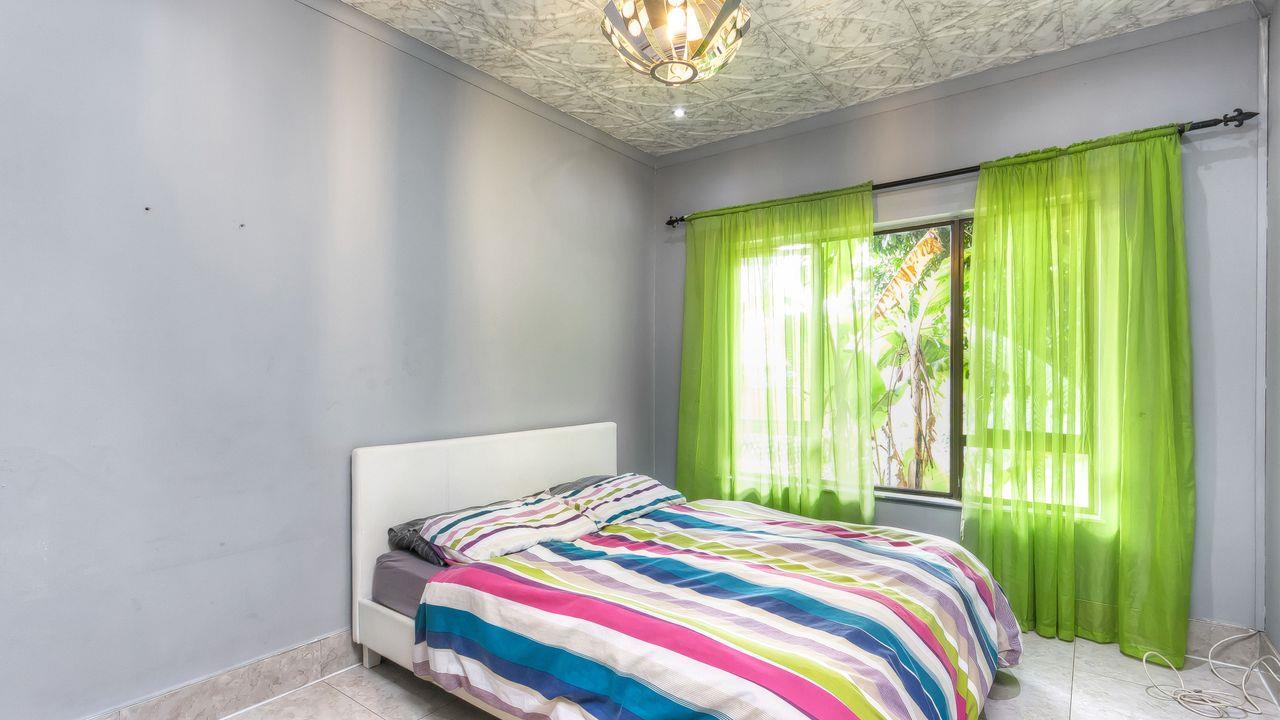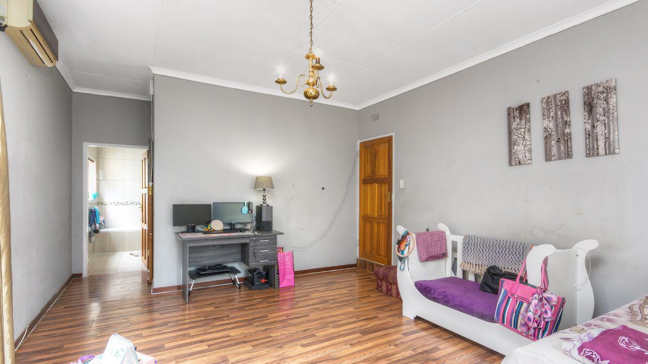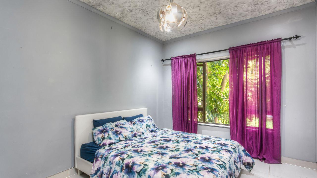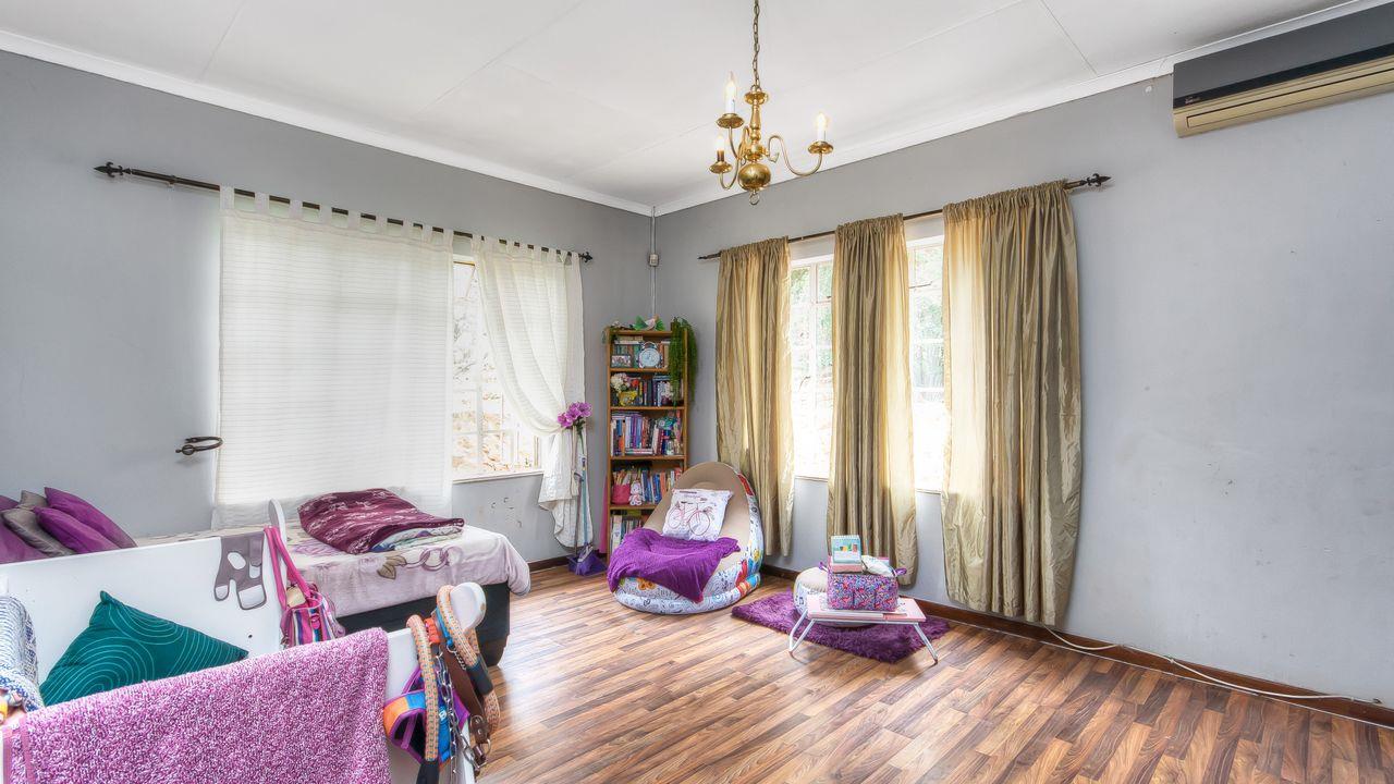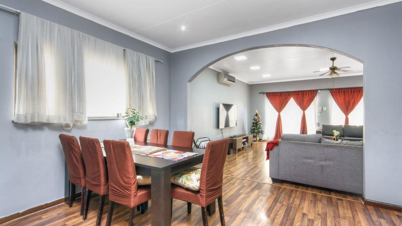 Beautiful 4 bedroom with BIC laminated floors, kitchen, and bathrooms are modern and tiled. Large garden with double garage ample parking space for plenty of cars, wendy house outside toilet. Entertainment area. The lounge leads onto stairs going down to the flatlet with own bathroom and sliding door onto the garden. The kitchen if fitted with plenty of cupboard space and space for an island if need be. The lounge leads onto a lovely wooden veranda with a view and security.