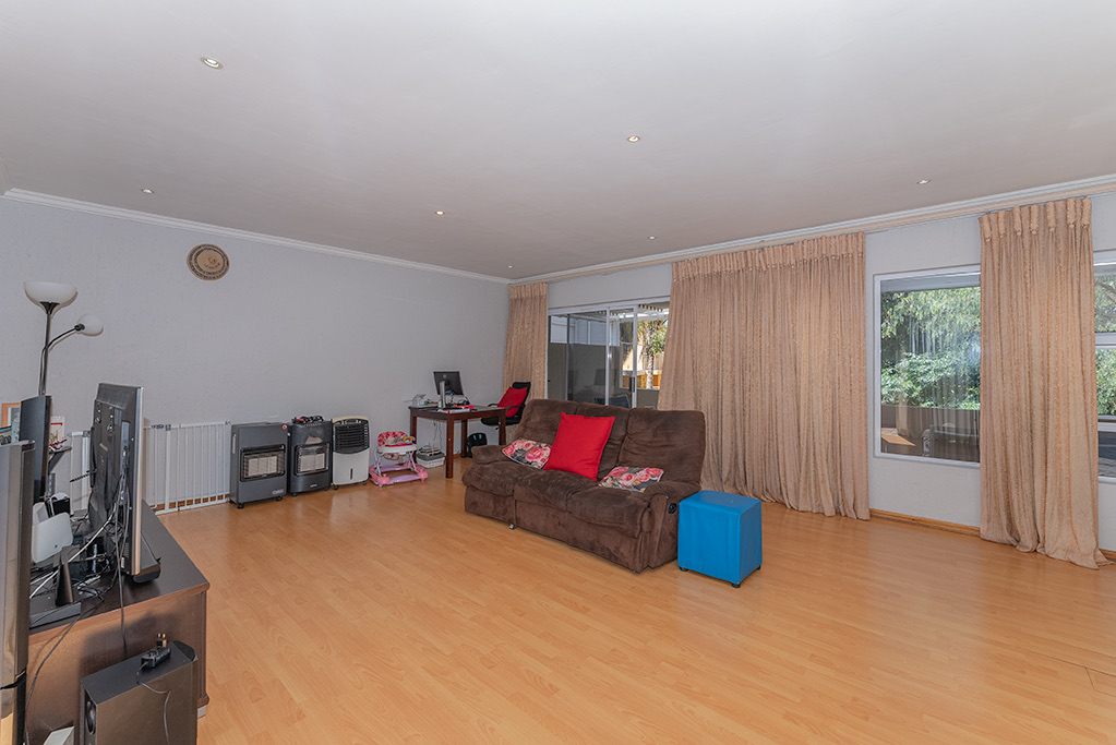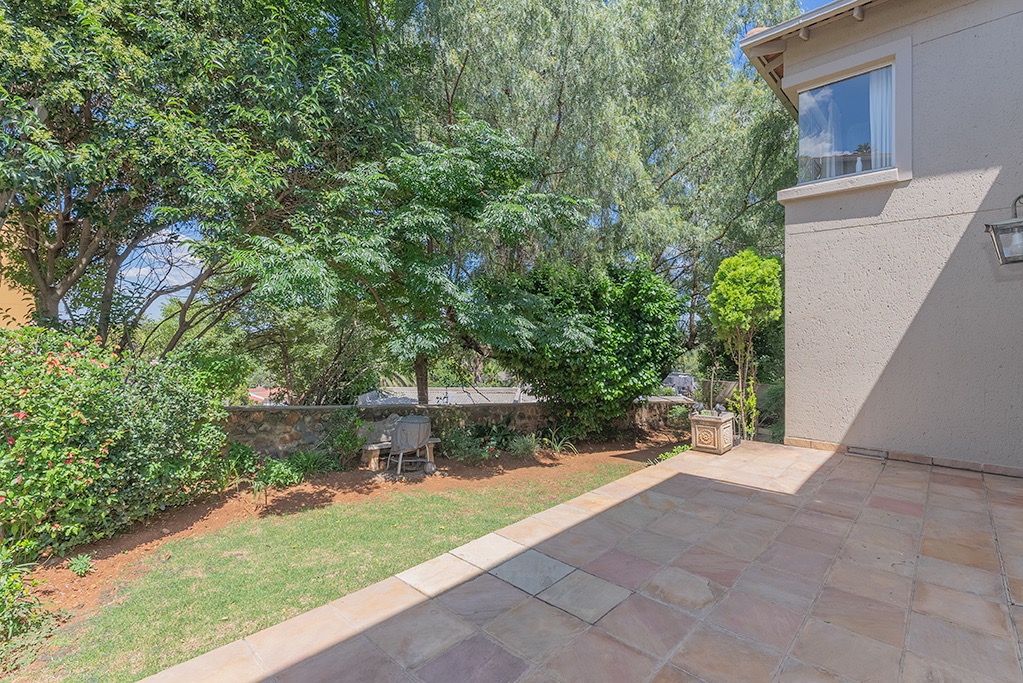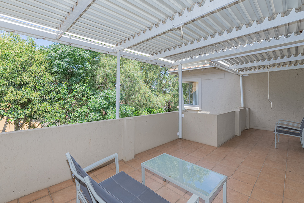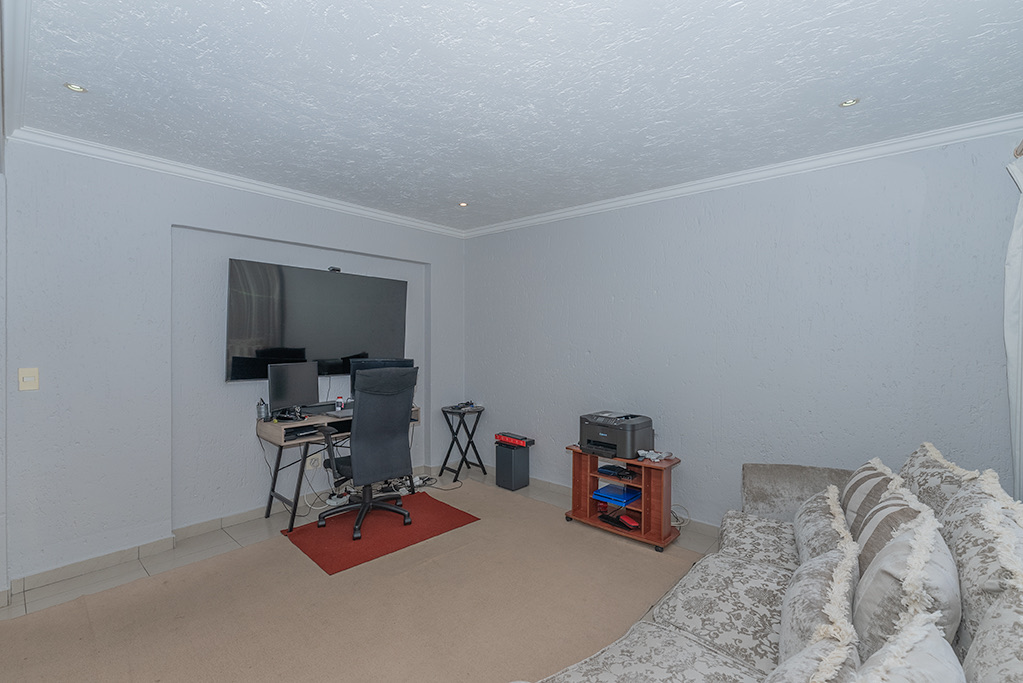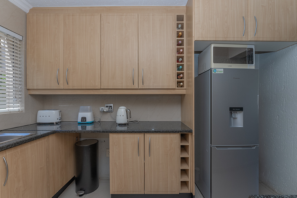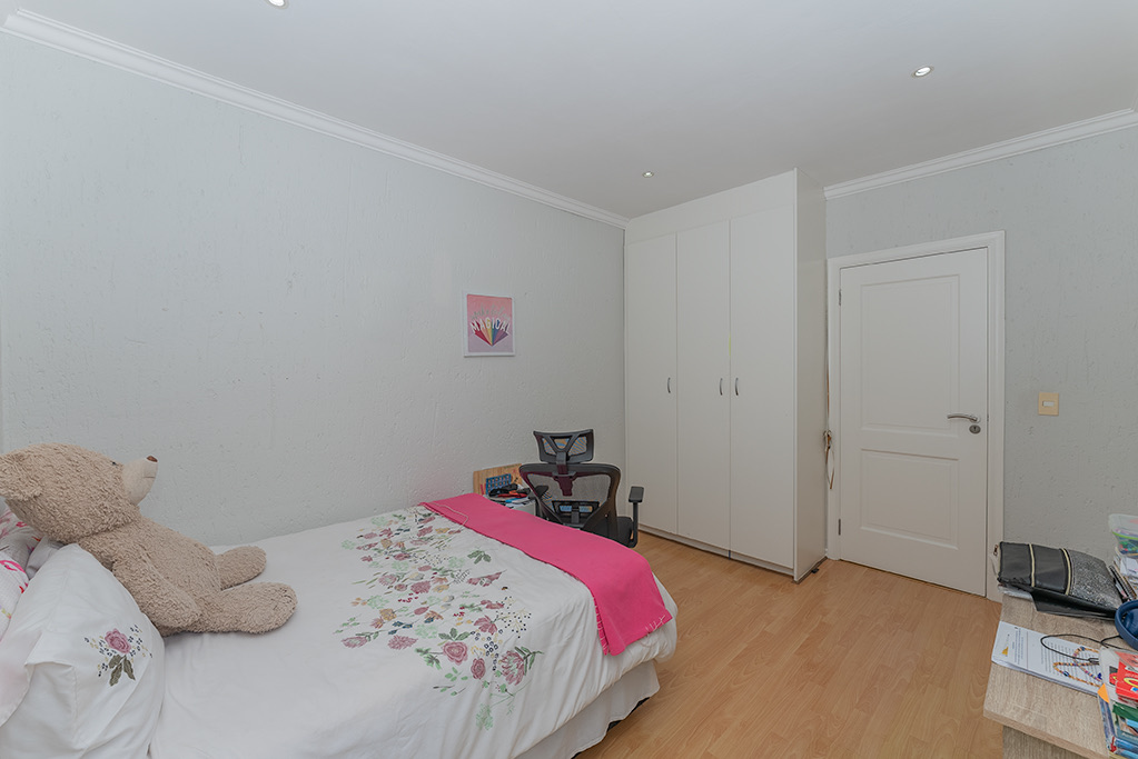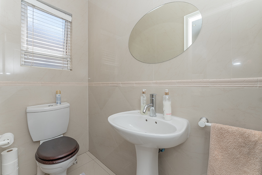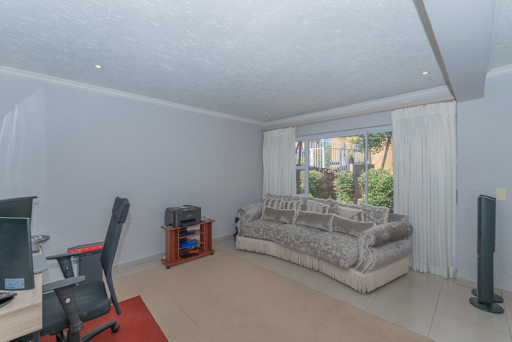 This modern double-story cluster is a must-view, with only 6 units in the complex elegant and controlled. Downstairs leads from the garage into the dining area and lounge with an open plan kitchen and garden, . Guest loo and tiled throughout. Upstairs are 3 bedrooms with laminate flooring, 2 bathrooms, a large pajama lounge with 2 balconies, and a very private and secure unit. The double garage leads into the foyer.