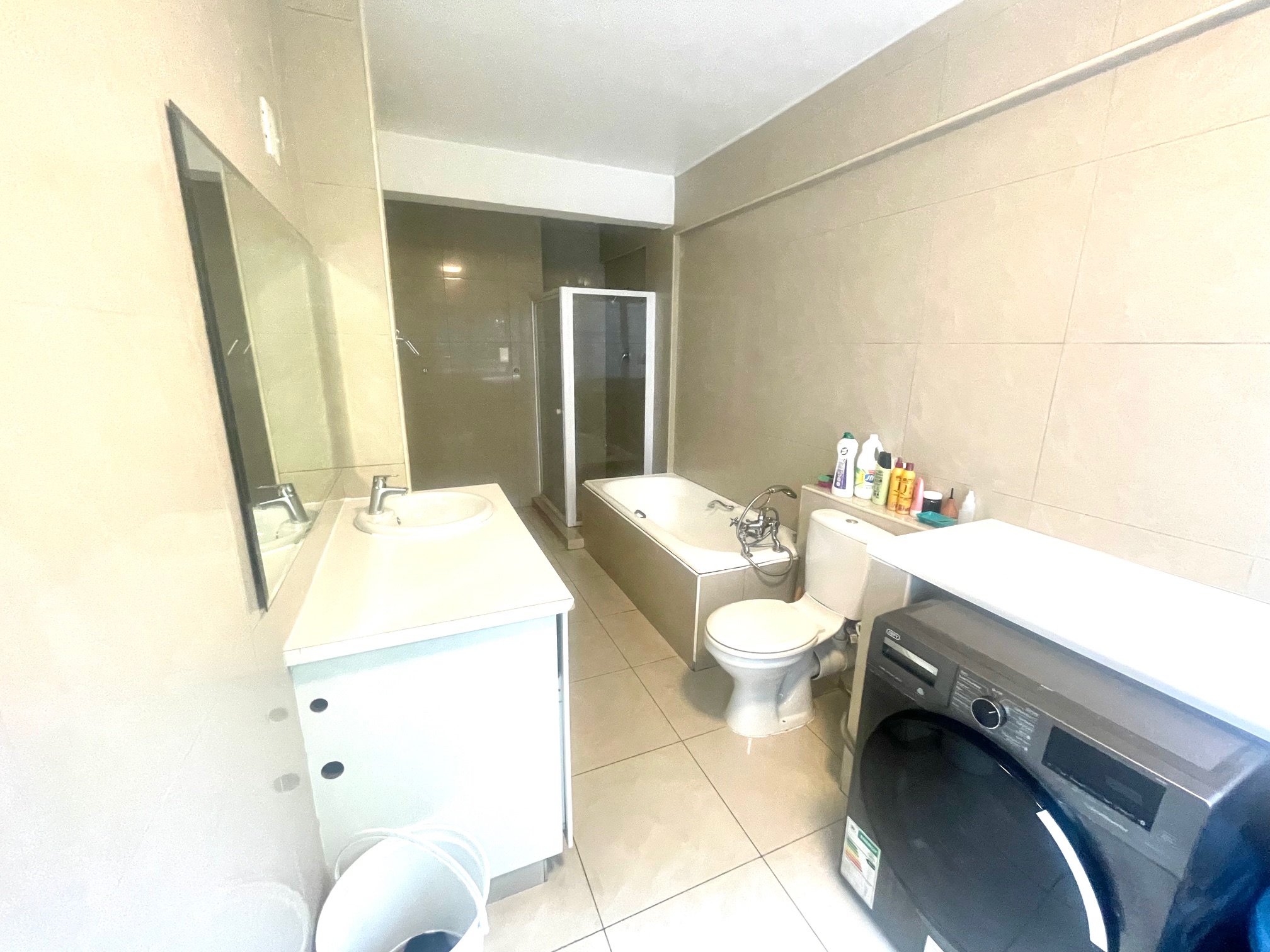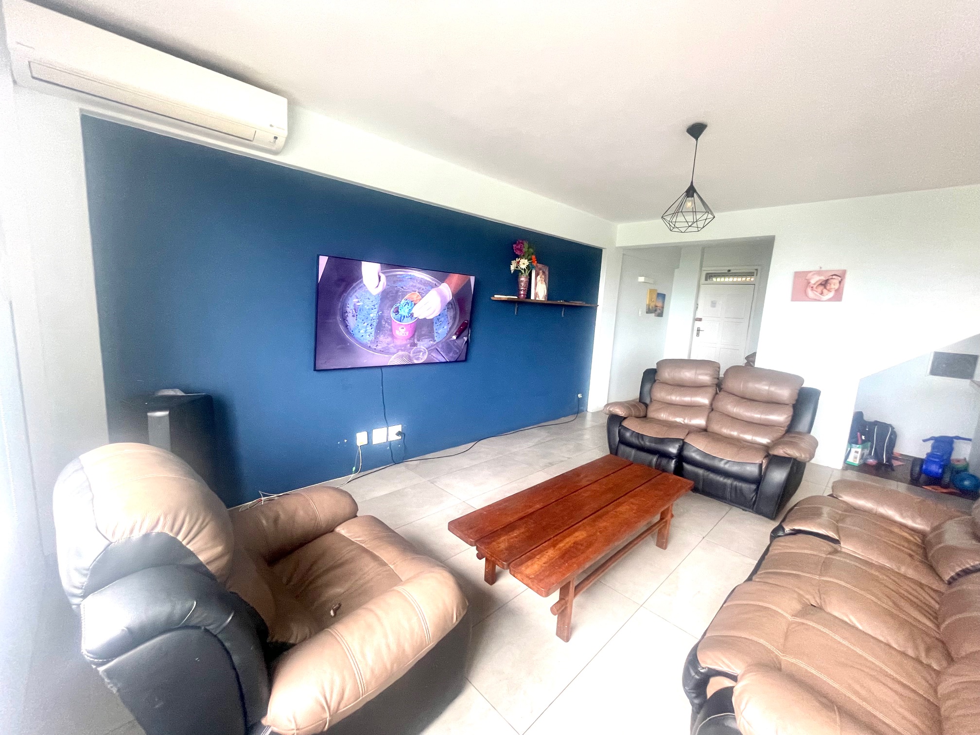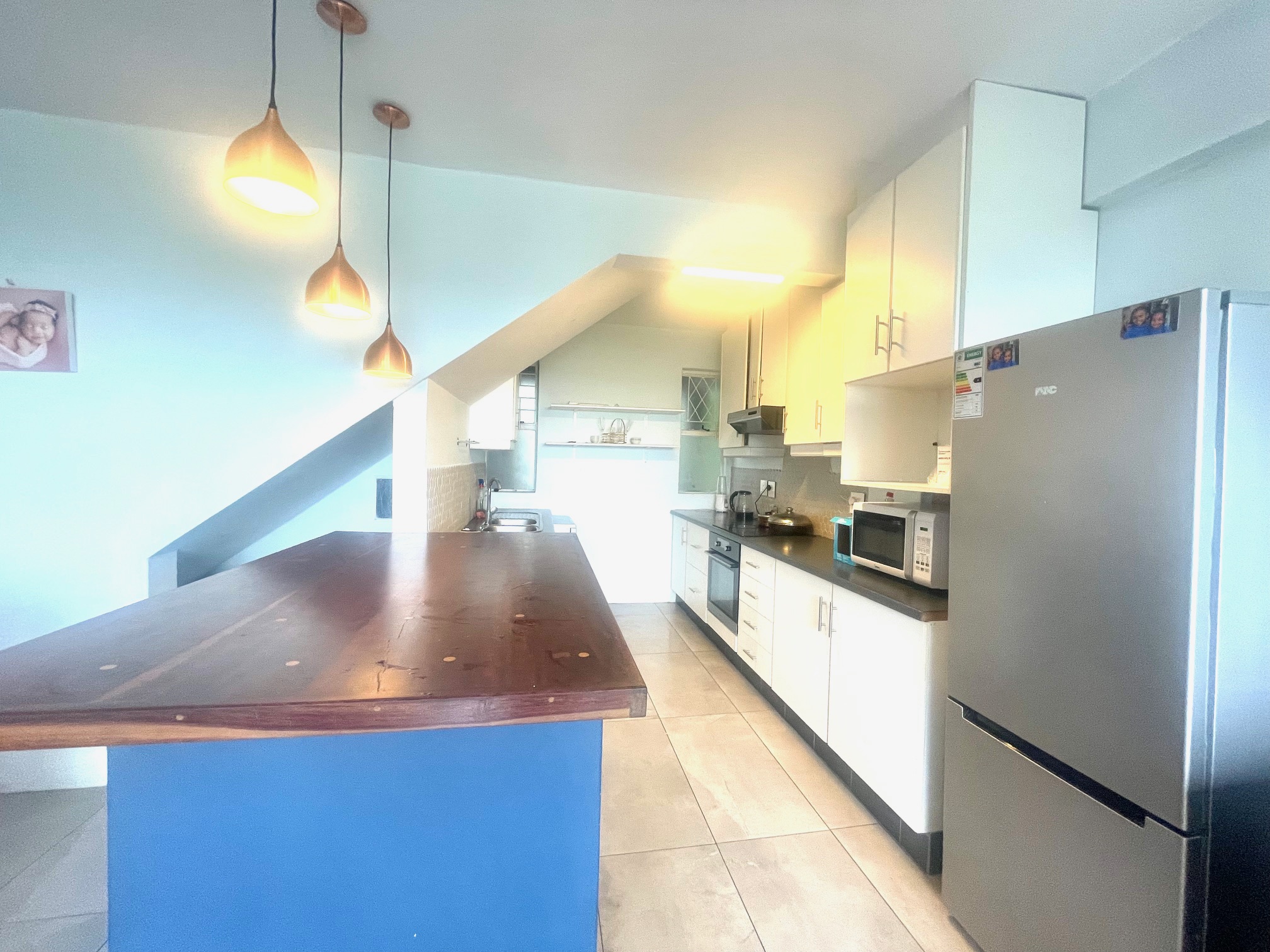 Downstairs, you’re welcomed by a guest loo conveniently located near the entrance. The space opens up to a light-filled open-plan lounge and dining area, perfect for entertaining or relaxing. The kitchen boasts ample cupboard space for all your storage needs. From the dining area, step through a glass door onto an intimate balcony — ideal for morning coffee or evening wind-downs.