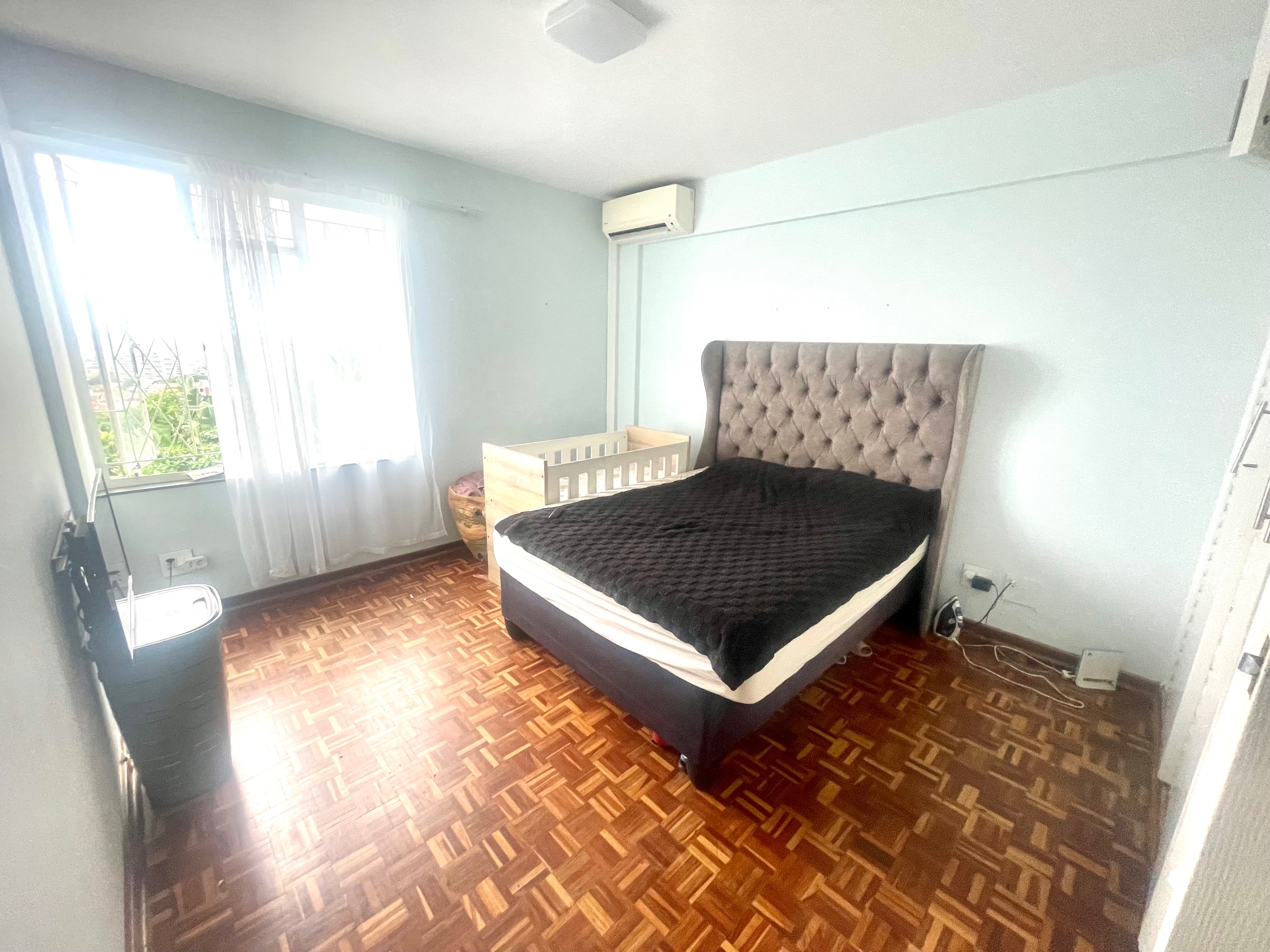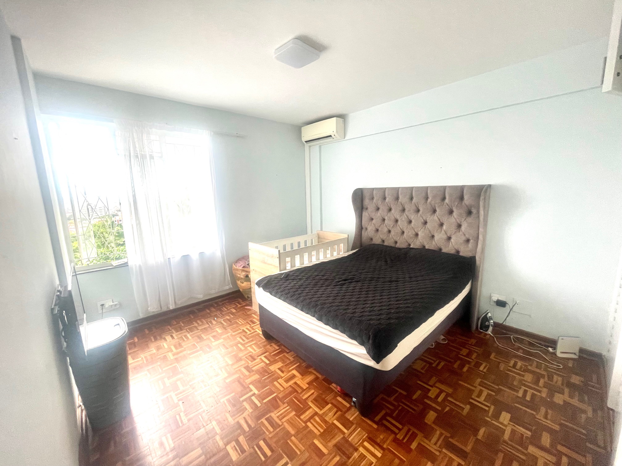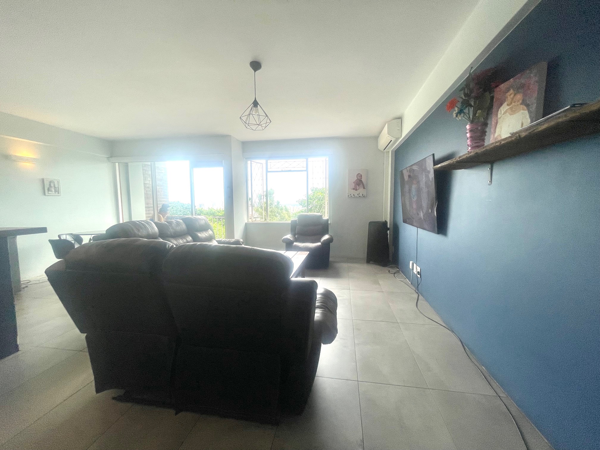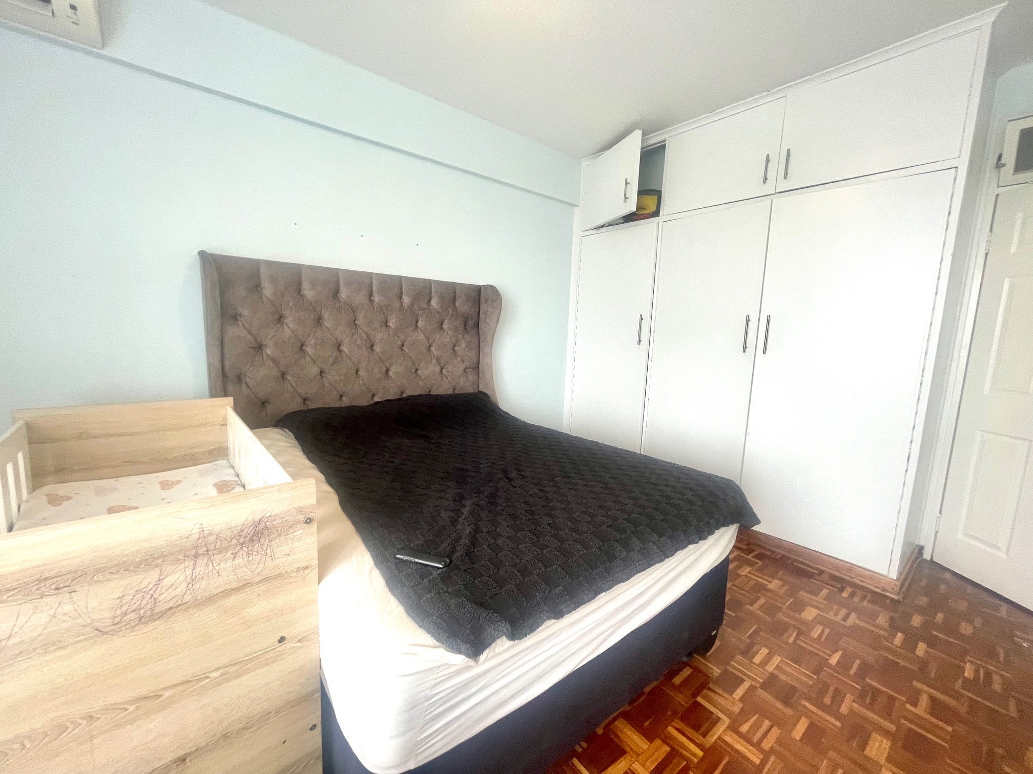 Downstairs, you’re welcomed by a guest loo conveniently located near the entrance. The space opens up to a light-filled open-plan lounge and dining area, perfect for entertaining or relaxing. The kitchen boasts ample cupboard space for all your storage needs. From the dining area, step through a glass door onto an intimate balcony — ideal for morning coffee or evening wind-downs.