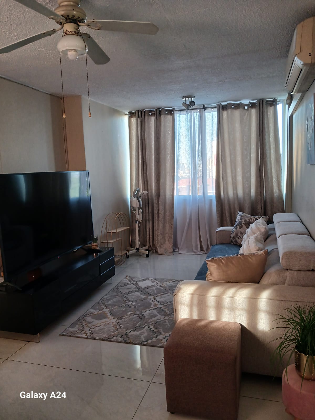 This beautifully finished 2-bedroom apartment on the 3rd floor offers breathtaking views and modern living. It features an open-plan lounge and dining area with elegant tiled floors, a fitted contemporary kitchen, air conditioning, and a separate toilet for added convenience.