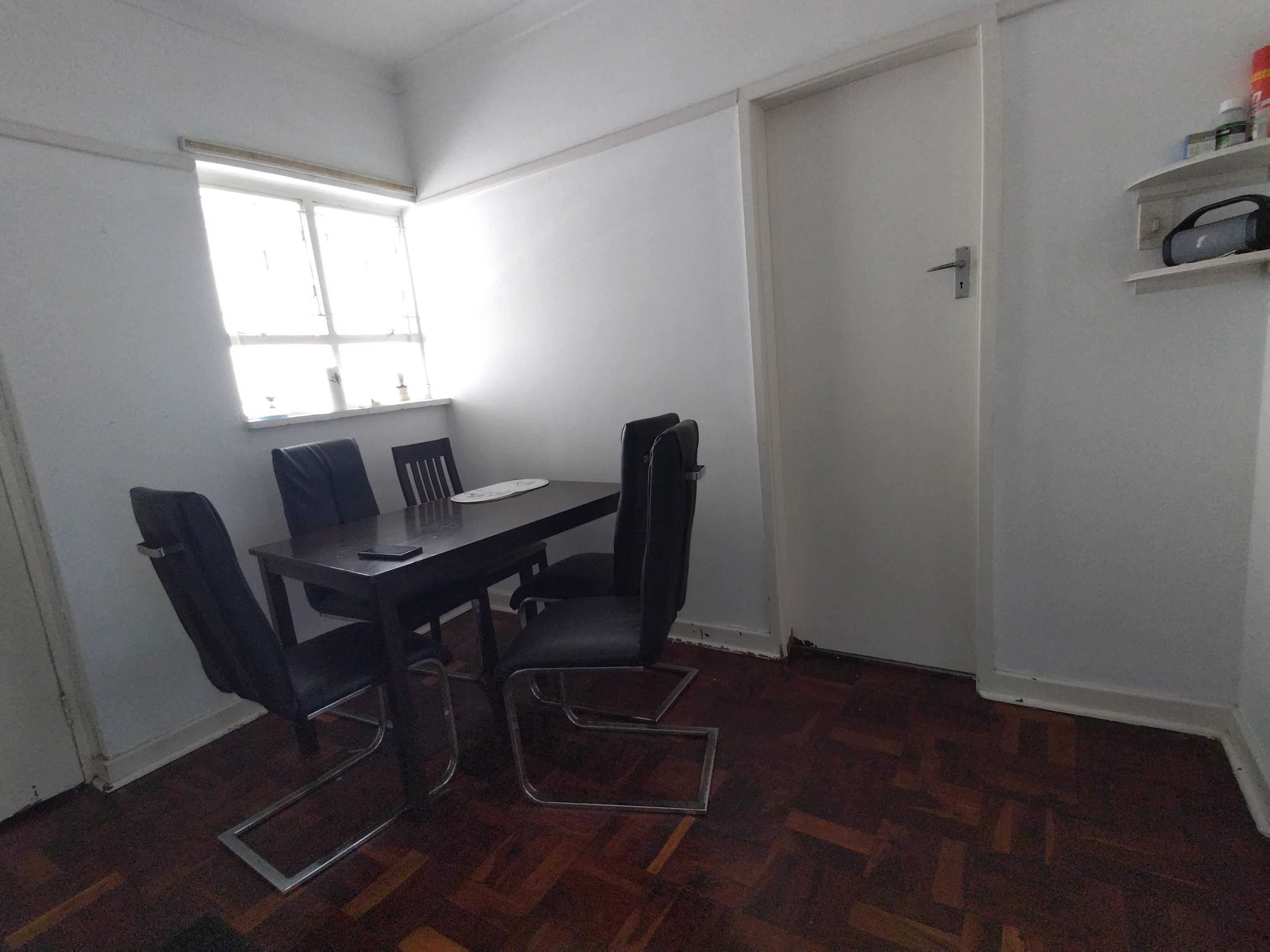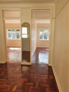 The bedroom is comfortably proportioned with ample cupboard space and enhanced by gleaming parquet floors that add warmth and character.