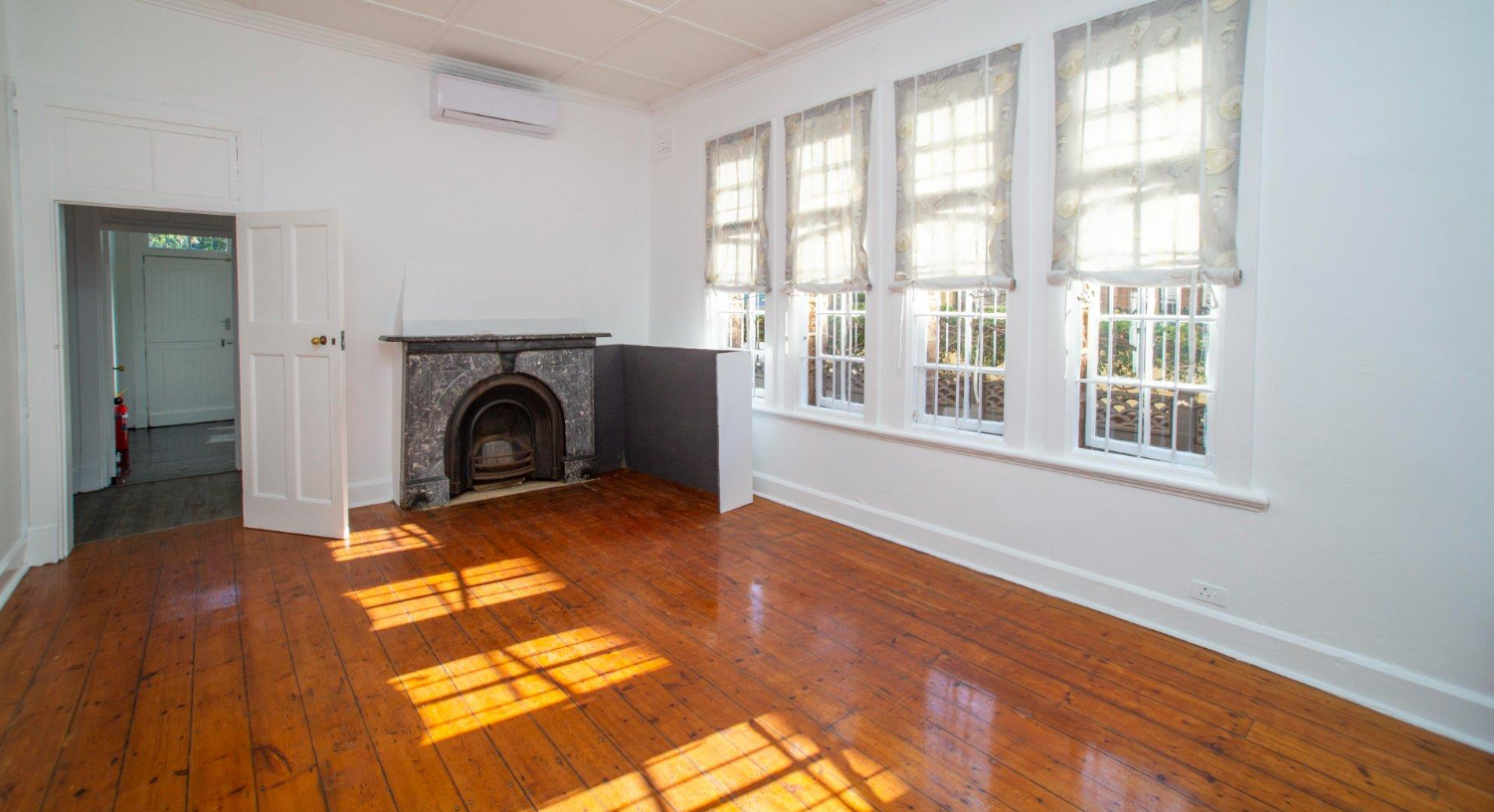 Spacious interiors with high ceilings, rich wooden finishes, and air-conditioning throughout