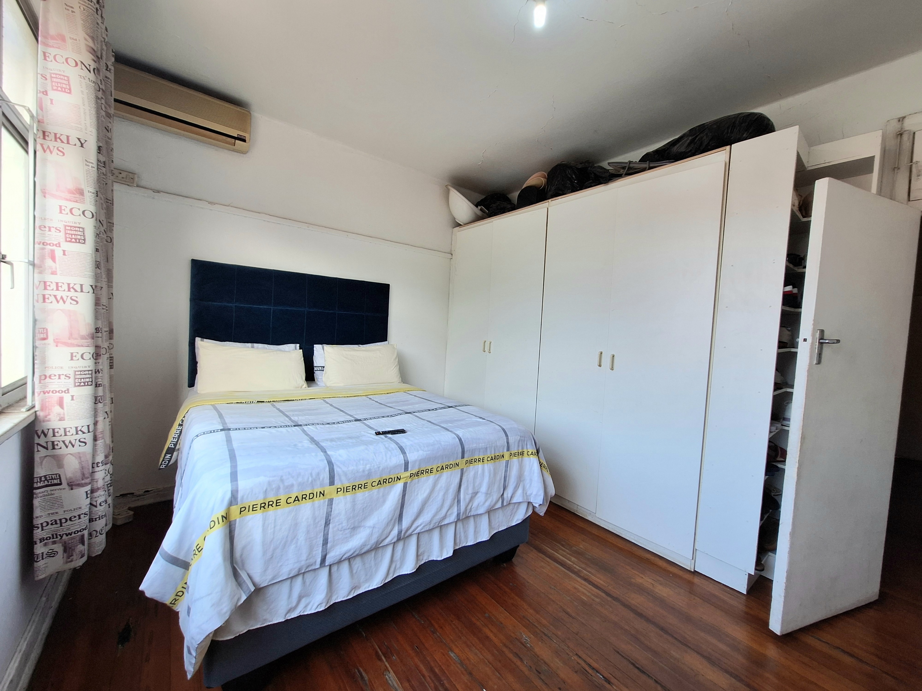 Step inside to find a generously sized main bedroom with ample built-in storage. The open-plan lounge and dining area is bright and versatile, currently arranged to accommodate a comfortable living space as well as a second bedroom.