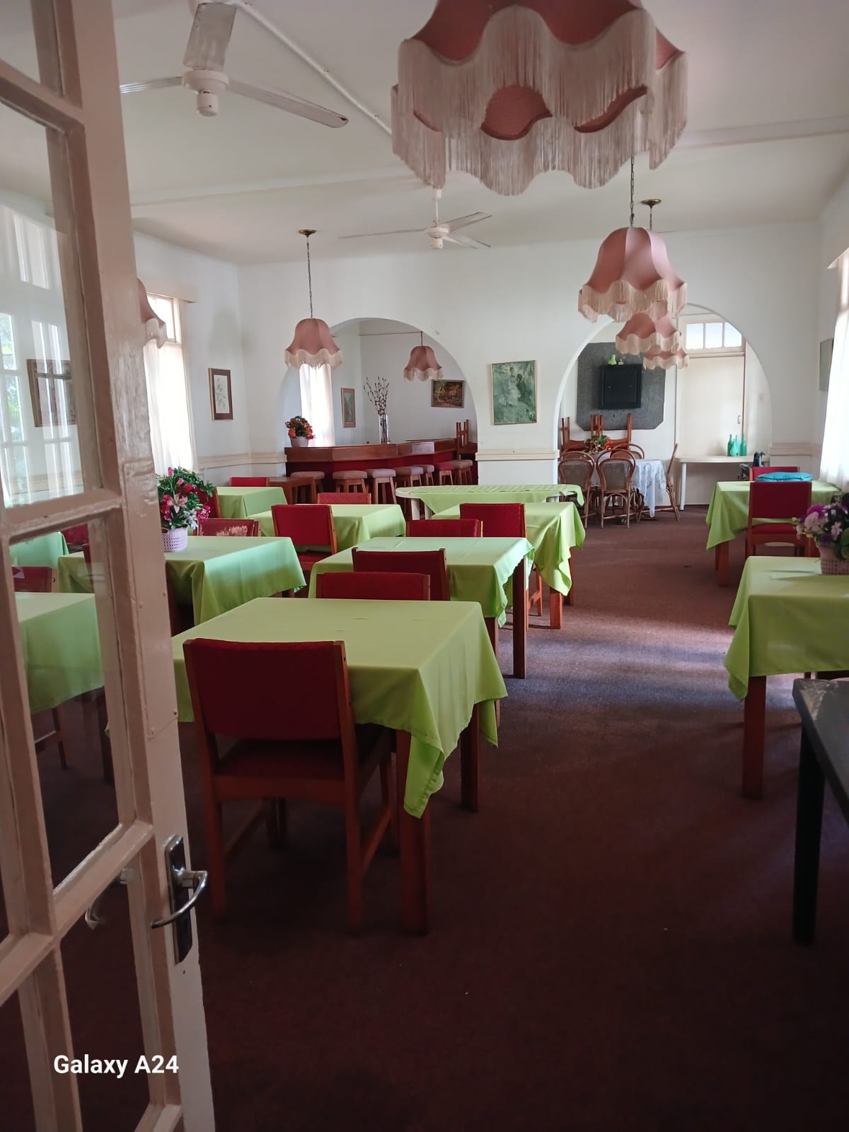 Communal lounge and dining room serving affordable meals