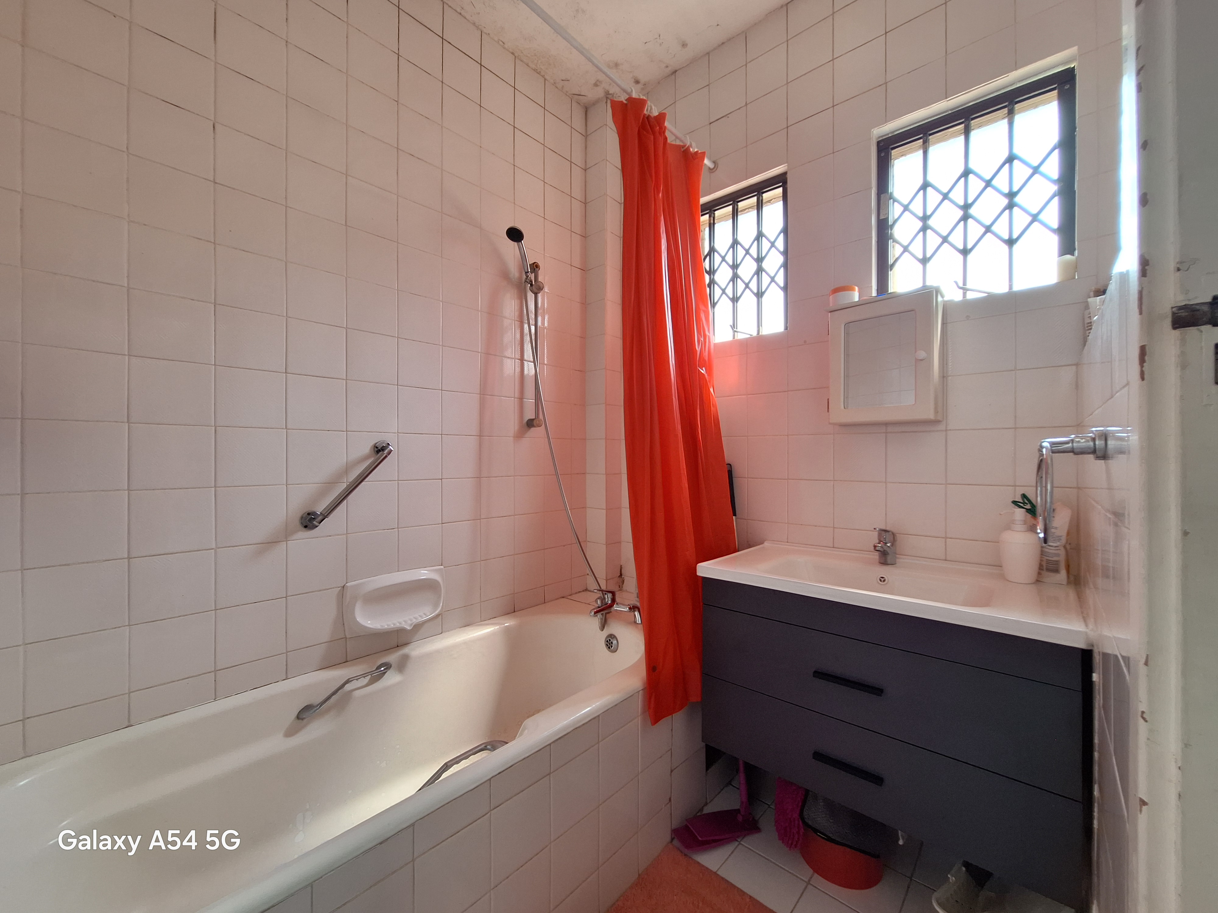 A bathroom with a shower-over-bath combination