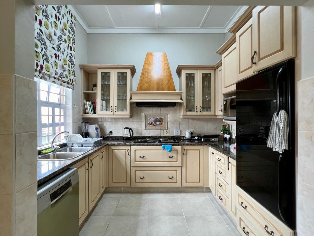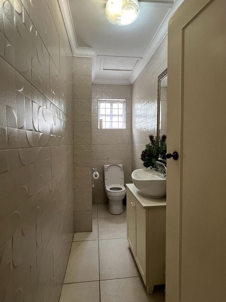 Three bedrooms with built-in cupboards and en-suite bathrooms provide private retreats for the family. The master bedroom features a walk-in closet for added convenience, while a guest toilet caters to visitors. An additional fourth bedroom in the outbuilding offers flexibility, along with a self-contained flatlet comprising a kitchenette, bedroom, and bathroom.
