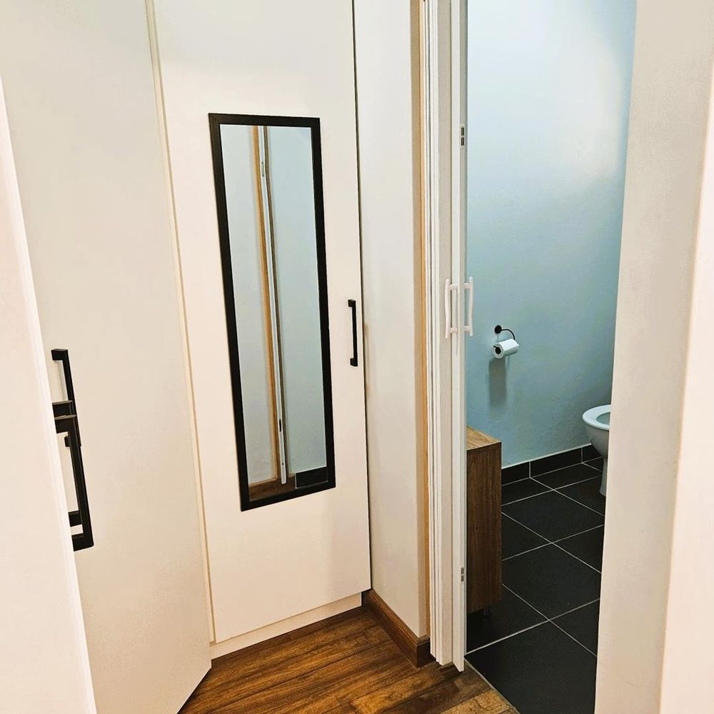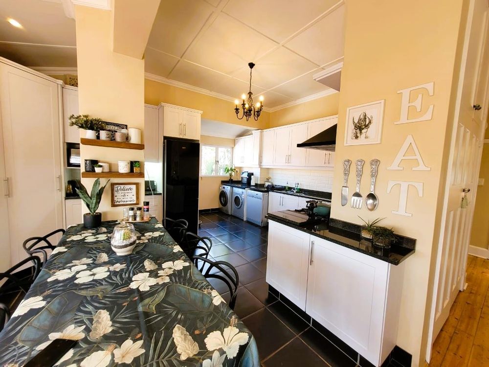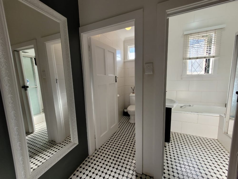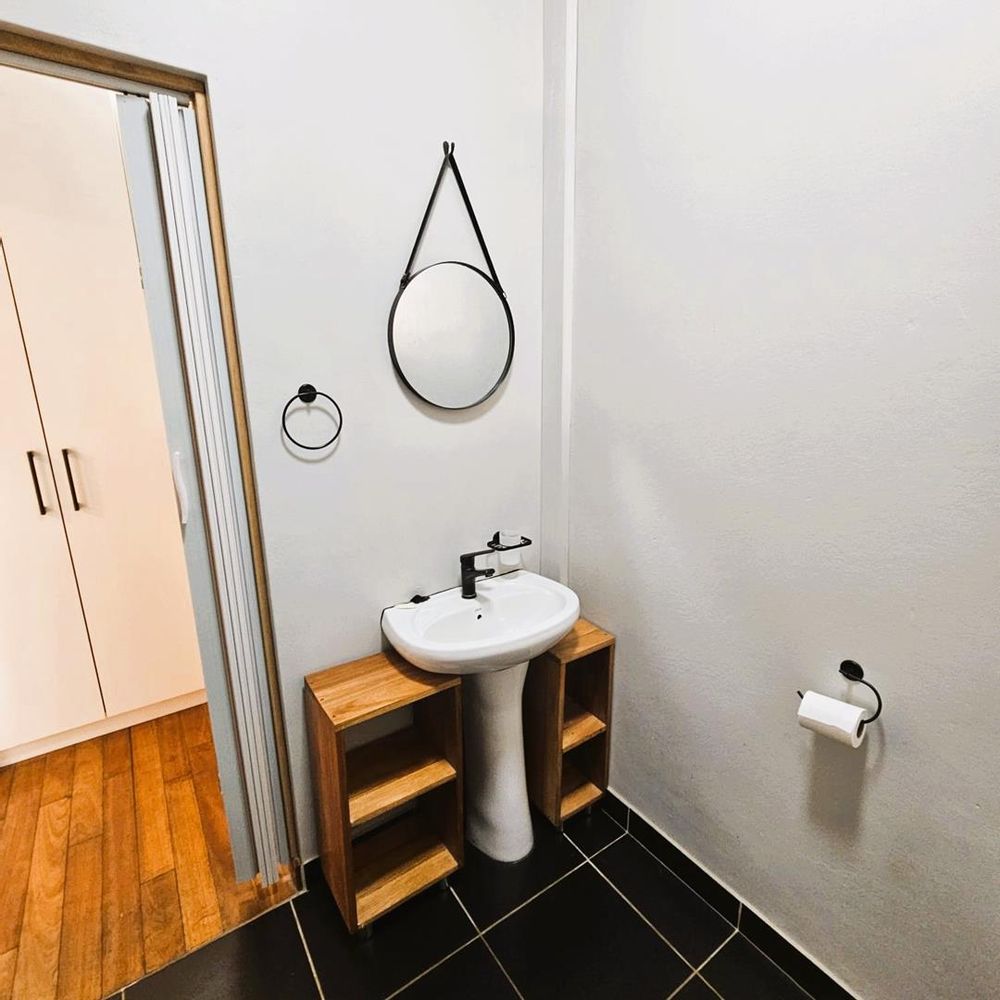 The lower-level residence offers an open plan lounge and dining area, paired with a modern kitchen featuring ample cupboard space. With three bedrooms and two bathrooms, this section of the property is designed for comfortable family living. The lush private garden adds a touch of tranquility, making it perfect for residents or tenants seeking a serene retreat.