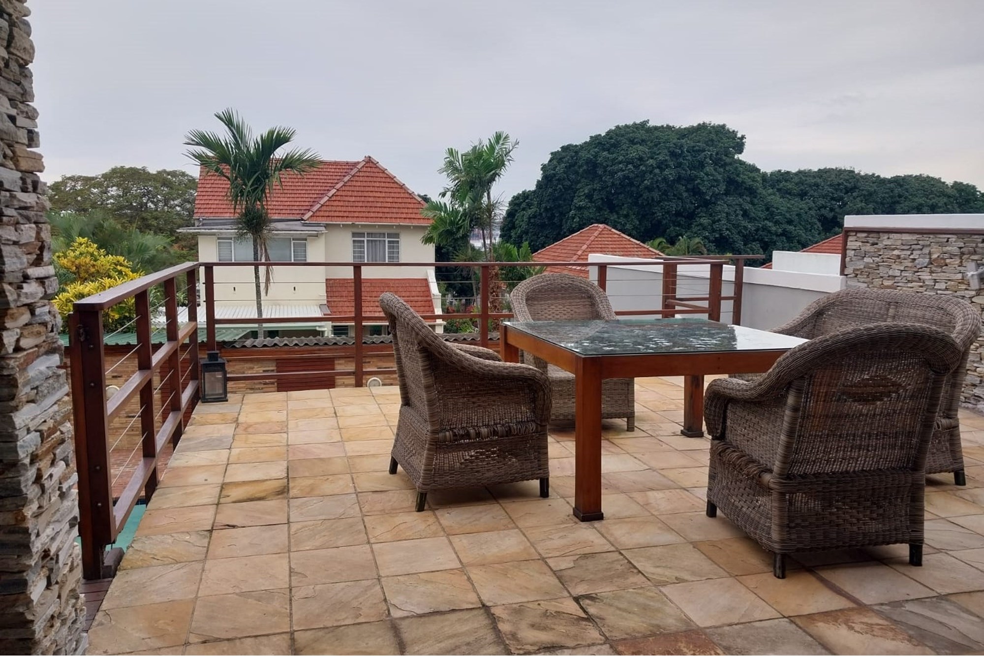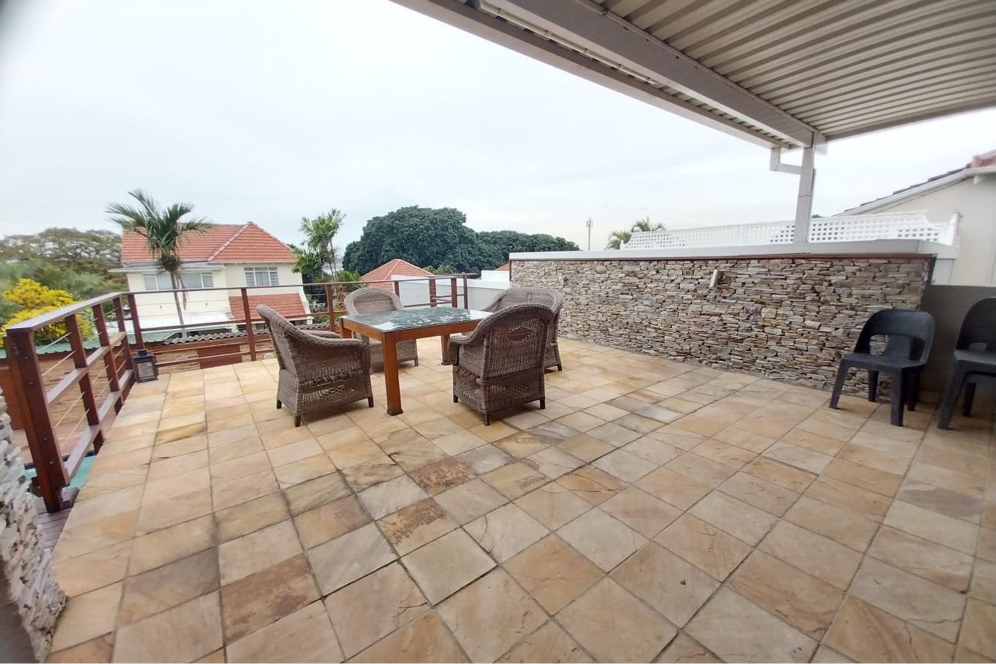 Step outside to your personal entertainment haven – a covered deck area overlooking a sparkling swimming pool, perfect for family gatherings and weekend braais. An additional outdoor bathroom with shower and toilet ensures your guests stay comfortable poolside.