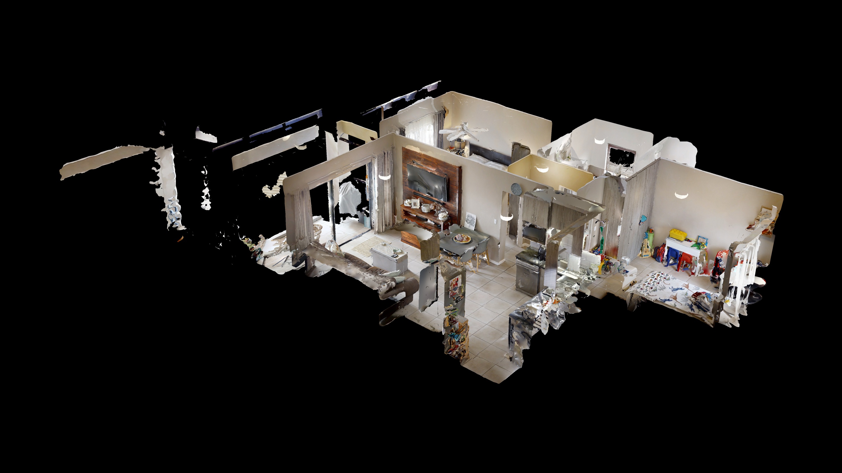 The apartment features two generously sized bedrooms, both fitted with built-in cupboards. The bedrooms share a full bathroom equipped with both a bath and a shower, offering convenience and functionality.