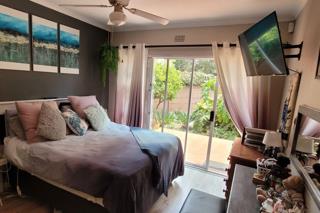 A small study overlooking the manicured garden provides an ideal spot for working from home or a quiet place for studying. The home offers three spacious bedrooms. The main bedroom includes an en-suite bathroom with a shower, basin, and toilet, along with a private sliding door that opens onto a small patio overlooking the pool and garden. A small dressing room with built-in cupboards adds to the comfort and convenience.