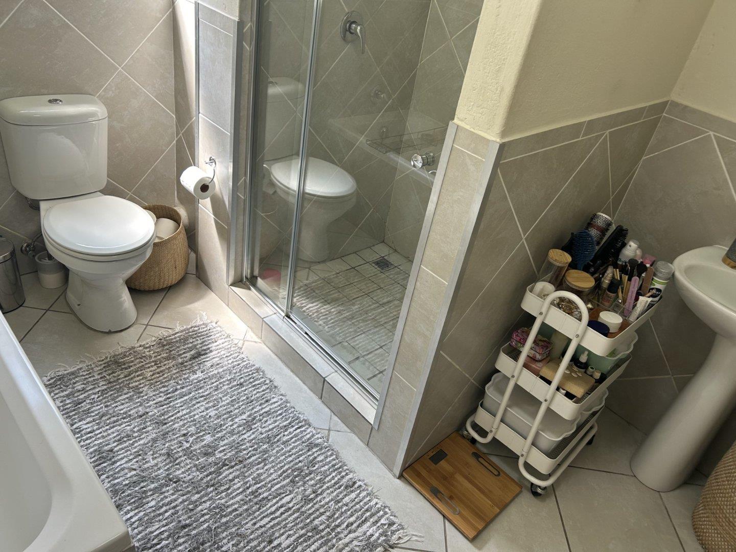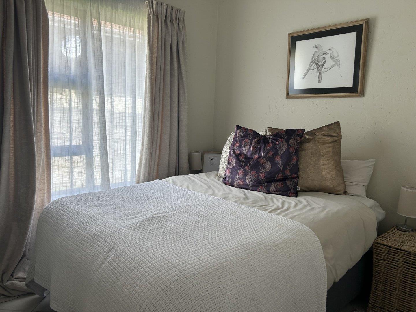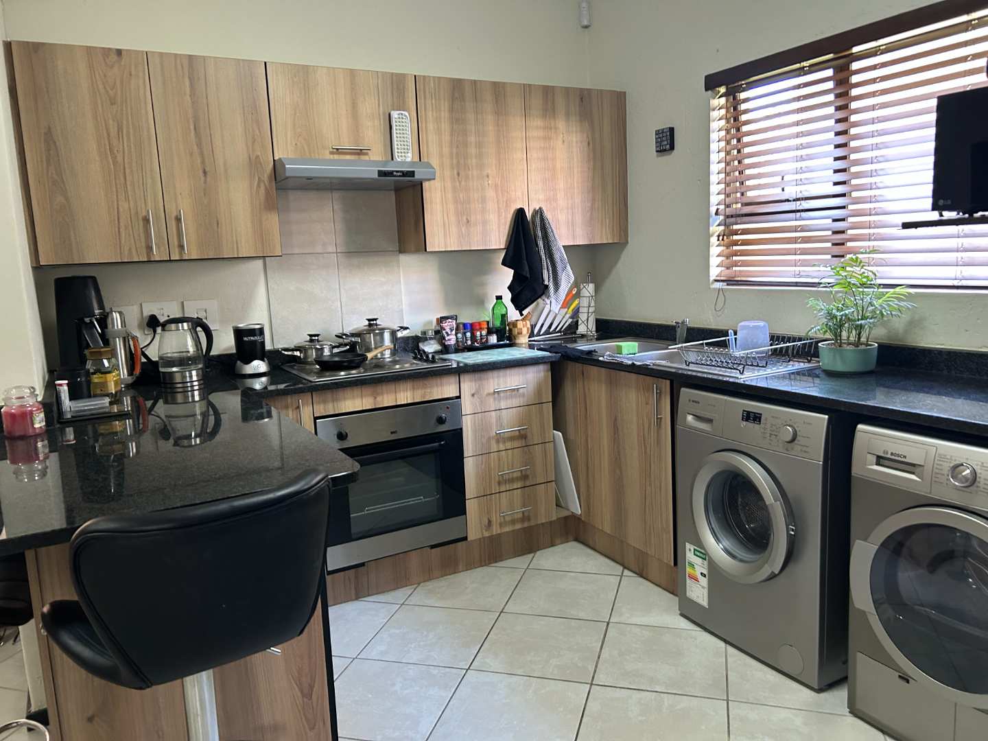 The property boasts two beautifully tiled bedrooms and two well-appointed bathrooms, with the main bedroom featuring an en-suite. For energy efficiency, the unit includes a solar geyser, and electricity is managed via a prepaid system.