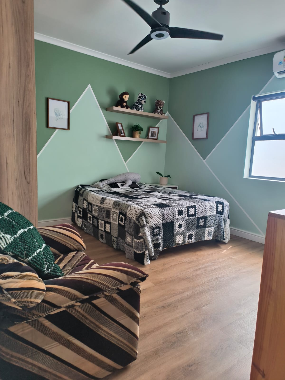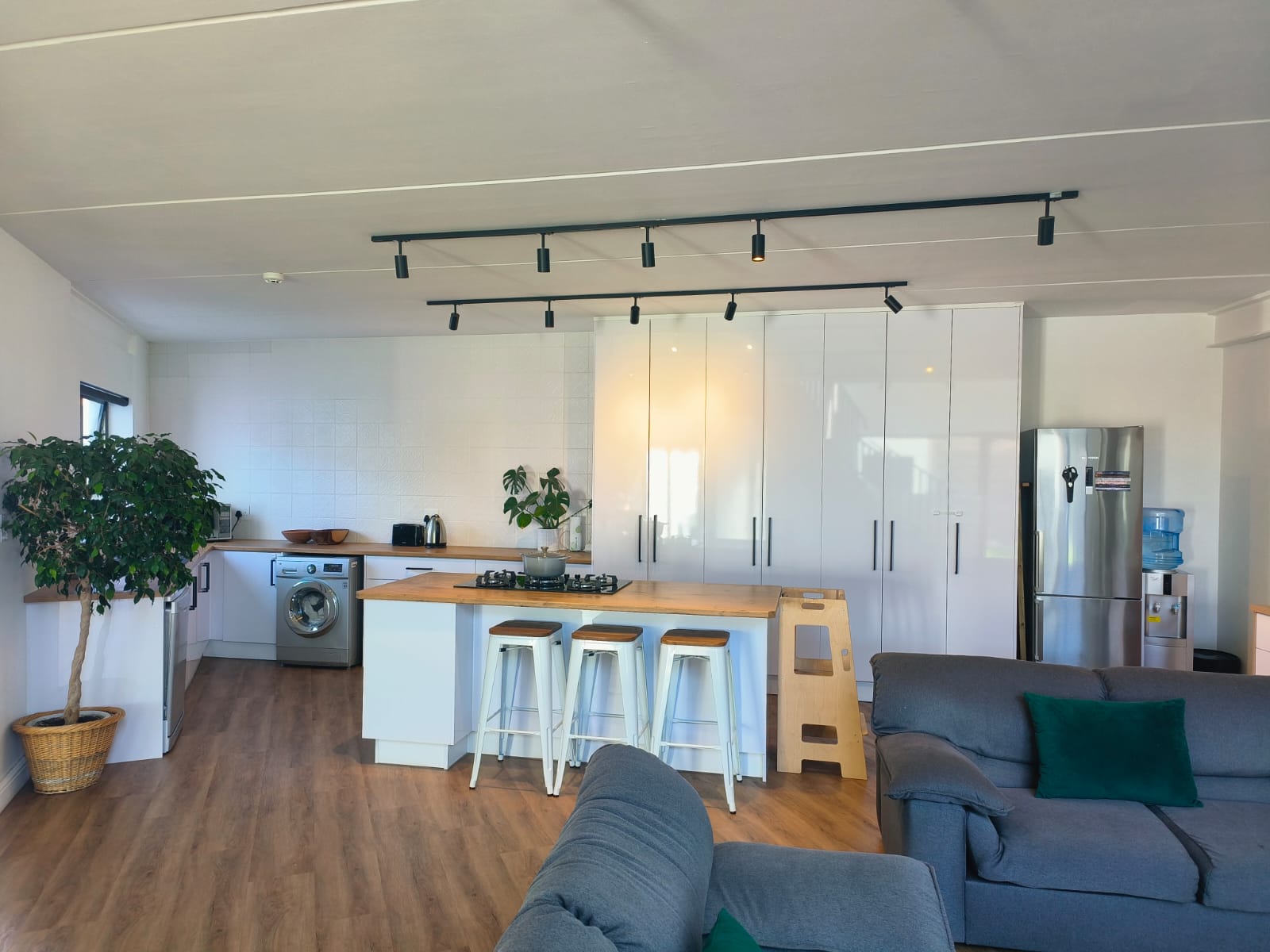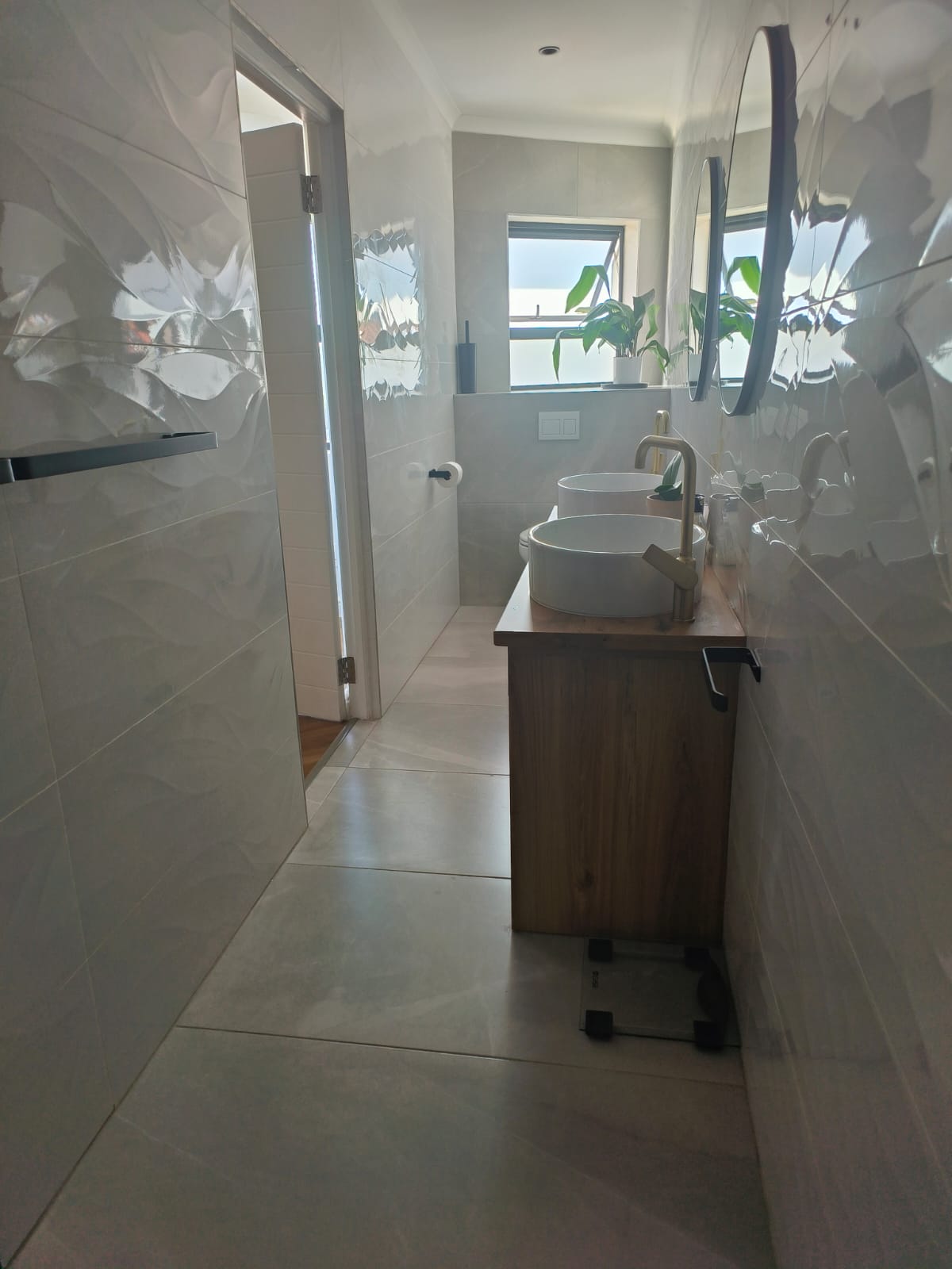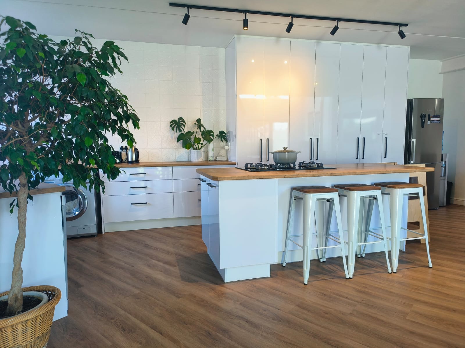 As you enter this beautifully designed home, you’re welcomed into a spacious open-plan kitchen, dining room, living room, and entertainment area, complete with an indoor braai. The living room also features a slow-combustion fireplace for added warmth during the winter months. The modern kitchen offers ample cupboard space, abundant work surfaces, and a gas stove—perfect for hassle-free cooking.