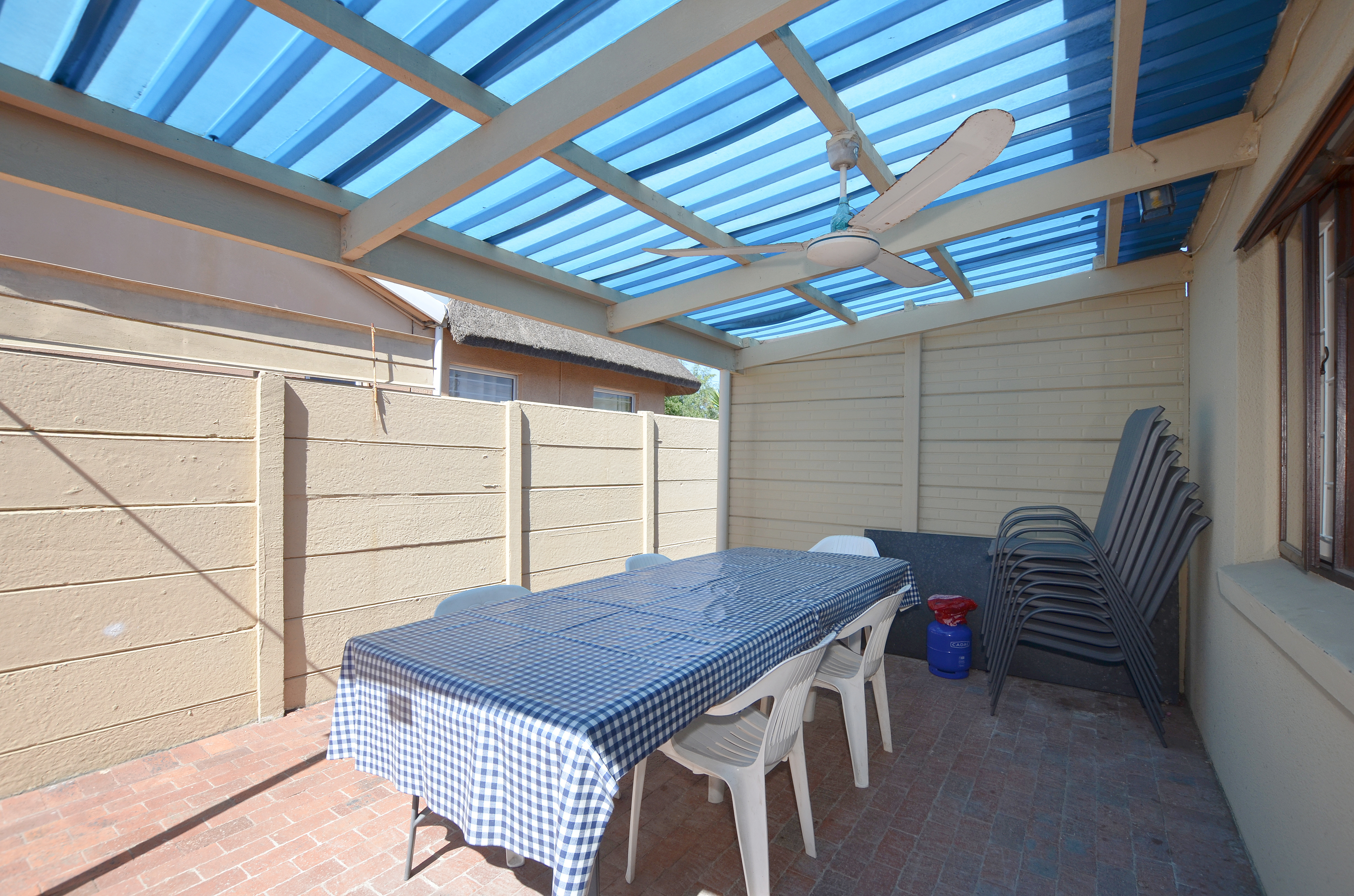 An entrance hall welcomes you into the property. The main living areas include a lounge, a dining room and a generously sized braai room complete with a built-in indoor braai and a built-in bar, designed for easy entertaining. The braai room connects to a second living area. A private undercover patio overlooks a beautiful, established garden - a peaceful spot to unwind at the end of the day.