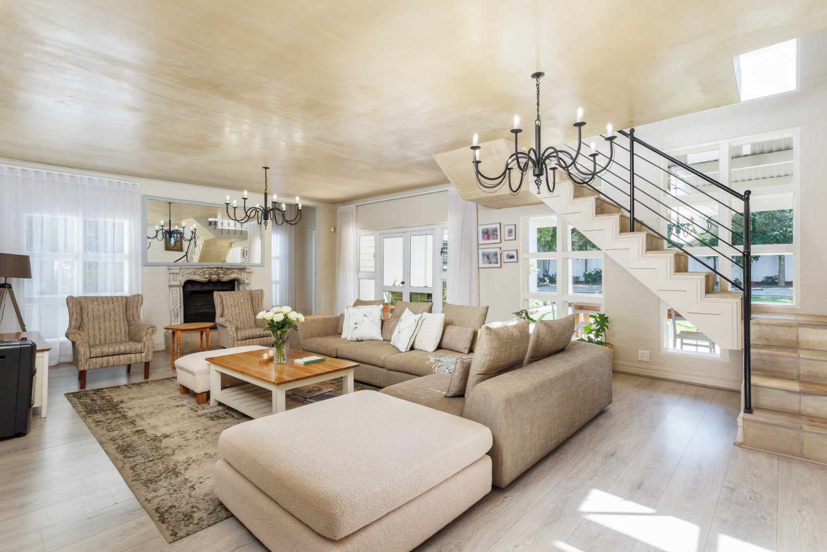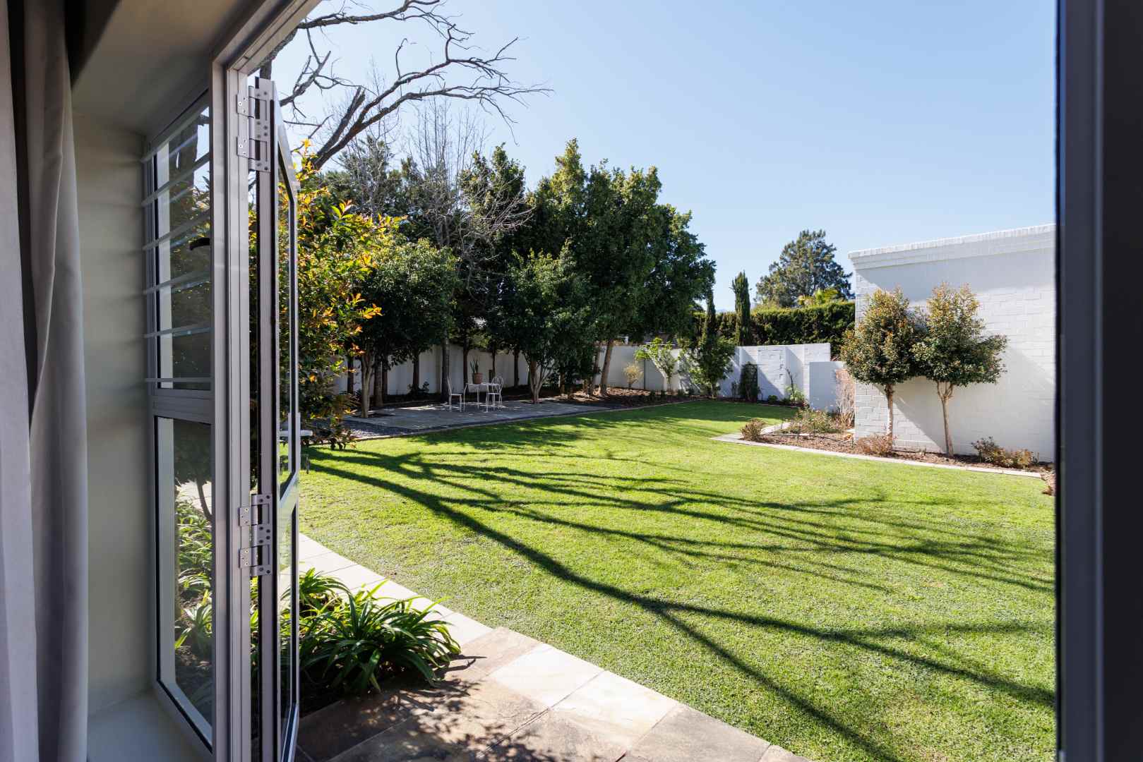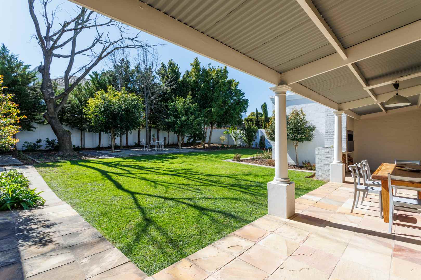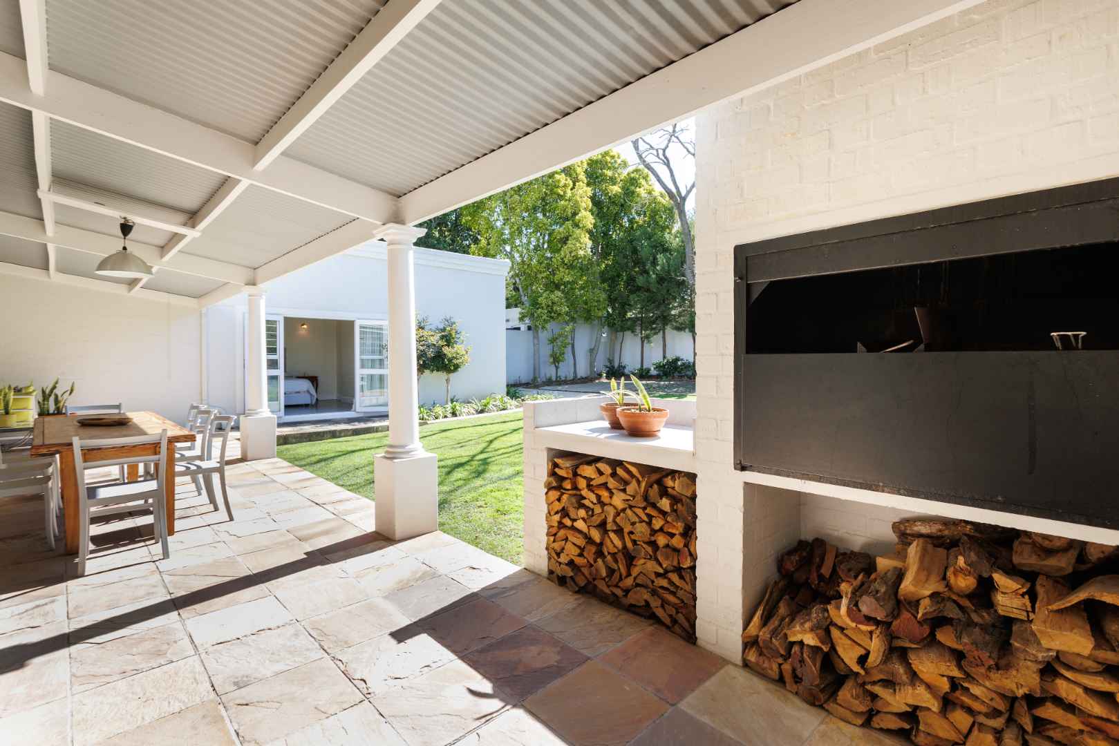 Step outside and discover an impressive outdoor space, perfect for entertaining or relaxing. The covered patio, featuring a built-in braai, overlooks a beautifully manicured garden, making it ideal for sunny summer days, playtime with children and pets or quiet moments surrounded by lush greenery.