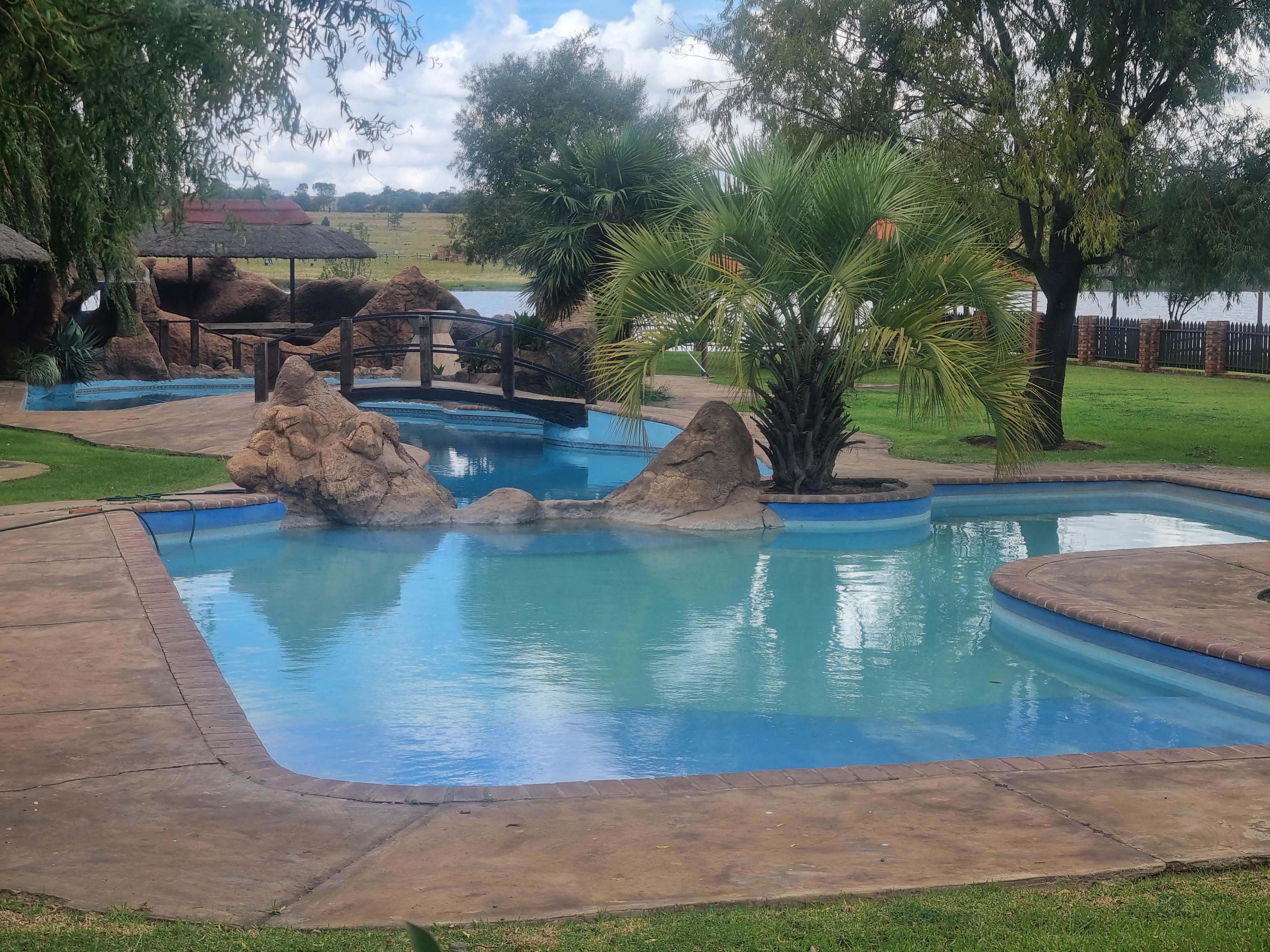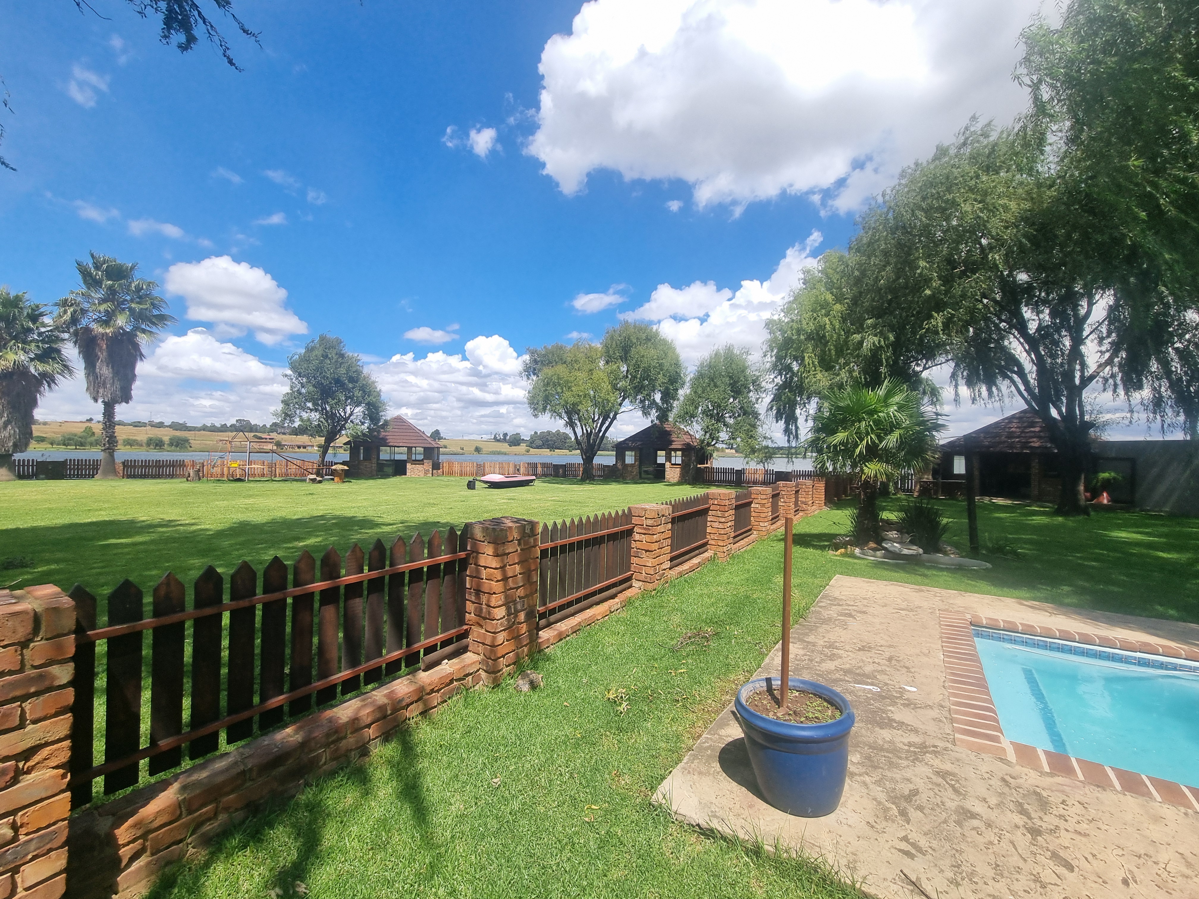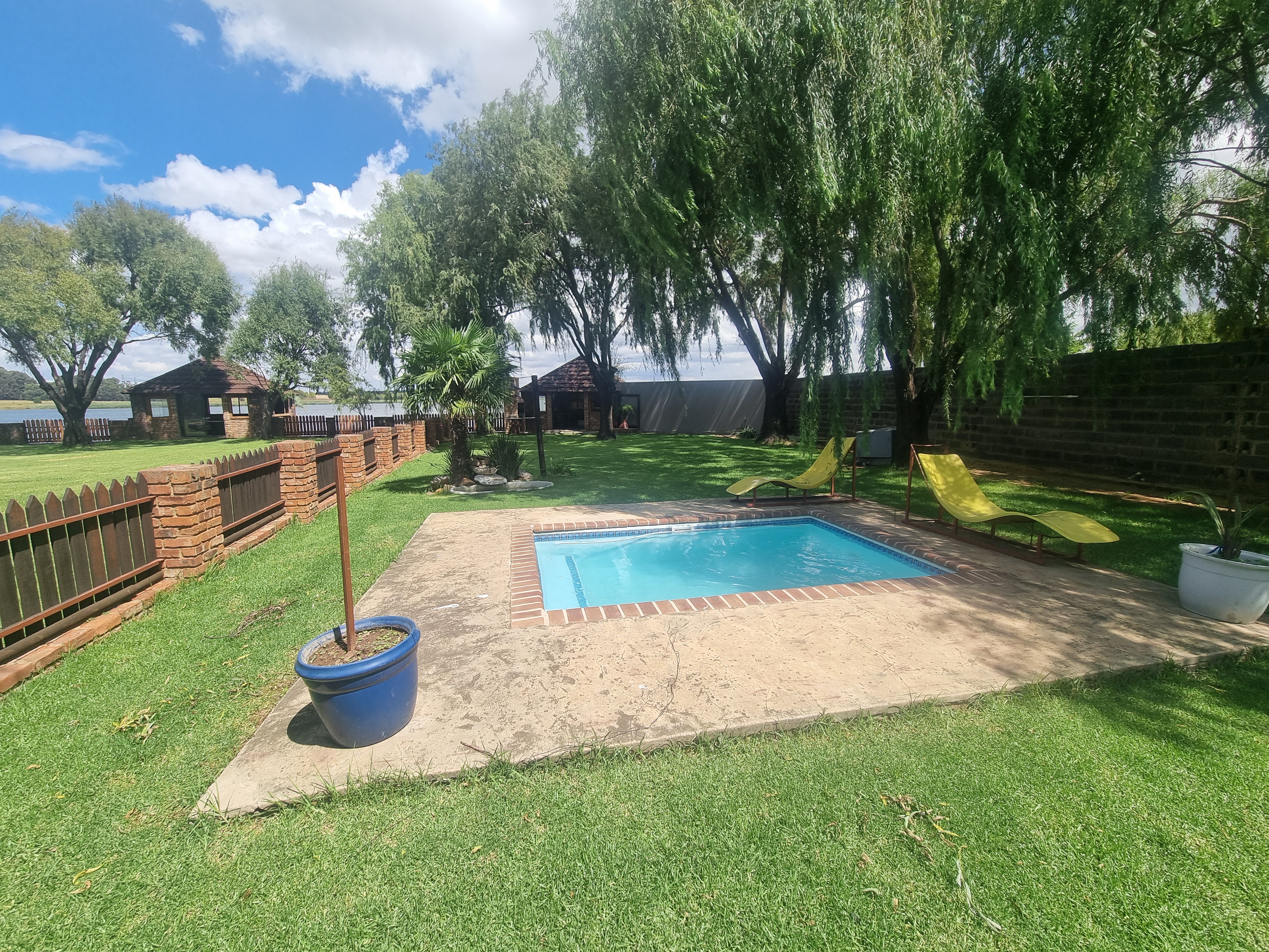 Embrace comfort in the sprawling 3-bedroom main house, boasting 3 bathrooms and solar panels for sustainable living. Privately nestled away from the bustle of the business, enjoy serene moments amidst its own pool, double garage, and sprawling garden offering enchanting views of the tranquil dam.