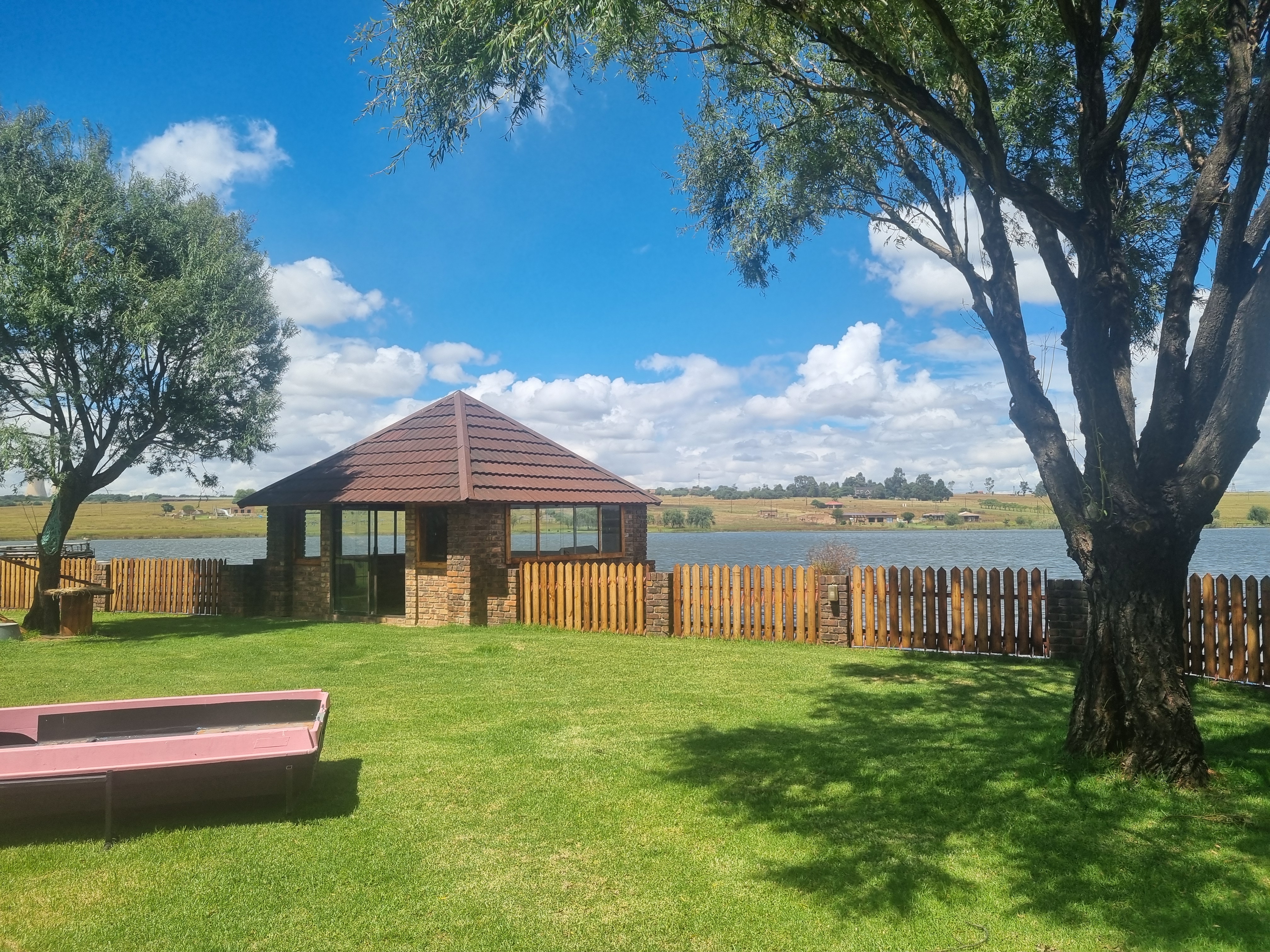 Revel in the property's waterfront allure, offering fishing spots, boat stand recharging points, and a jetty for leisurely exploration. A spacious hall overlooking the shimmering dam beckons as an ideal spot for a restaurant venture, complete with a bar, kitchen, and restrooms.