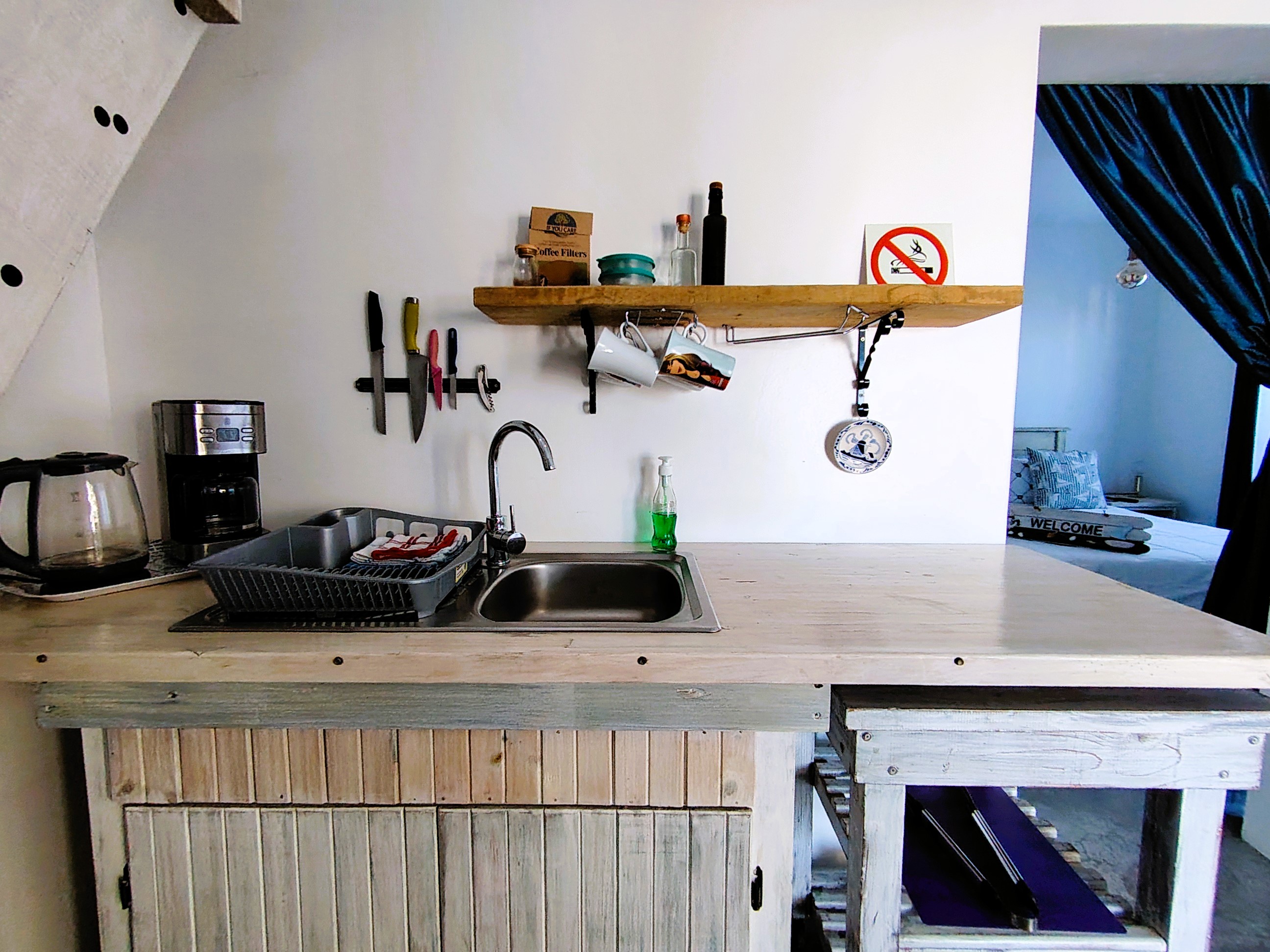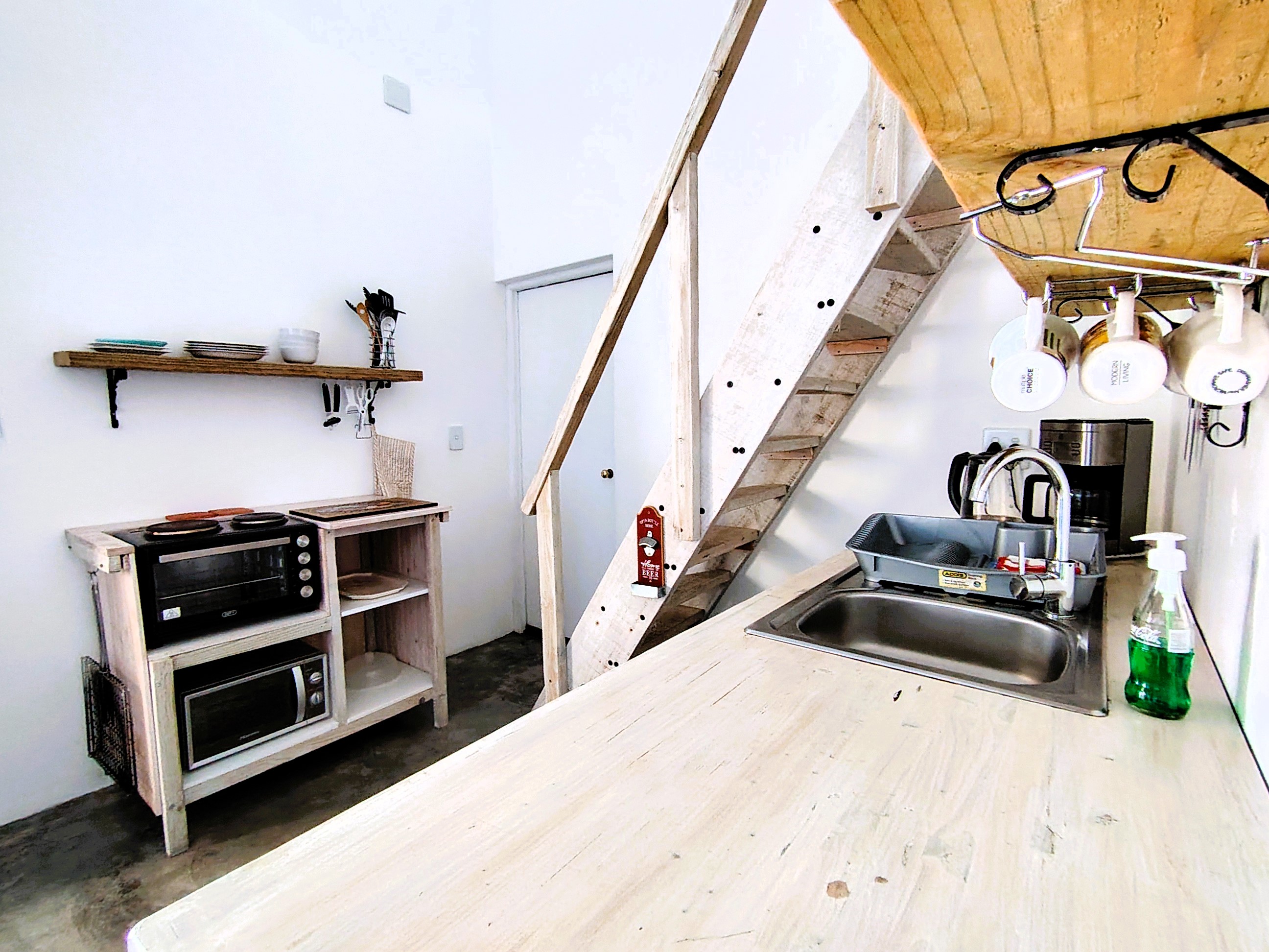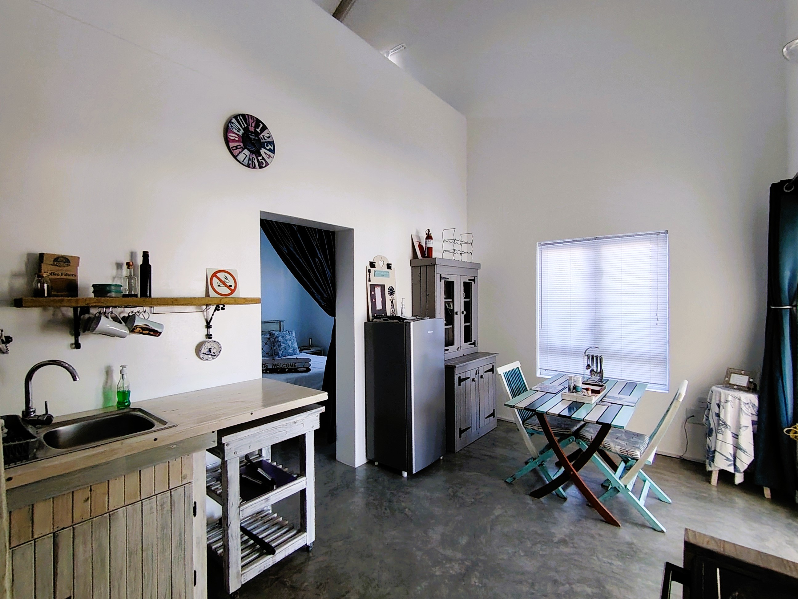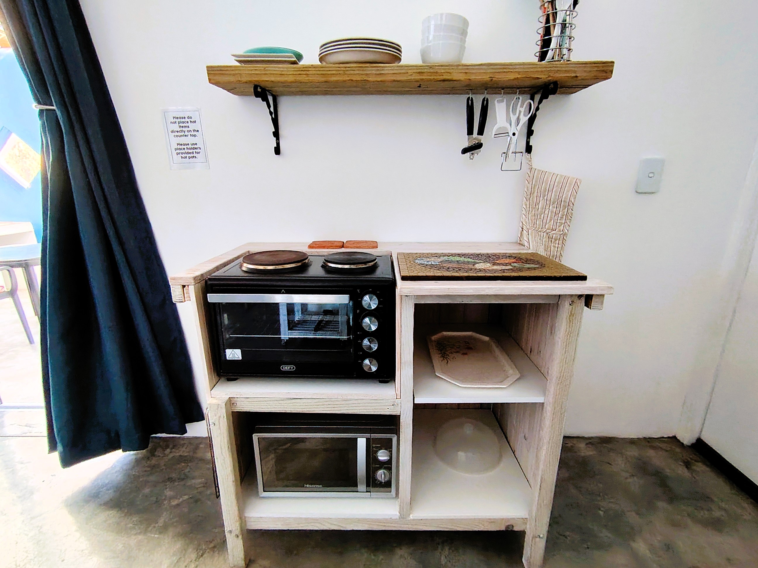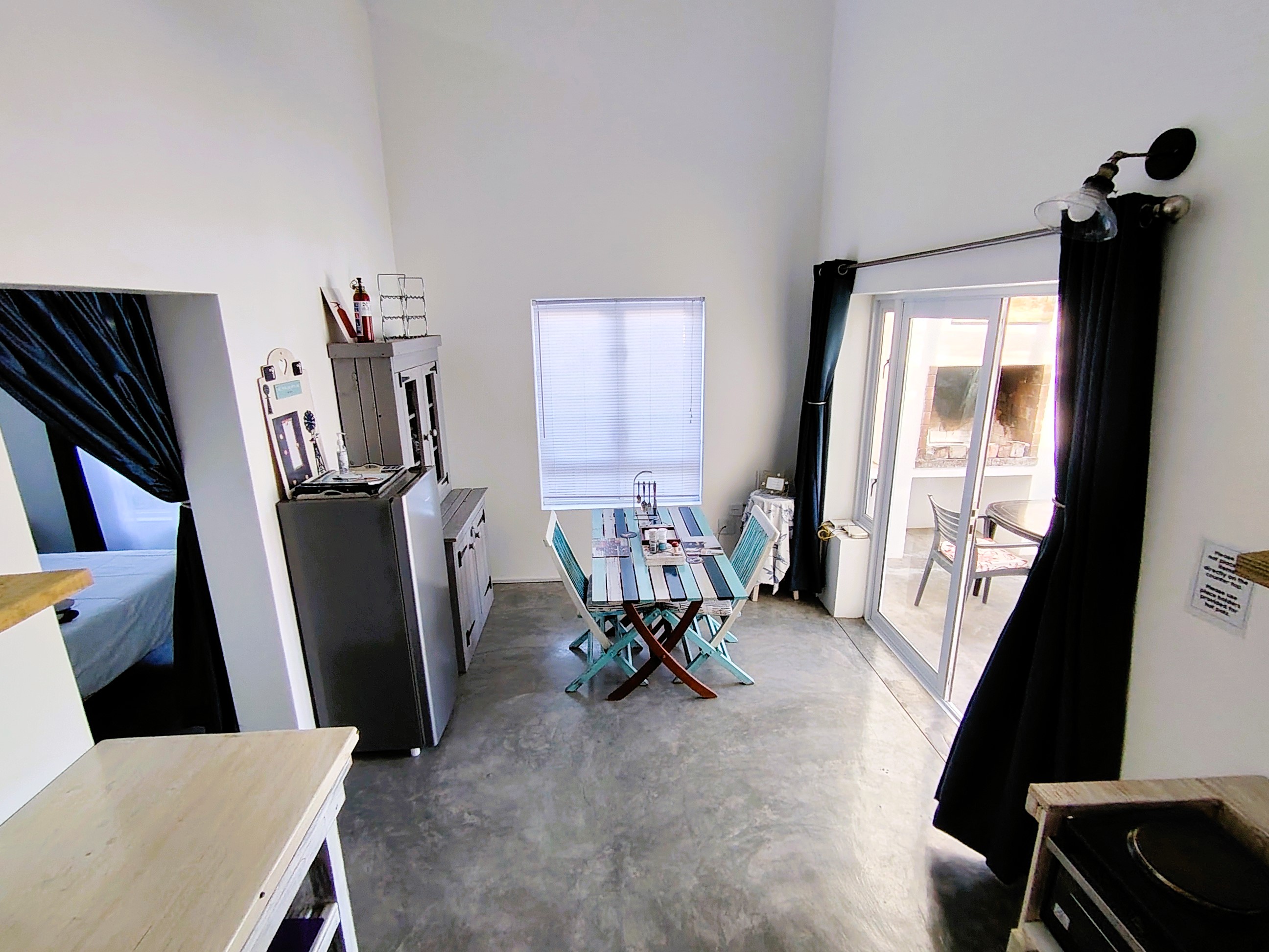 Upon entering through the expansive glass doors, you'll be welcomed by an open-plan kitchen and living area that promotes a warm and inviting atmosphere. The kitchen is fully equipped with essential appliances, including a fridge, a 2-plate stove/oven, a microwave, and a kettle, making meal preparation effortless. The spacious bedroom features a comfortable double bed, while the en-suite bathroom includes a shower, toilet, basin, and built-in cupboard, ensuring both privacy and practicality. Additionally, the flat is fitted with fibre internet, allowing for seamless connectivity and the convenience of working from home. A free-standing fan is also provided to keep you cool during those warm summer days.