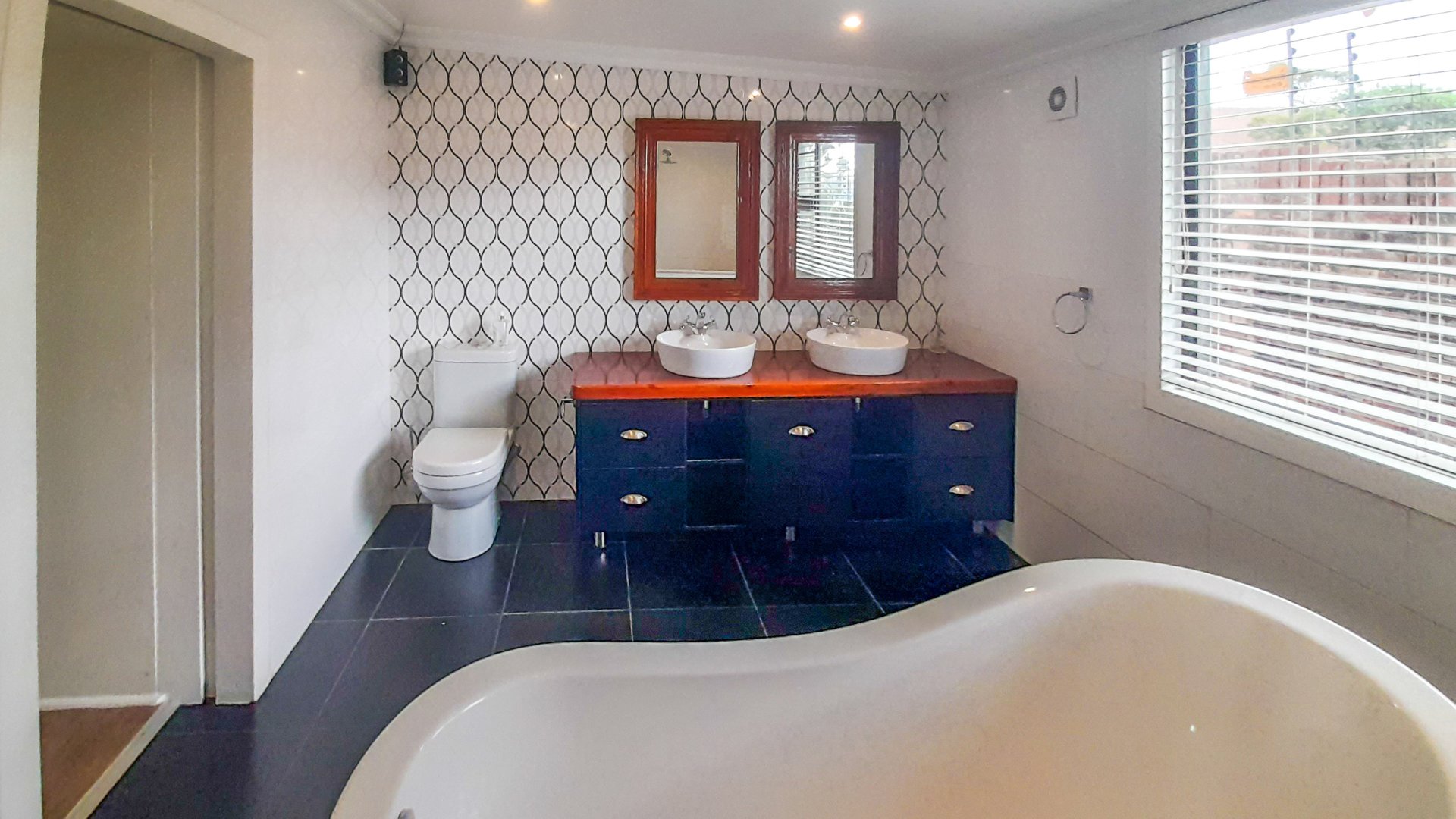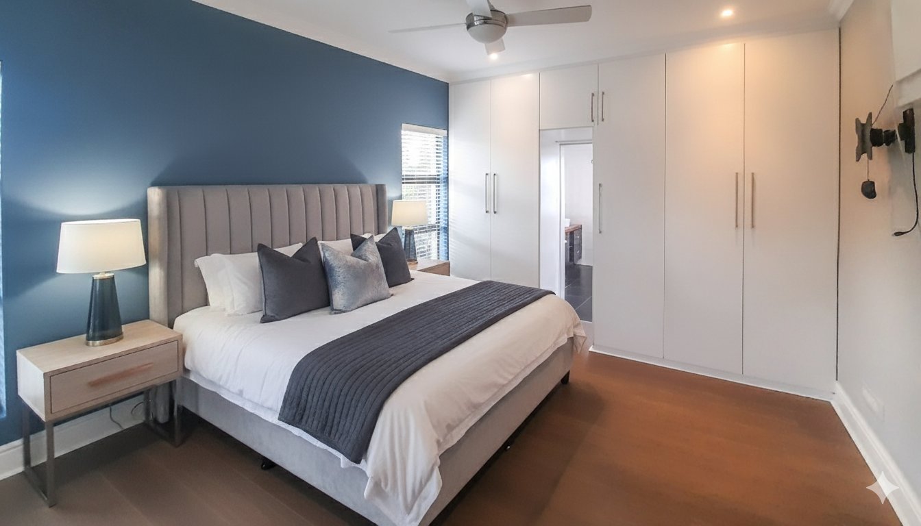 Three bedrooms, each with built-ins, cater to every need: a junior room, a king-sized retreat with dressing table, and a main suite that redefines indulgence. The ensuite is a sanctuary with walk-in shower, Victorian bath, double basins, and more storage than you’ll ever need.