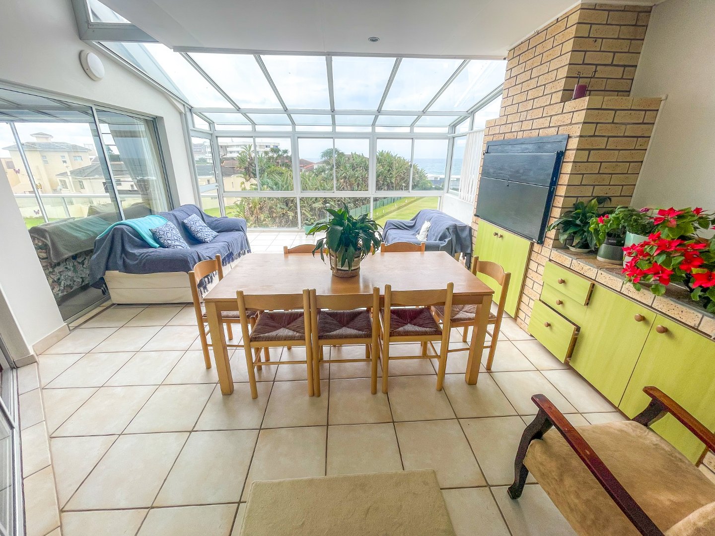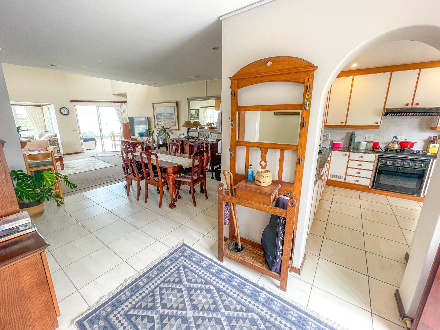 Accommodation is offered in 4 bedrooms, with a main en-suite, some upstairs and others on the main level. You will be spoilt for choice for entertainment with multiple lounges, built-in bar, and dedicated all-weather entertainment patio with built in Braai and of course not forgetting the spectacular seascapes from most rooms and balcony. The kitchen is fully fitted and well positioned to service the household regardless of where they choose to languish, including the study.