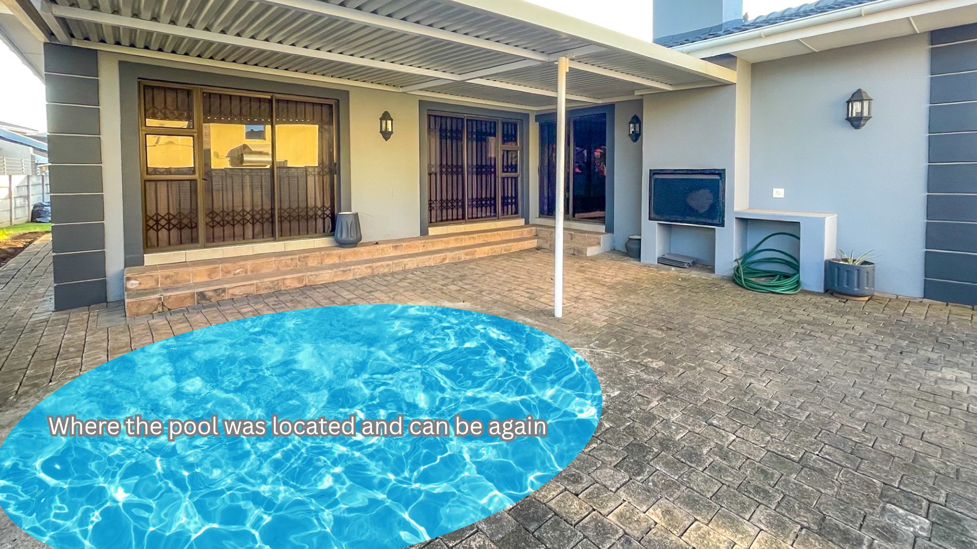 Outdoors, the garden reveals its charms with an established landscape and a braai area. There’s a pool that’s been thoughtfully closed up, but the infrastructure remains intact. Should a splashy comeback be on your vision board, approved plans are available. A double carport adds welcome convenience, and a separate outdoor toilet ties in practicality without fuss.