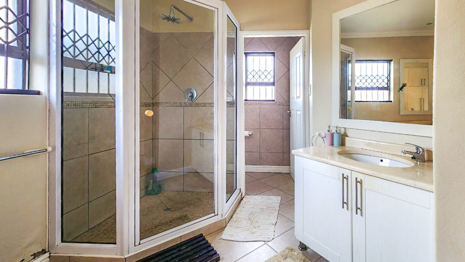 Down the passage, three well-proportioned bedrooms await, each with built-in cupboards and a calm ambience that lets you unwind. The main bedroom has its own beautifully modern en-suite whilst a full modern bathroom services the other 2 bedrooms.