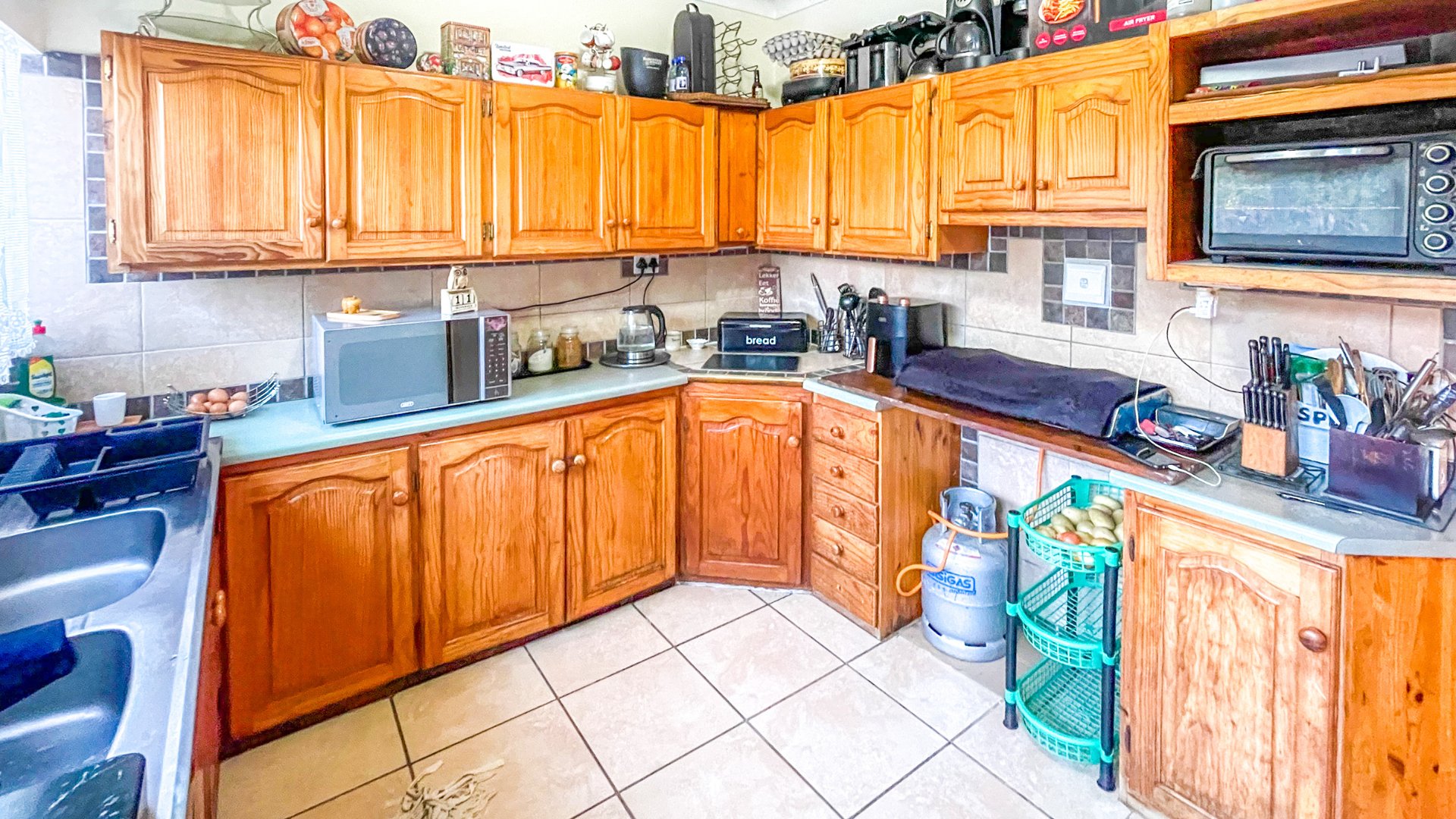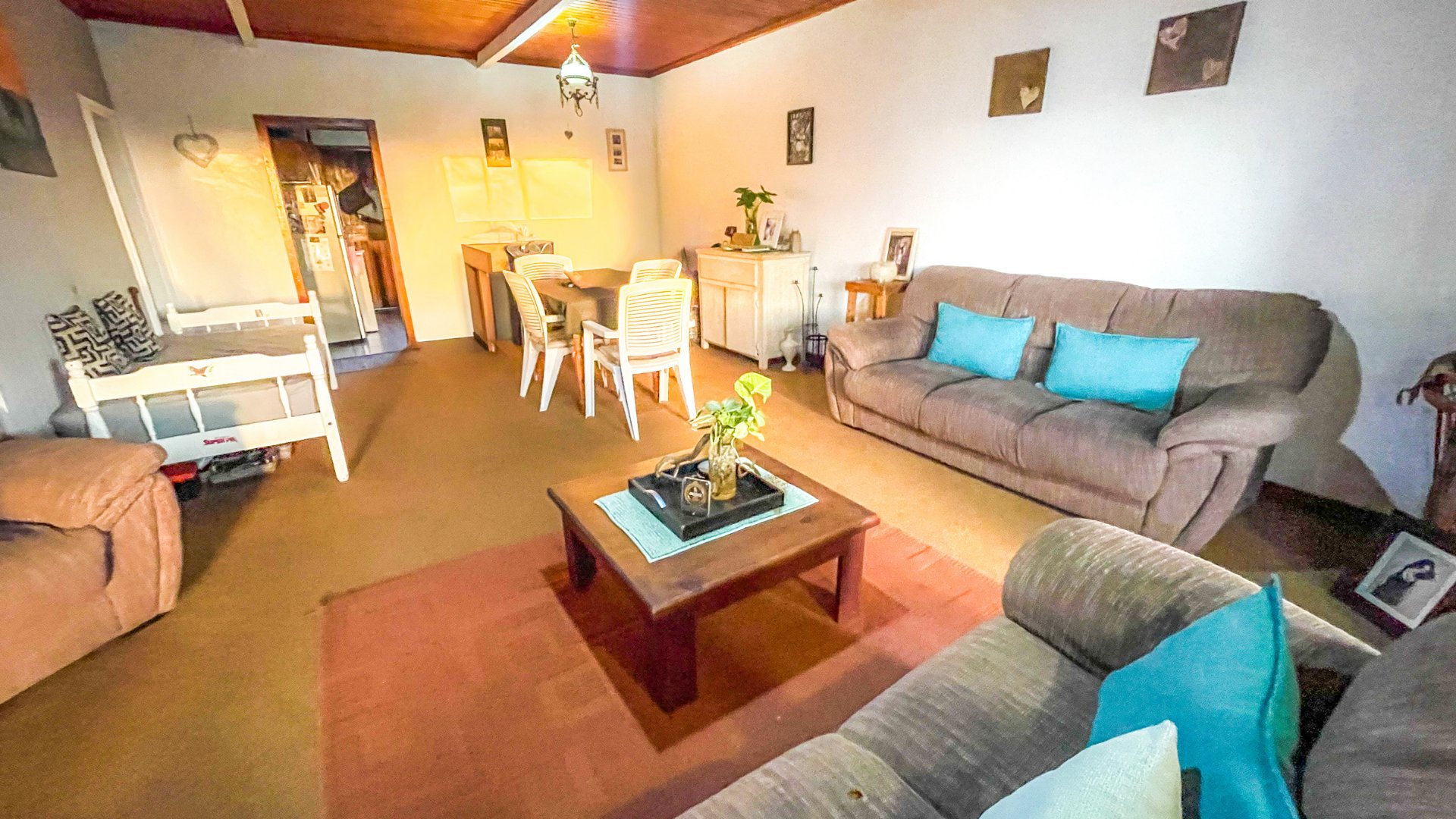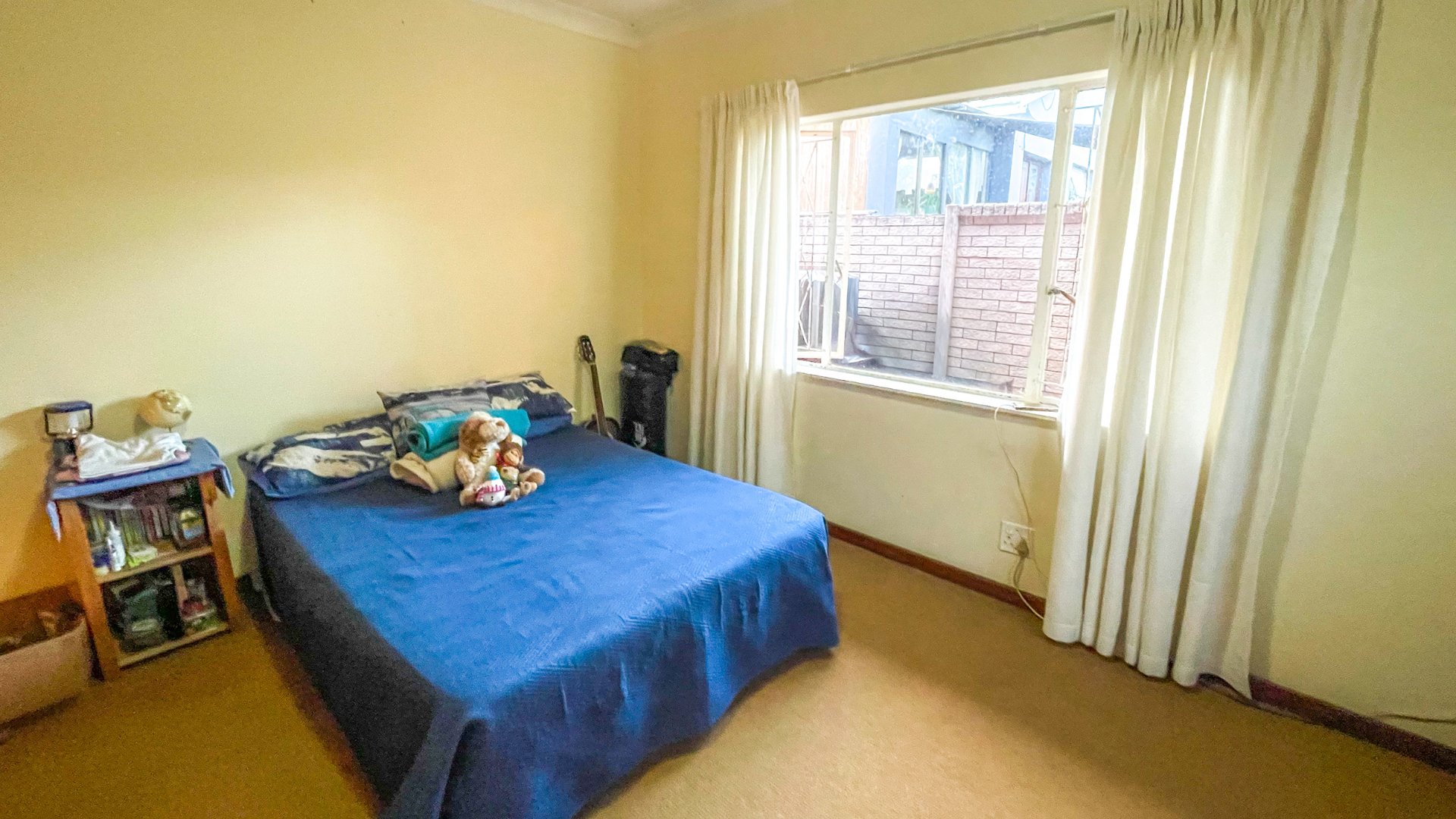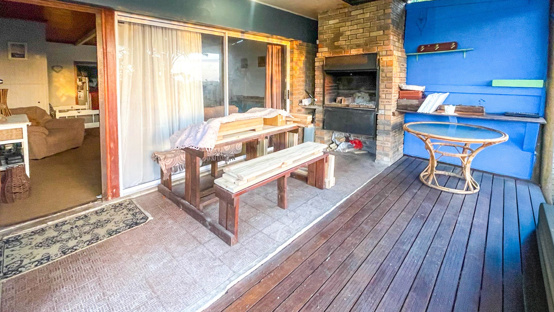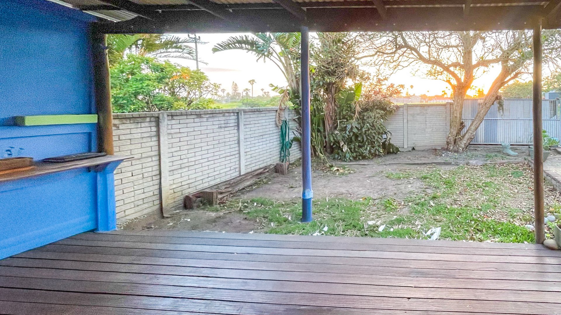 The main house is a spacious older home with three large bedrooms, a full family bathroom (plus en suite), and a generous lounge-dining combo that opens via sliders to a covered patio with built-in braai — perfect for anytime entertaining. The kitchen is fully fitted with space for a double-door fridge and double sink, ready for your own stove. It’s a home with heart, and a little TLC will go a long way in bringing out its full charm.