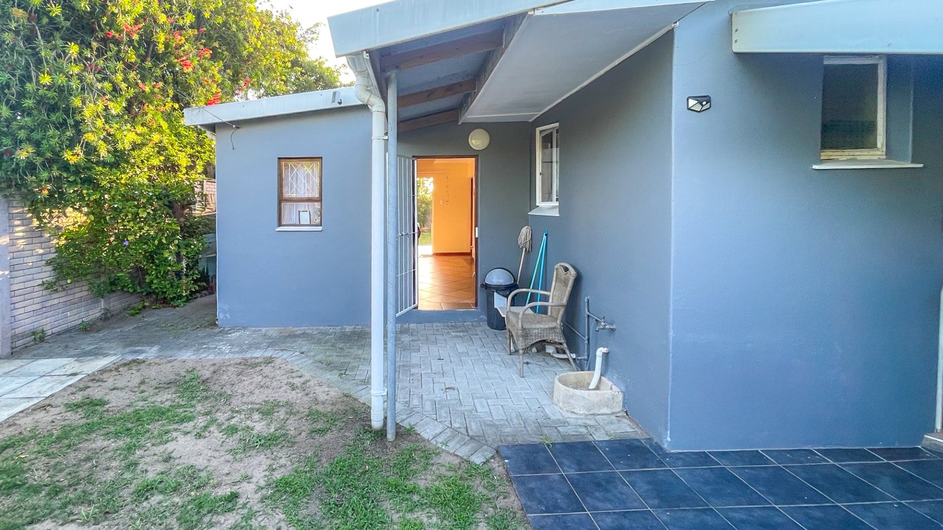 The separate flat is pet-friendly and equally geared for lifestyle. It features a spacious bedroom with built-ins and dressing table, a huge full bathroom, and an open-plan living area that flows to its own undercover braai patio. With its own geyser, laundry nook, and paved parking for two, it’s ideal for extended family, rental income, or dual-living flexibility. A few finishing touches will elevate it even further.