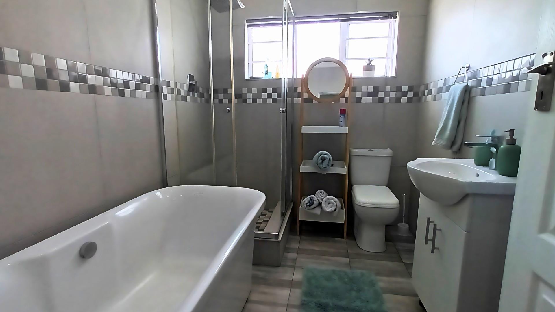 There’s also a bonus one-bedroom flat, completely private with its own entrance. It includes an open-plan kitchen with under-counter oven, hob, extractor, a bathroom, and a spacious lounge and dining area that opens out to its own little braai patio — perfect for extended family, guests, or even a rental opportunity.