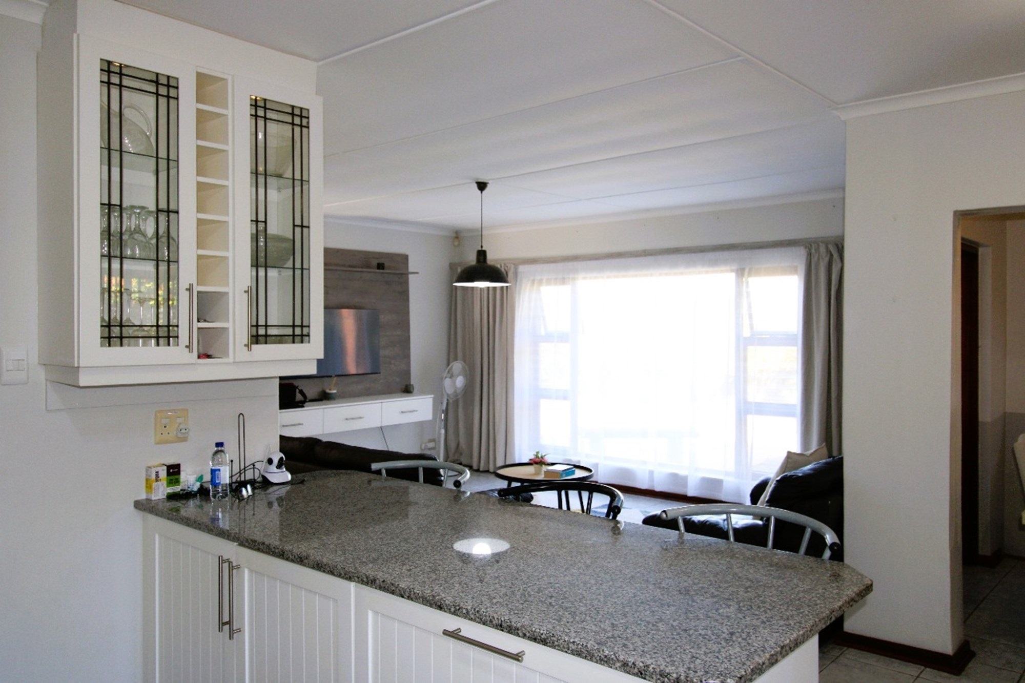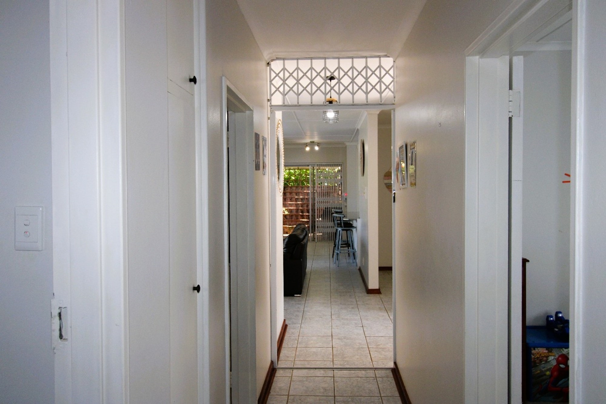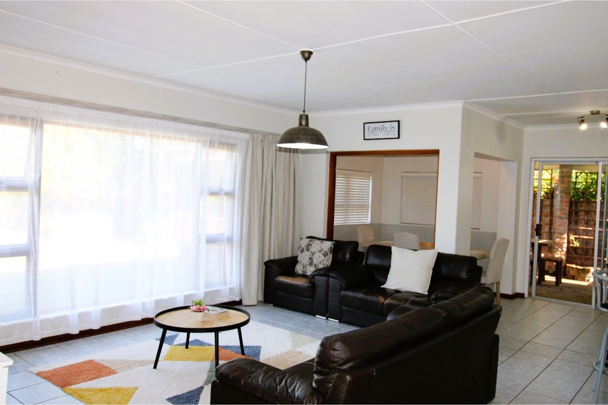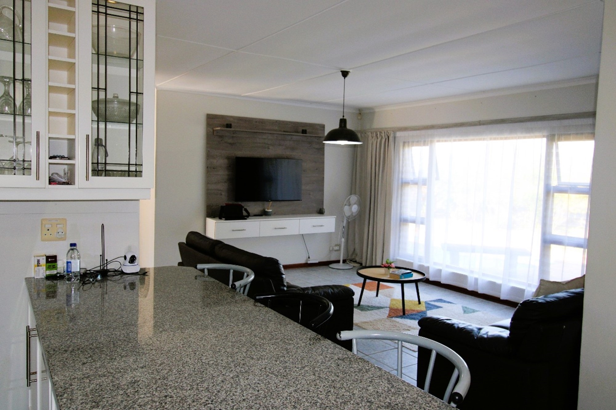 Outdoor features include a sparkling swimming pool, a covered veranda for entertaining, and a spacious garden. A secure garage with automatic door, alarm system, and water tank add peace of mind and convenience. Designated office area, with ample shelves and fibre internet is installed, making this an excellent option for work-from-home professionals. ( R400 additional cost)