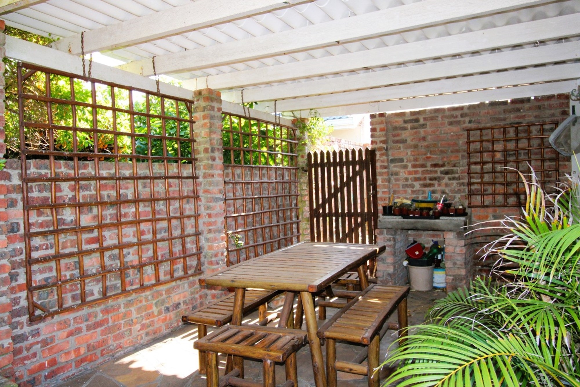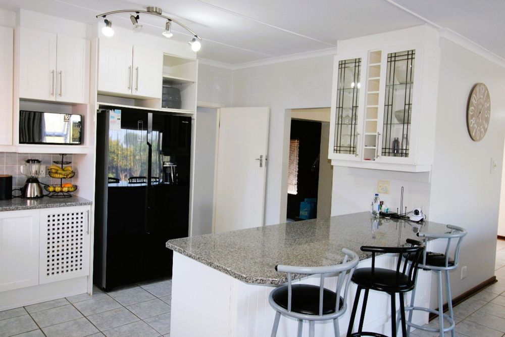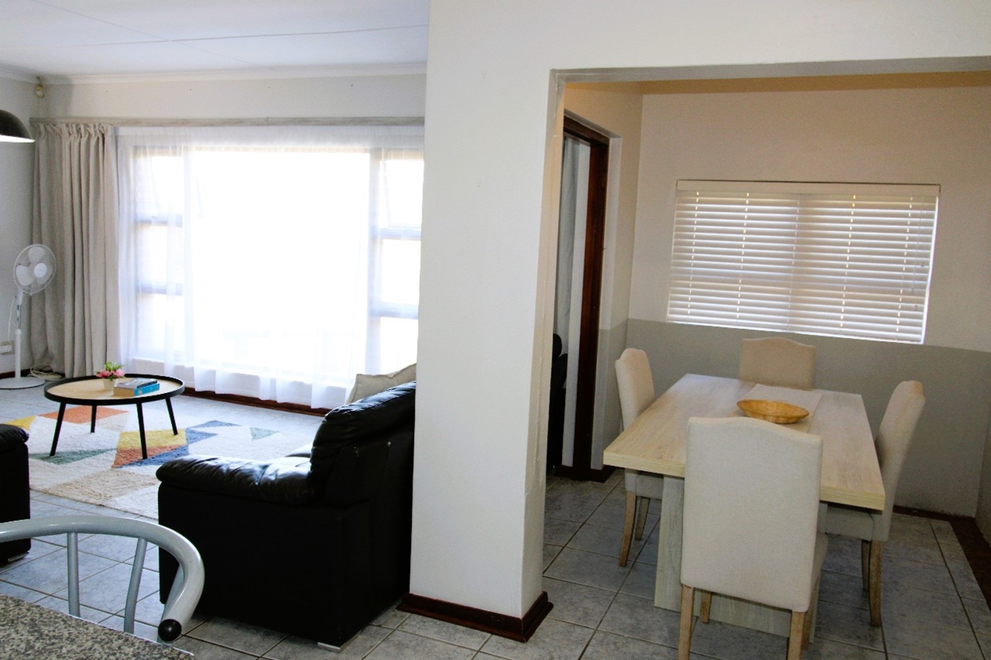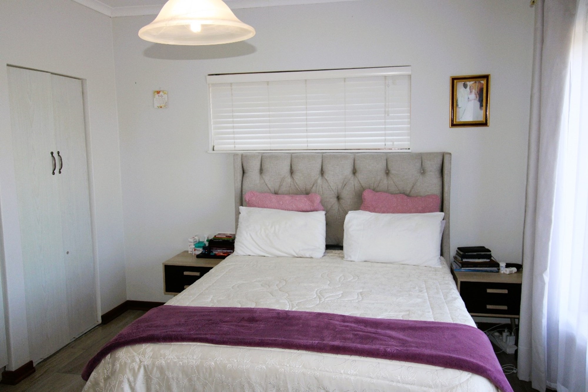 Outdoor features include a sparkling swimming pool, a covered veranda for entertaining, and a spacious garden. A secure garage with automatic door, alarm system, and water tank add peace of mind and convenience. Designated office area, with ample shelves and fibre internet is installed, making this an excellent option for work-from-home professionals. ( R400 additional cost)