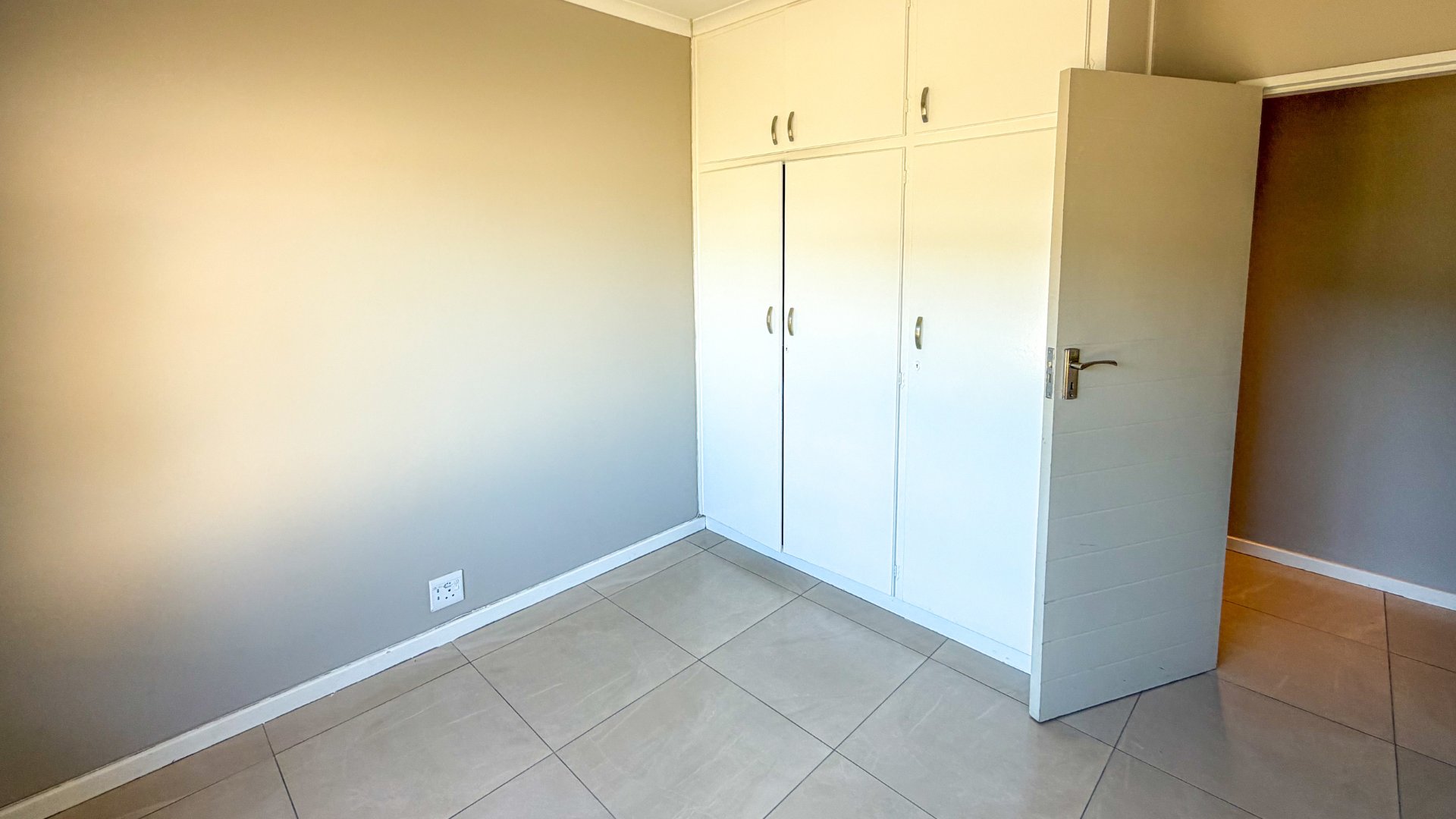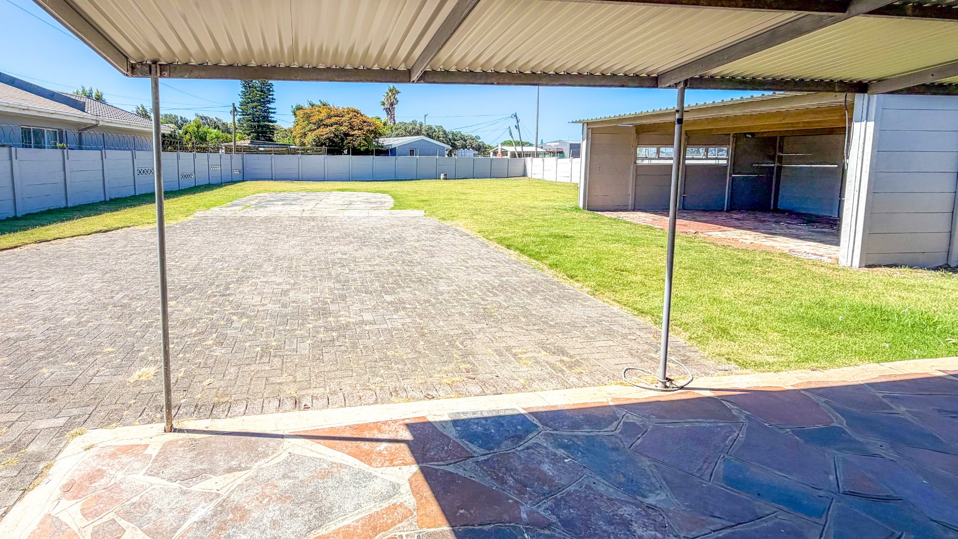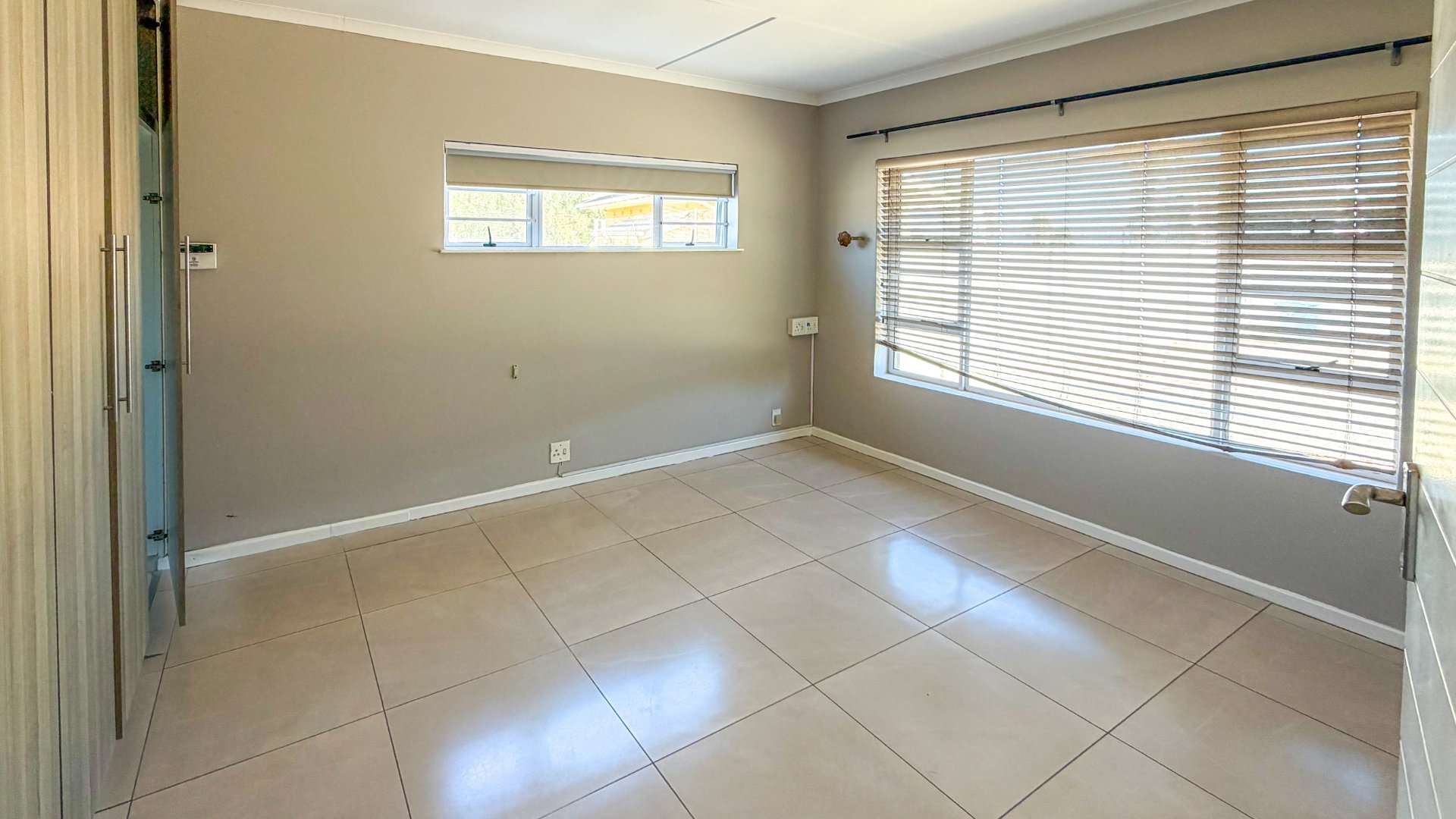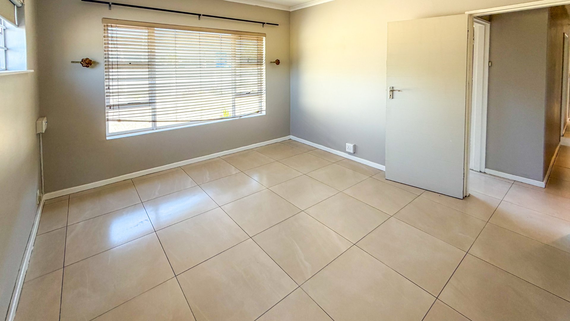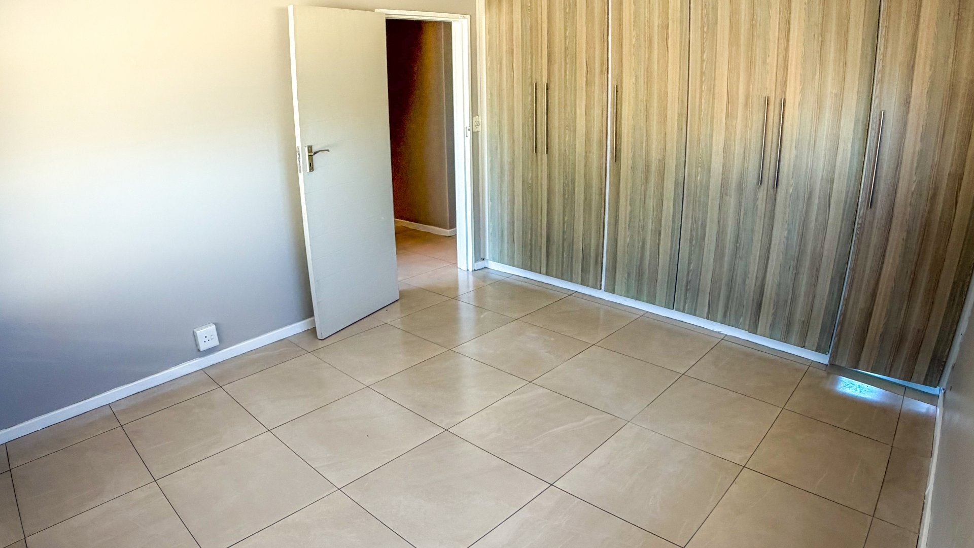 The open-plan lounge and dining area opens through sliding doors to a paved, covered entertainment space—perfect for braais, sundowners, or simply admiring the garden while plotting where the pool will go.