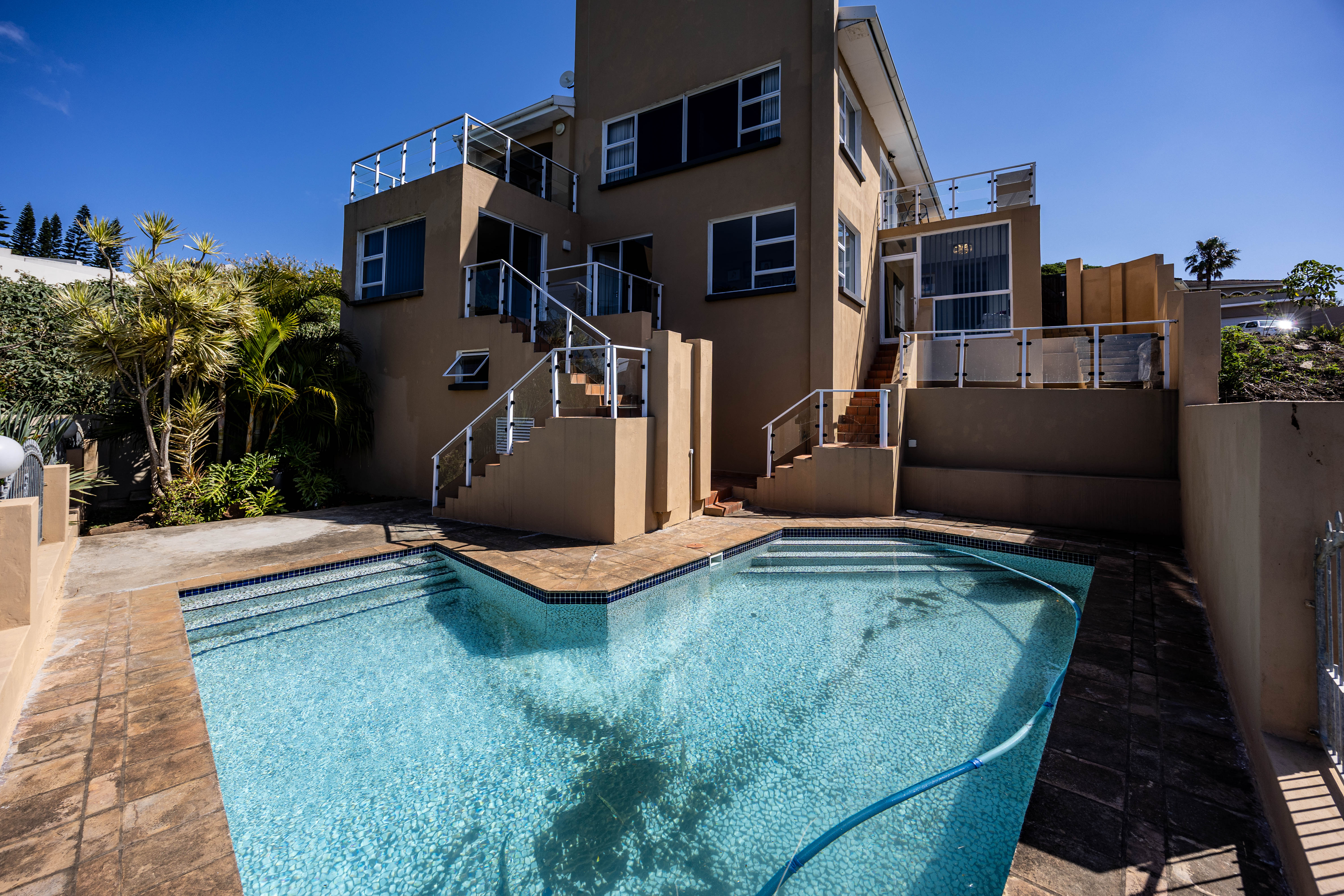 Step outside to discover a sun-kissed pool and outdoor living area, perfect for enjoying those warm summer days.
