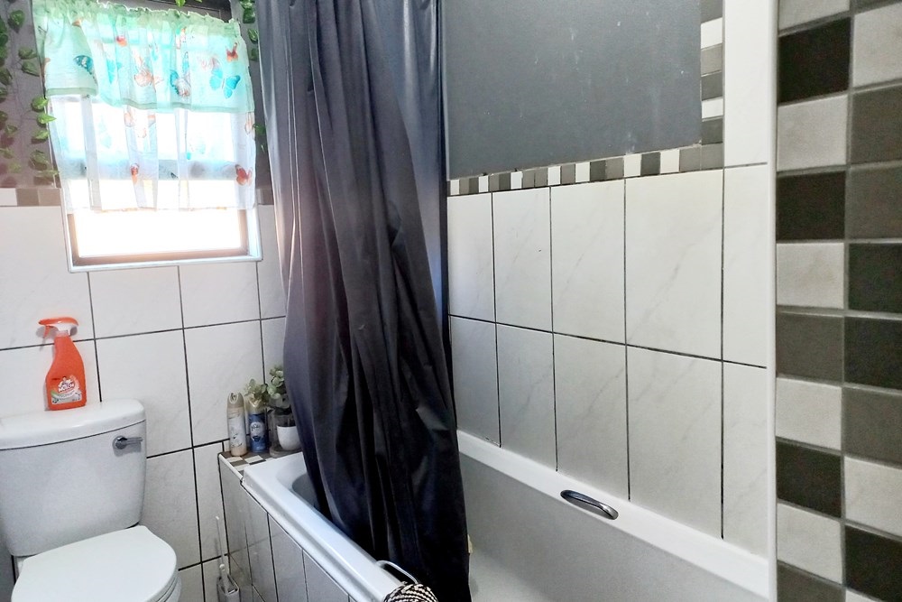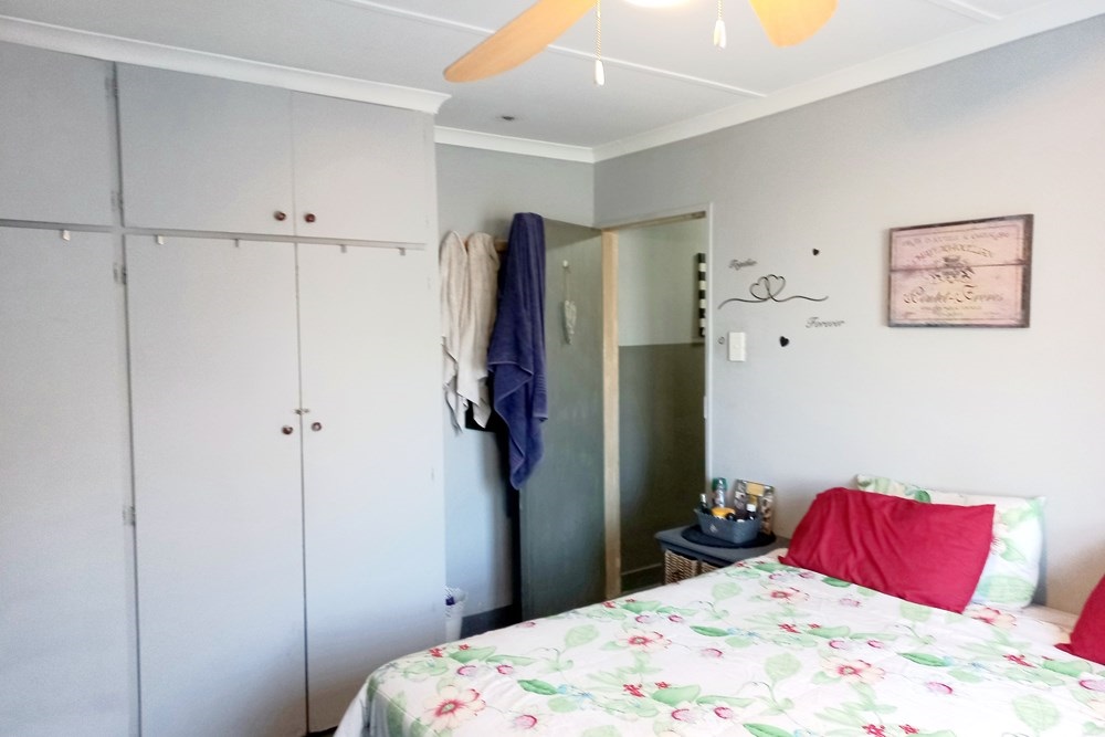 The spacious main bedroom offers plenty of cupboards and an ensuite bathroom with toilet, basin and shower.