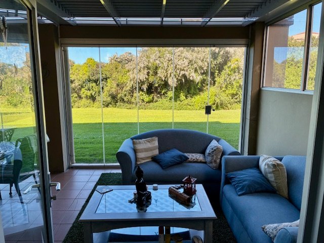 Both the second and third bedrooms open onto a fully enclosed entertainment area with elegant concertina glass doors, making it ideal for summer braais or cozy winter lunches.