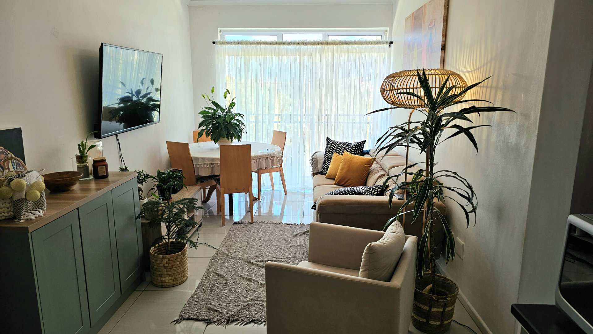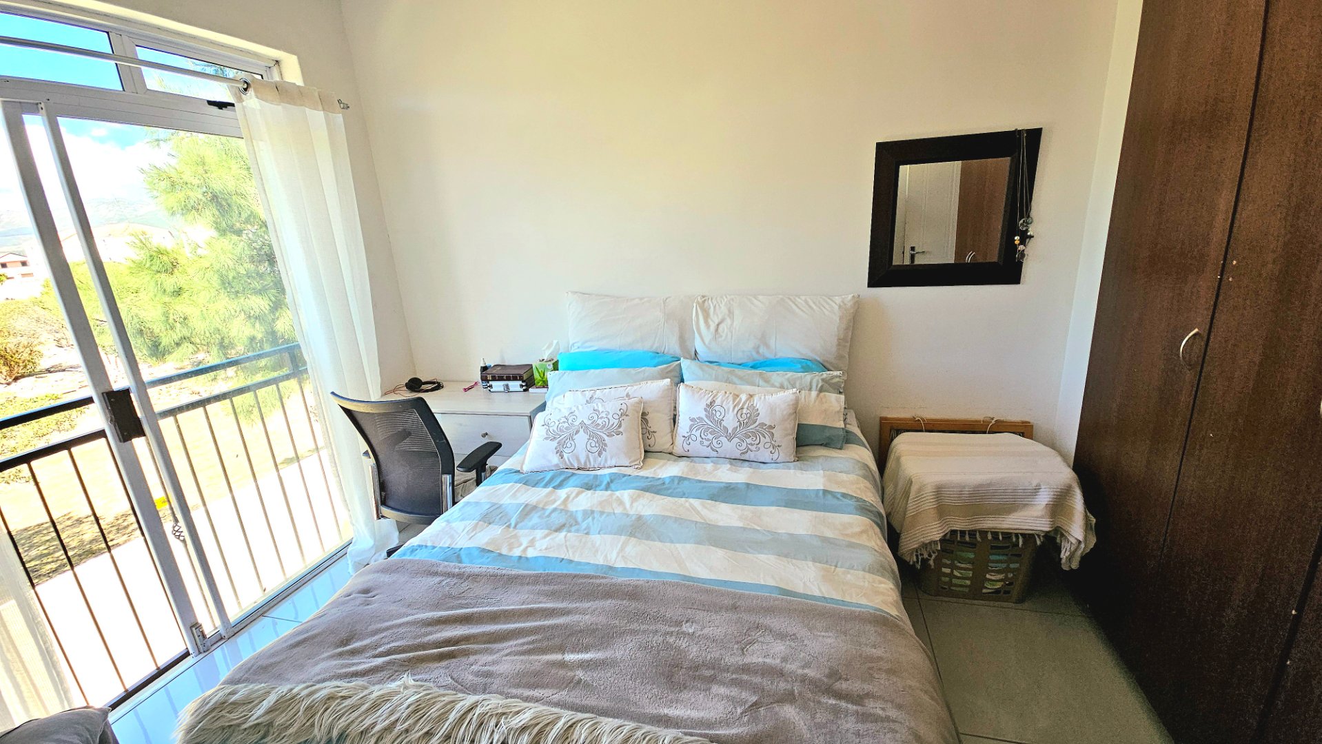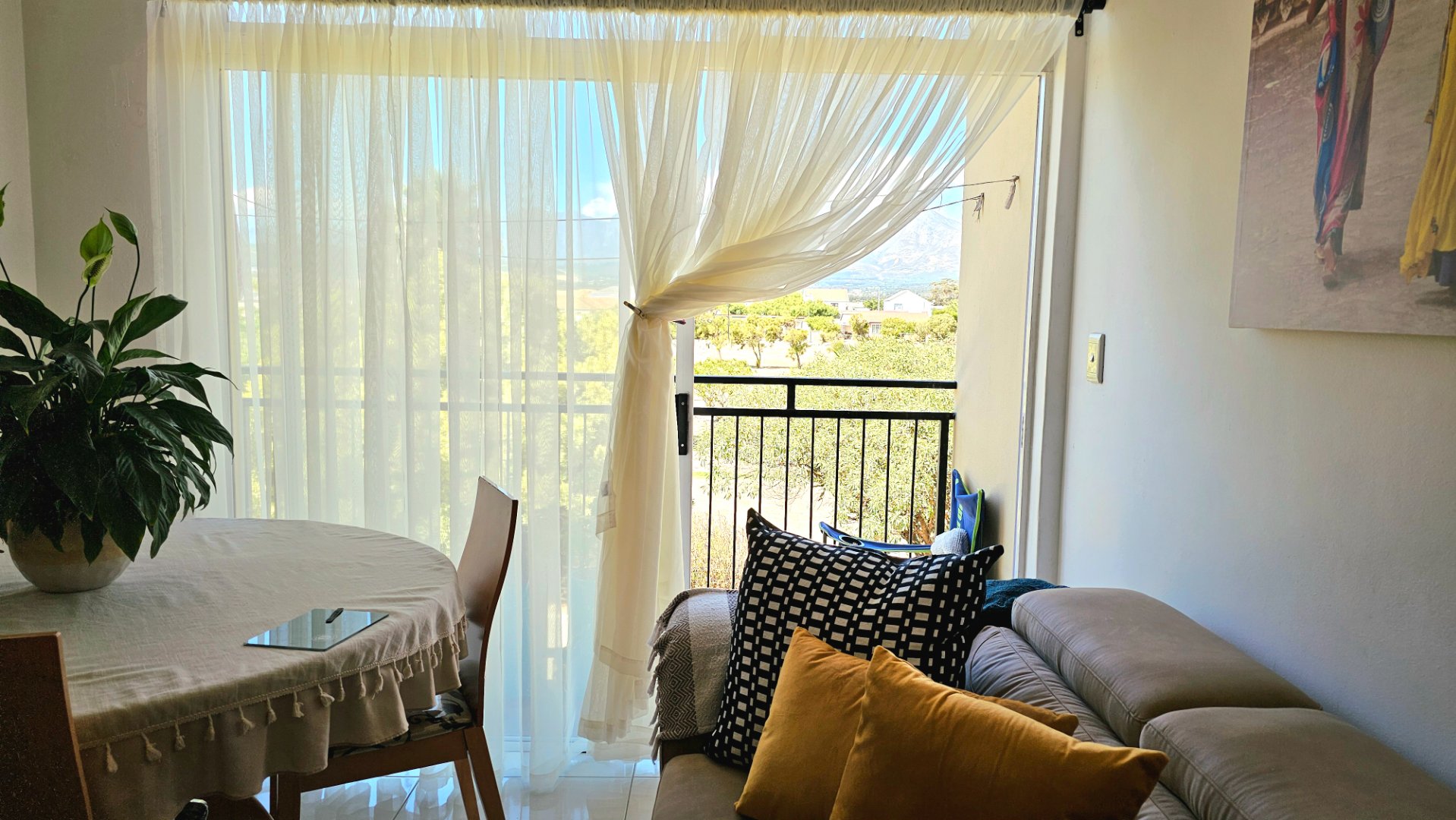 Upon entering the flat, you are met by an open plan tiled kitchen and lounge. The patio door leads out onto a balcony with beautiful mountain views. The two bedrooms boasts with built in cupboards and a beautiful breeze coming in from the patio door in the main bedroom, when open. The beautiful bathroom has a bath, hand shower, basin and toilet. As per the owner, there are two parking bays assigned to the apartment. The complex is close to all amenities.