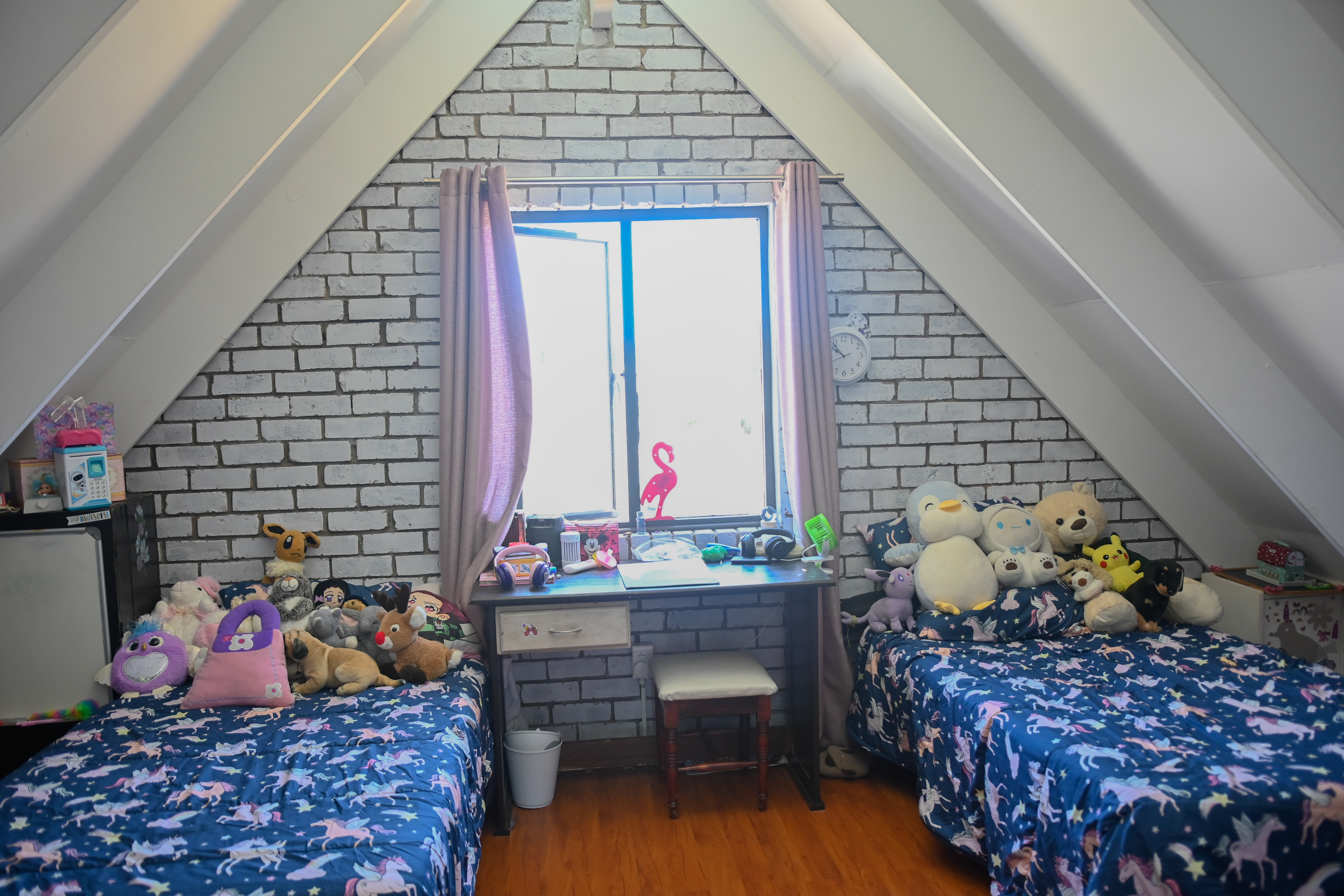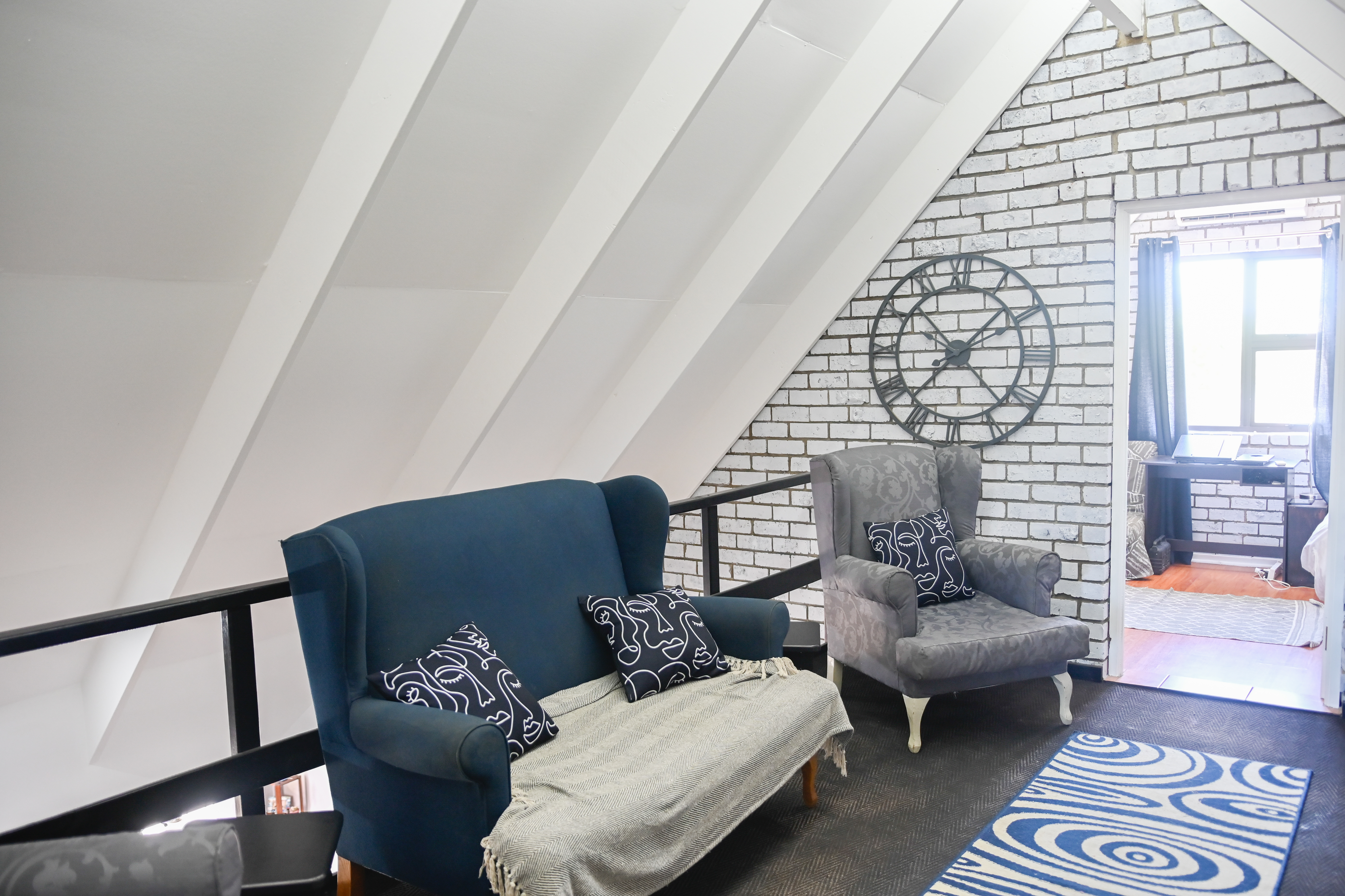 The main bedroom is situated downstairs, complete with an air-conditioner and en-suite bathroom. A second bathroom with a shower is also on this level. Upstairs, two bedrooms and a cosy landing offer a quiet retreat for overnight guests, with an air-conditioner cooling the upper floor.