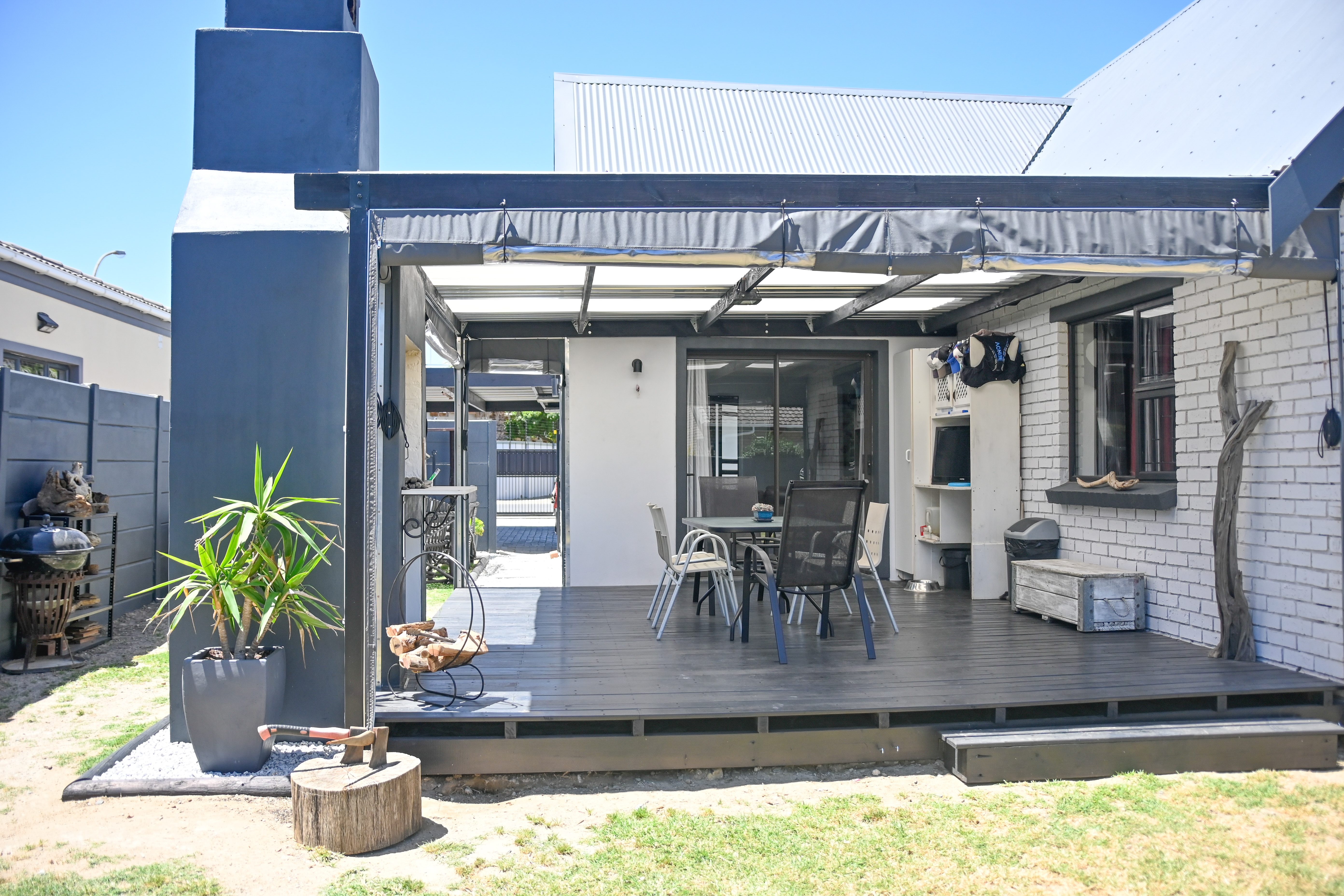 The heart of the home is its open-plan layout, creating an easy flow between the lounge, dining area, and modern kitchen—ideal for gatherings of any size. The enclosed braai room with weather blinds is a standout feature, giving you a comfortable, private space to entertain all year round. Large sliding doors open to a spacious backyard, perfect for outdoor dining, celebrations, or simply relaxing while guests enjoy the fresh coastal air.