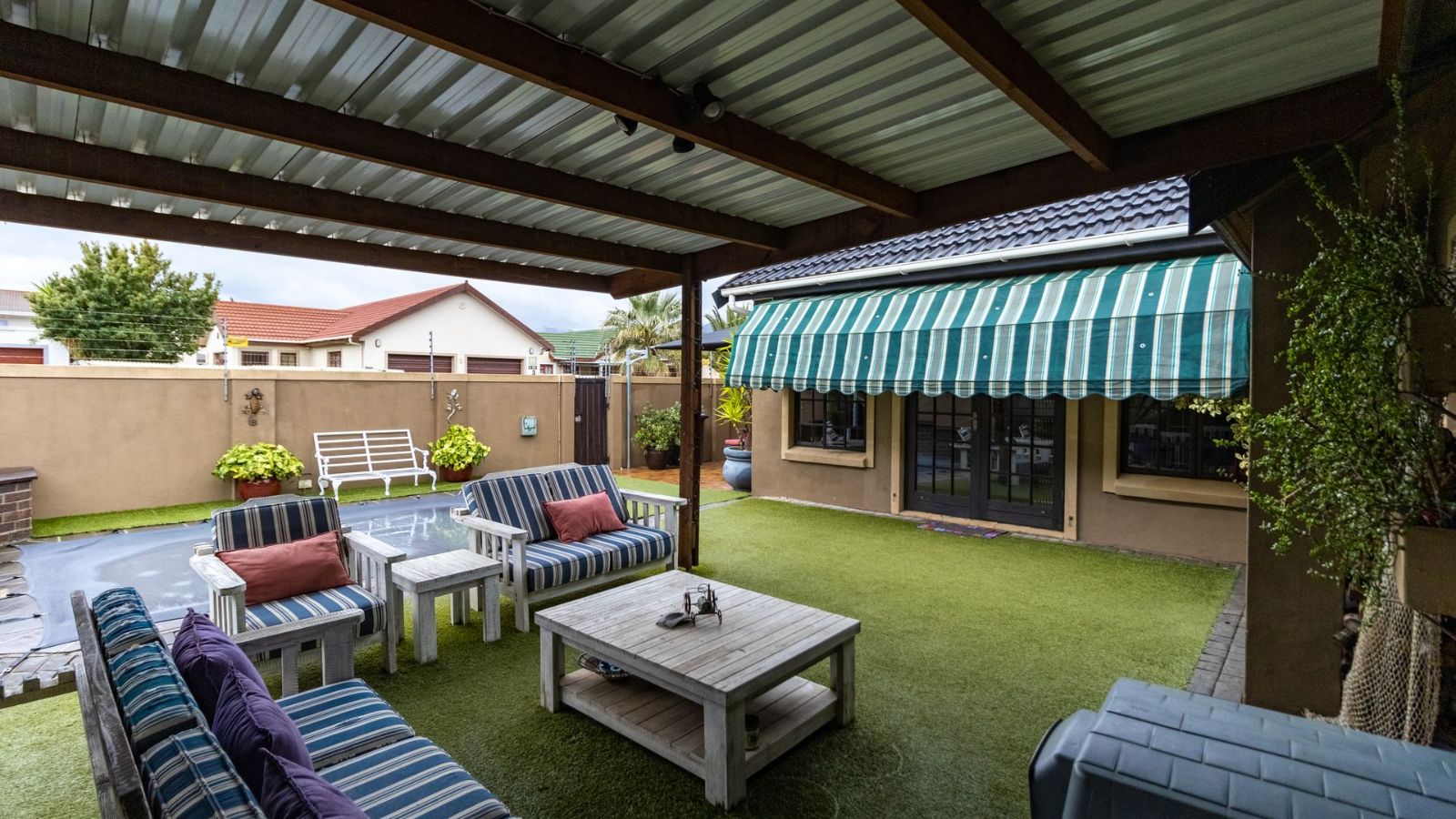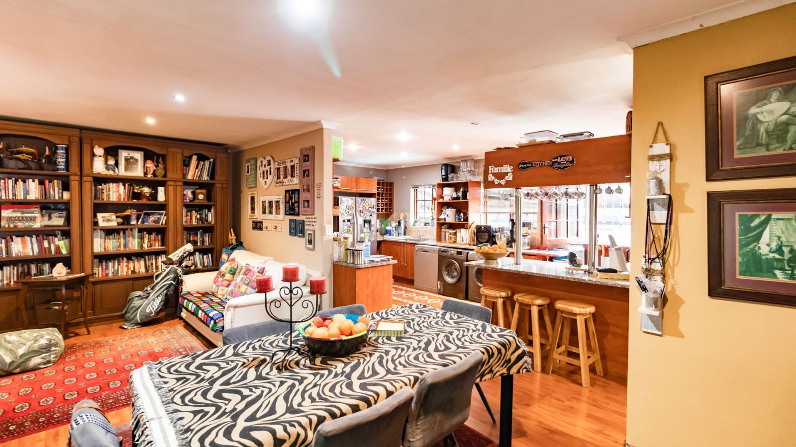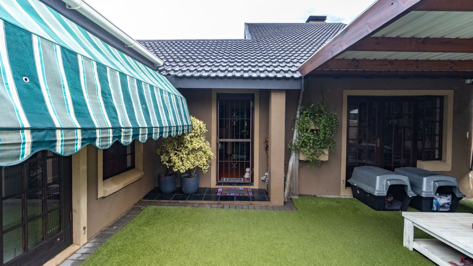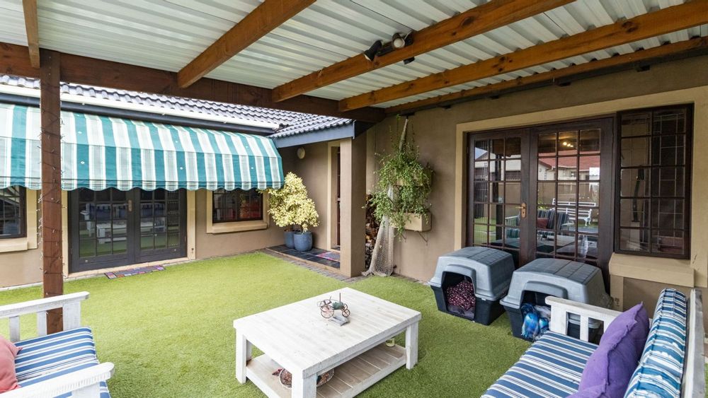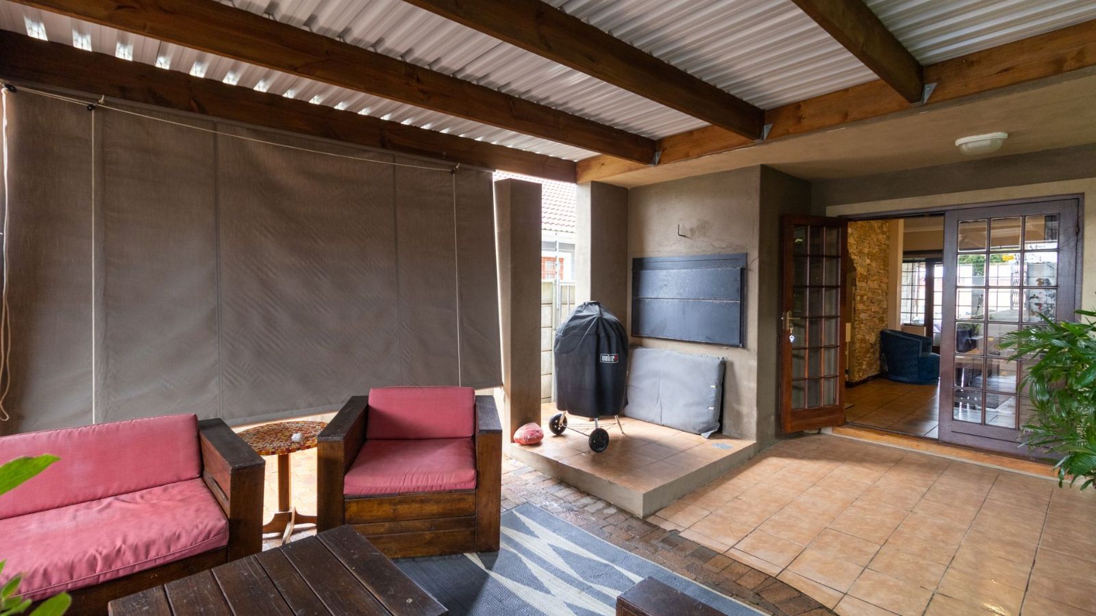 Friends and family gatherings is a dream with a large entertainment room featuring a bar, built-in braai and double doors leading out to covered patios. A large patio featuring a built-in braai, opening onto a small retreat style garden — a perfect peaceful nook for relaxed outdoor meals or quiet reflection.