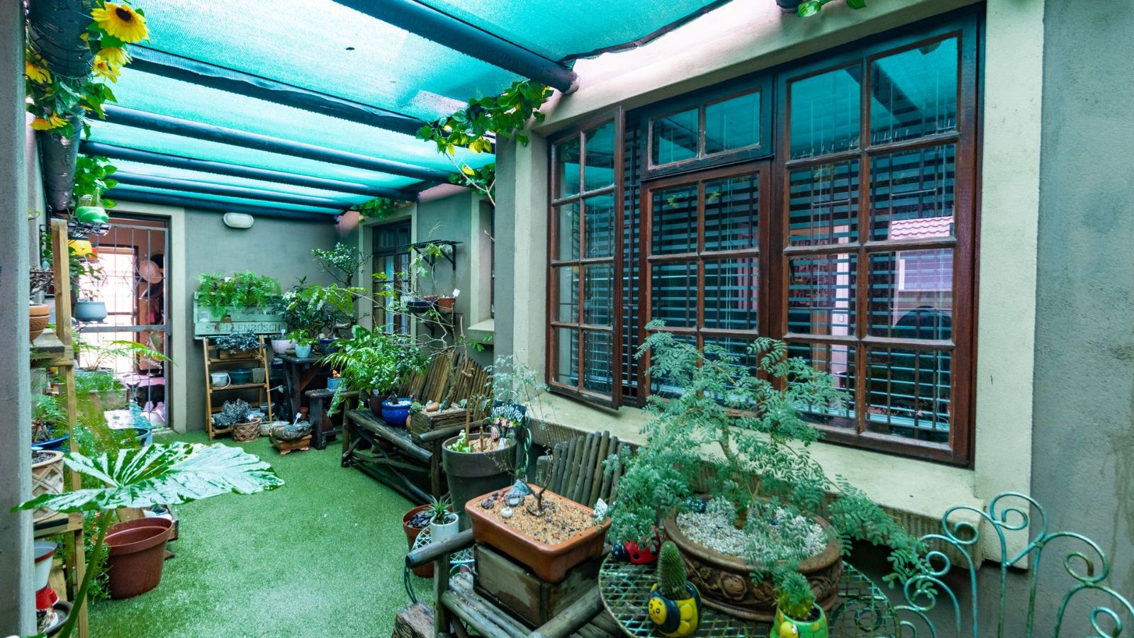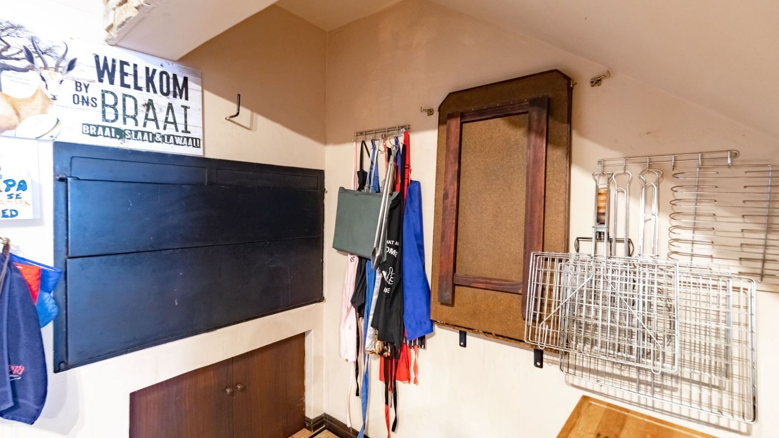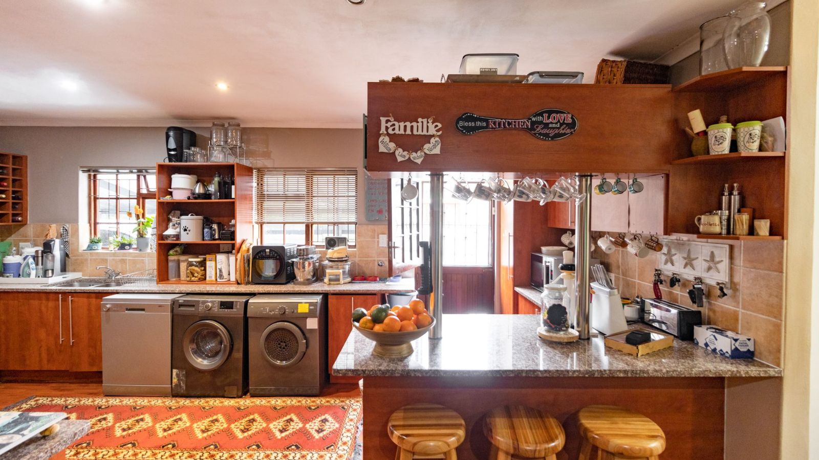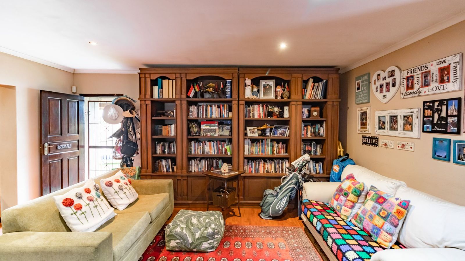 Friends and family gatherings is a dream with a large entertainment room featuring a bar, built-in braai and double doors leading out to covered patios. A large patio featuring a built-in braai, opening onto a small retreat style garden — a perfect peaceful nook for relaxed outdoor meals or quiet reflection.