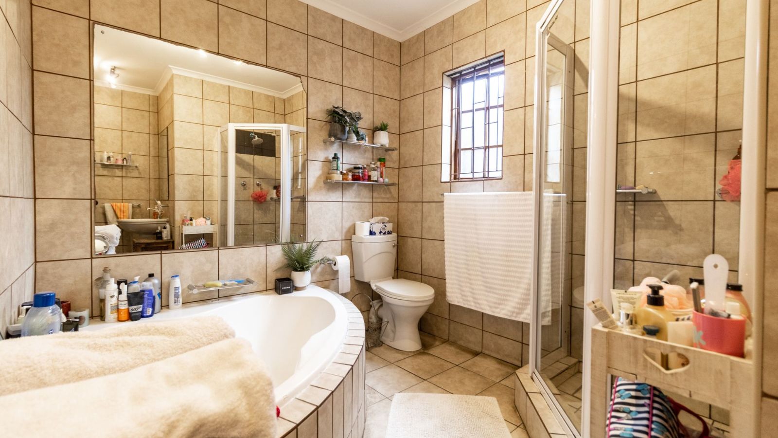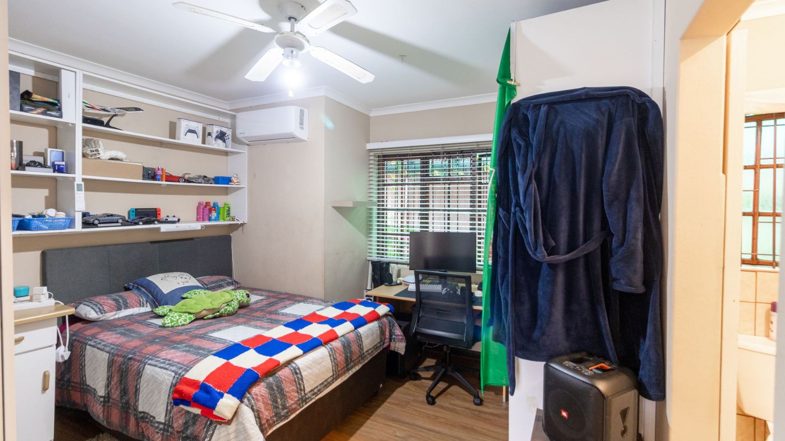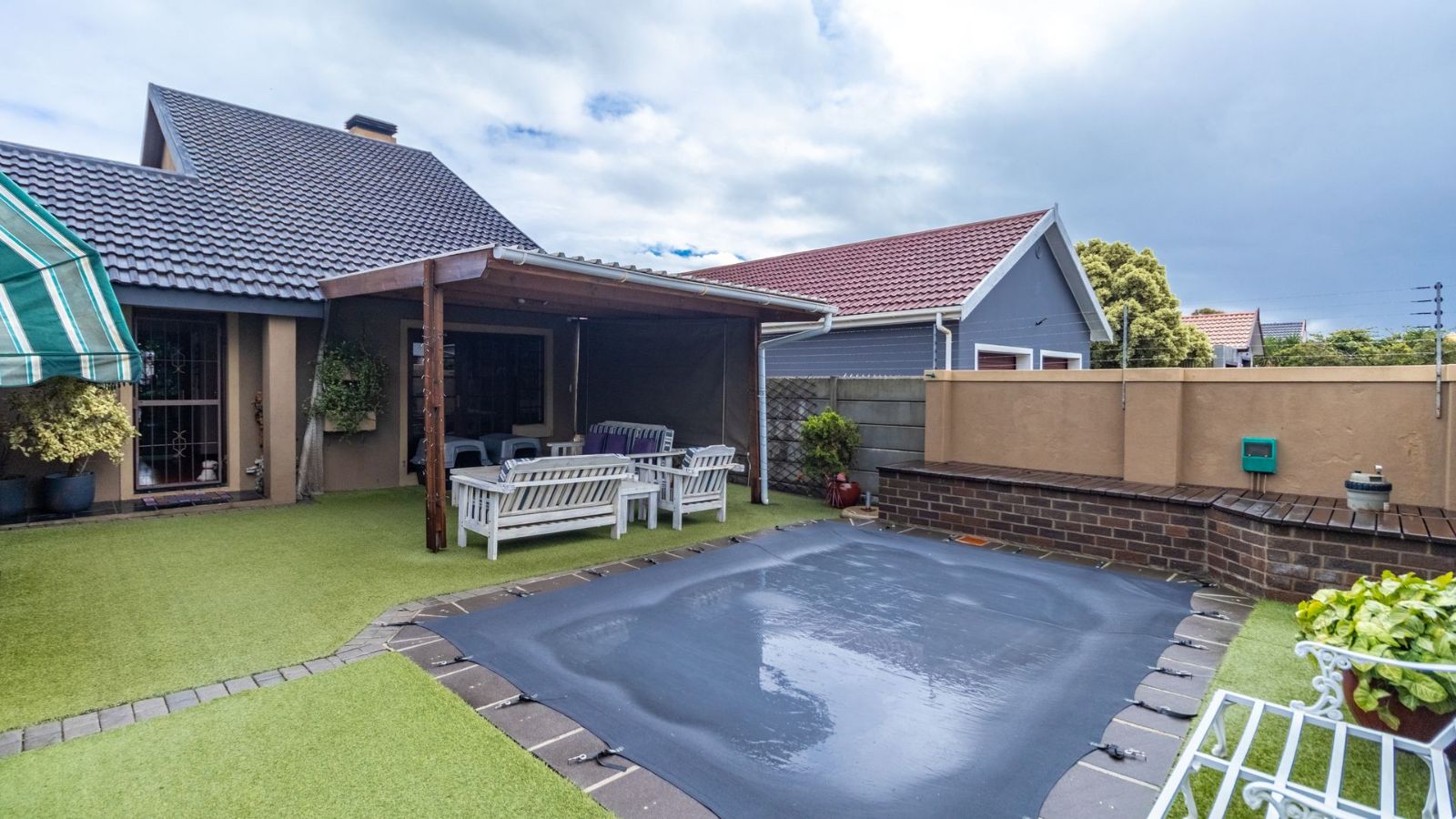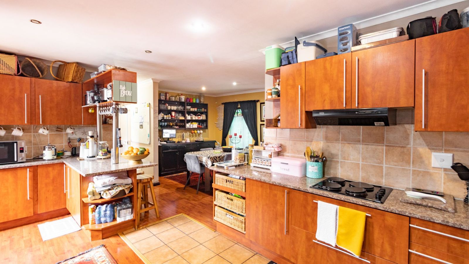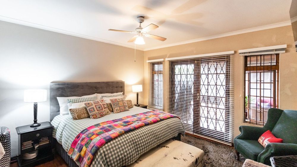 Friends and family gatherings is a dream with a large entertainment room featuring a bar, built-in braai and double doors leading out to covered patios. A large patio featuring a built-in braai, opening onto a small retreat style garden — a perfect peaceful nook for relaxed outdoor meals or quiet reflection.