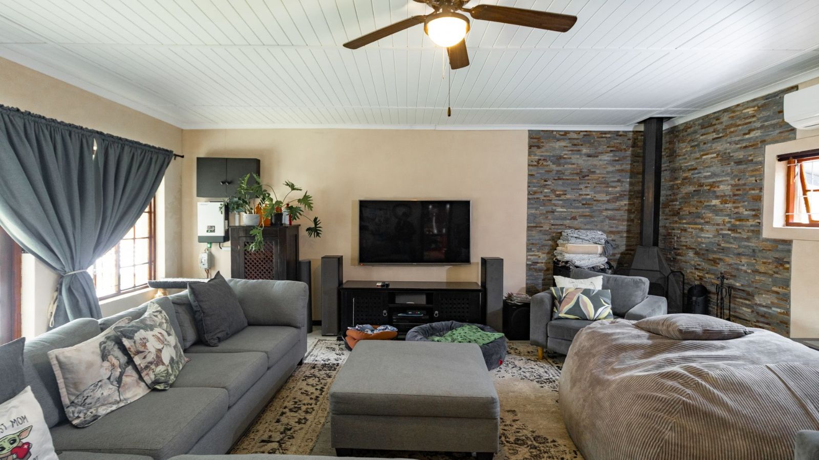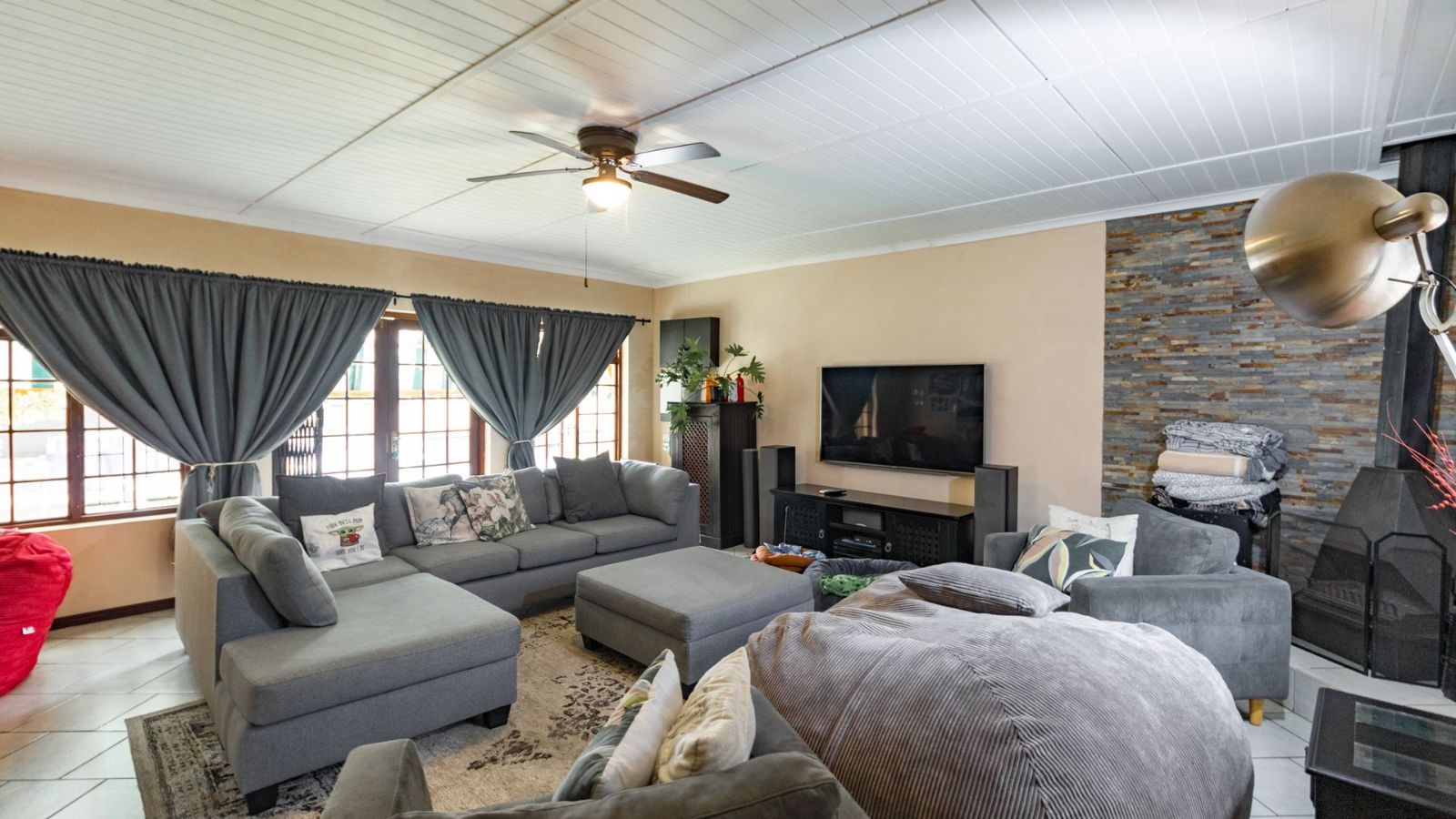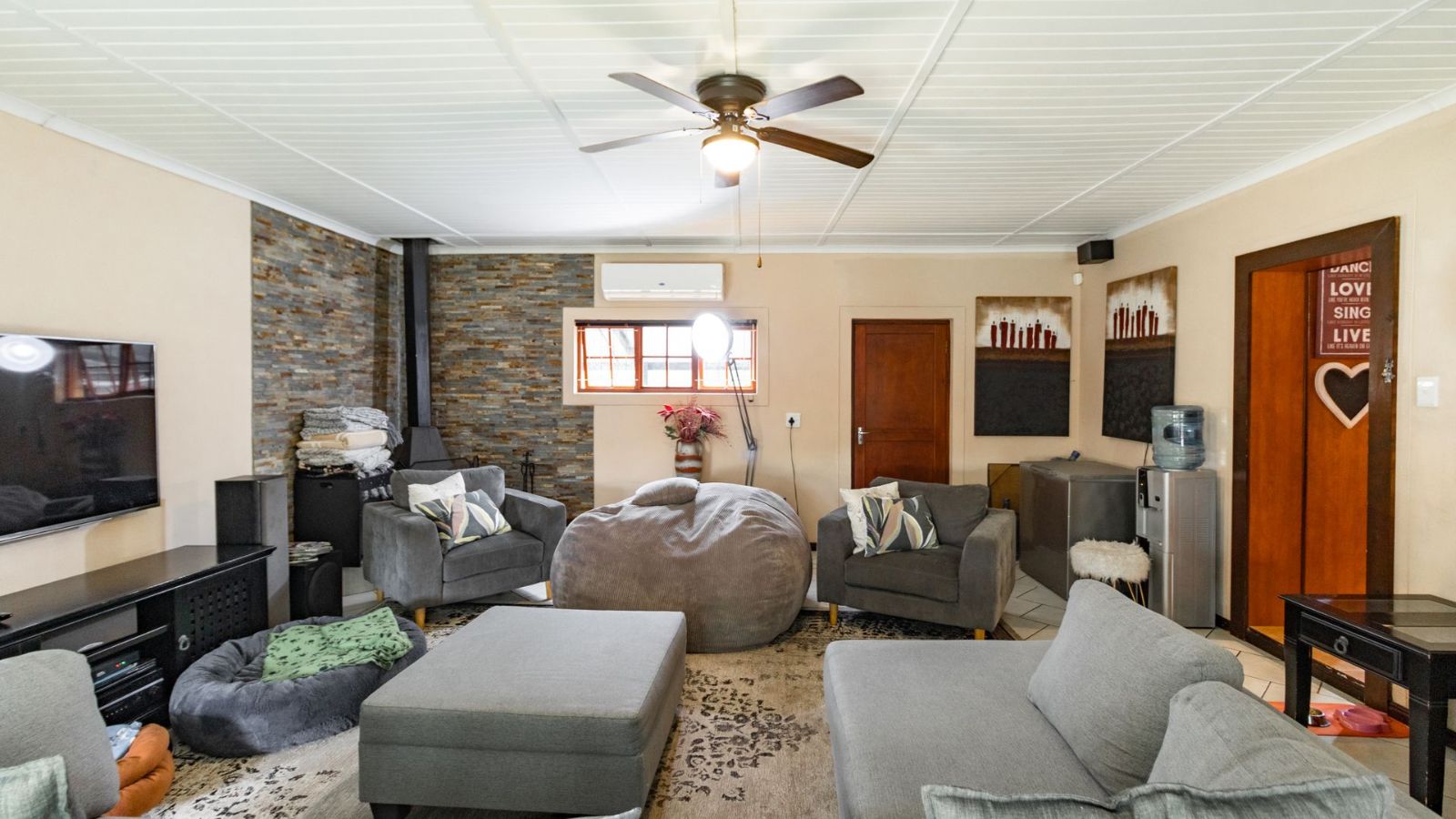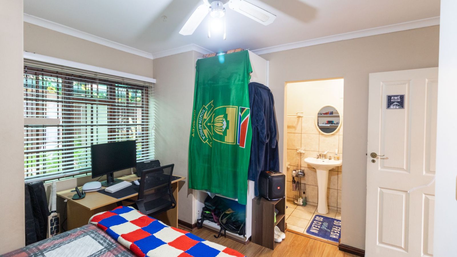 Friends and family gatherings is a dream with a large entertainment room featuring a bar, built-in braai and double doors leading out to covered patios. A large patio featuring a built-in braai, opening onto a small retreat style garden — a perfect peaceful nook for relaxed outdoor meals or quiet reflection.
