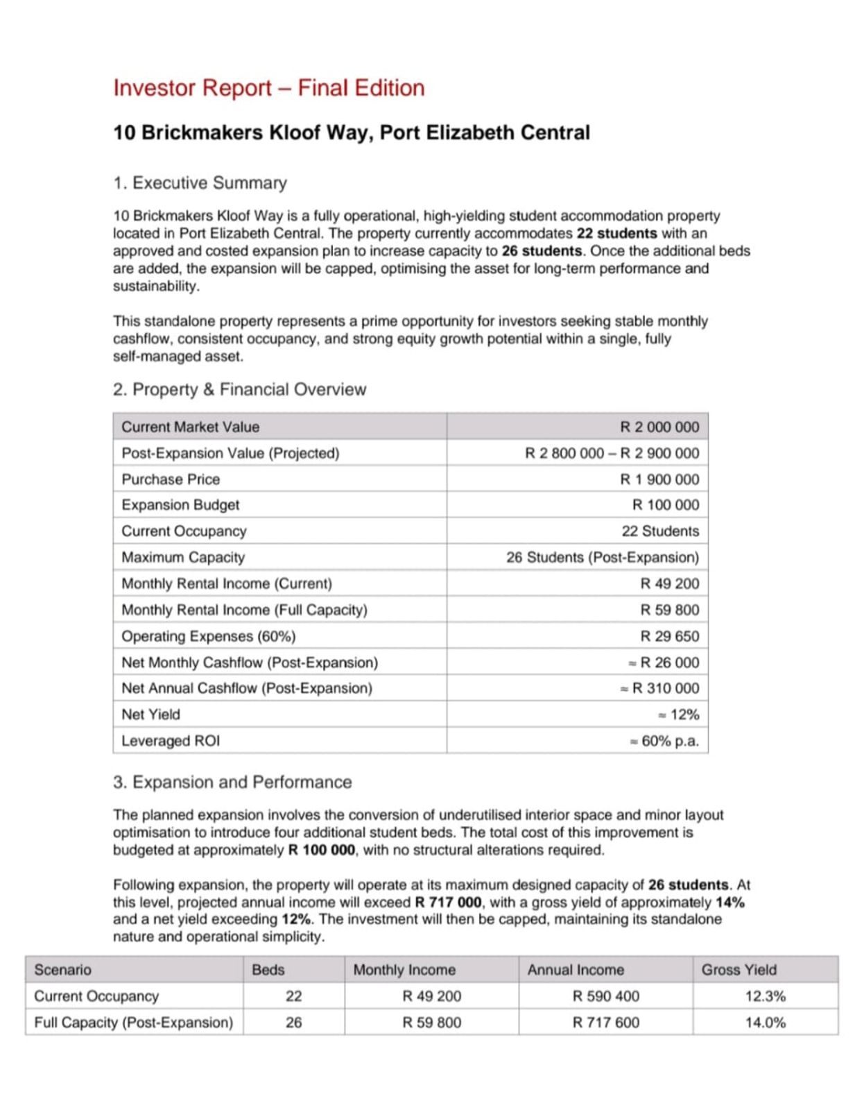 Currently generating R52,000 per month, the property is set to increase to well over R70,000 per month next year, ensuring excellent cash flow and long-term stability.