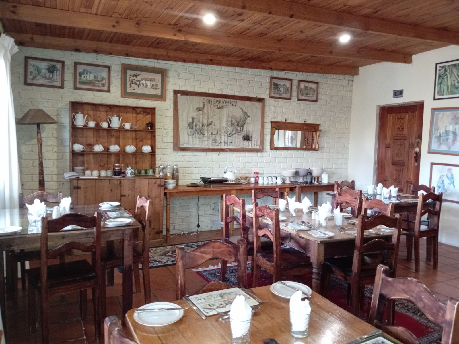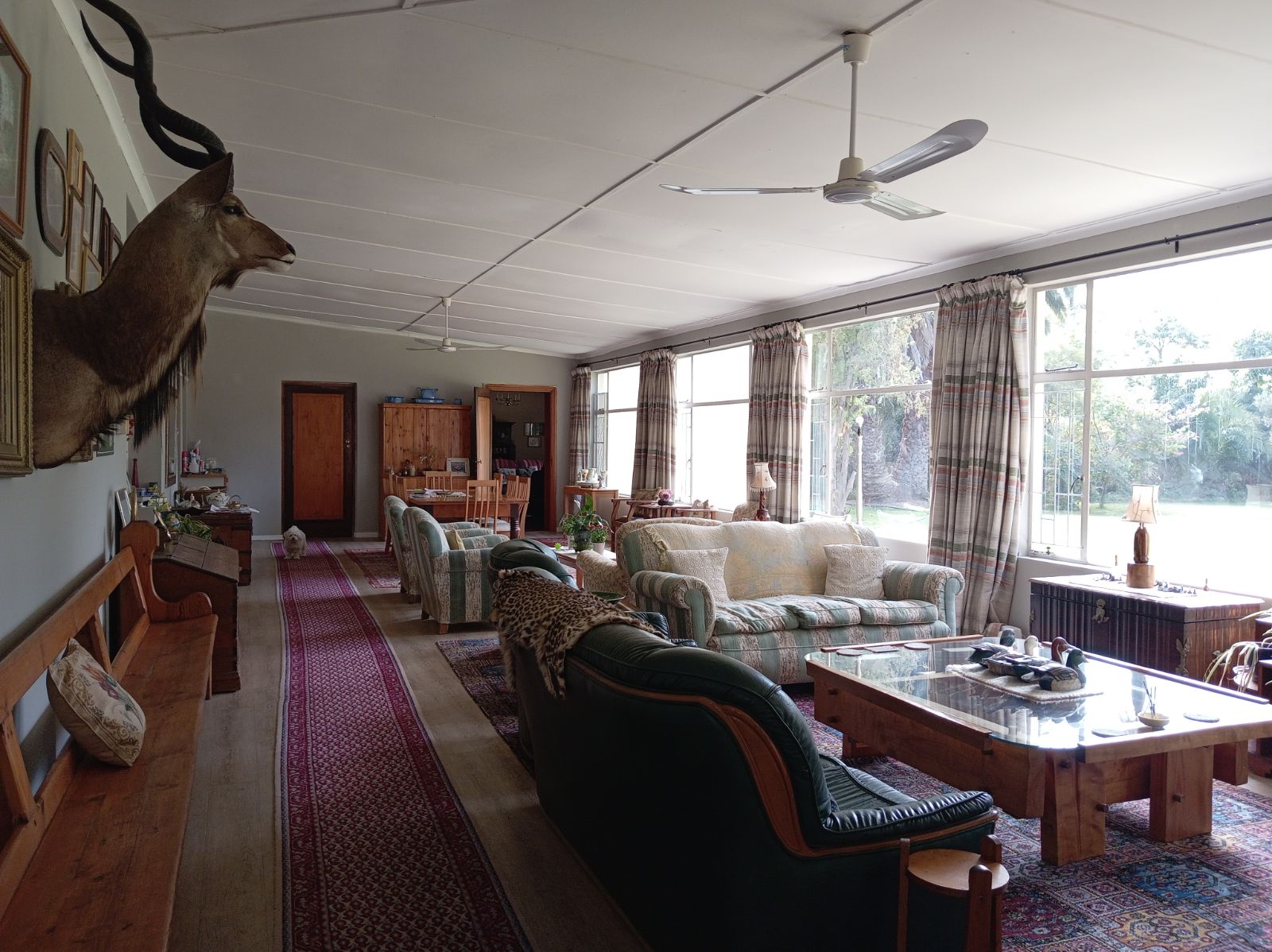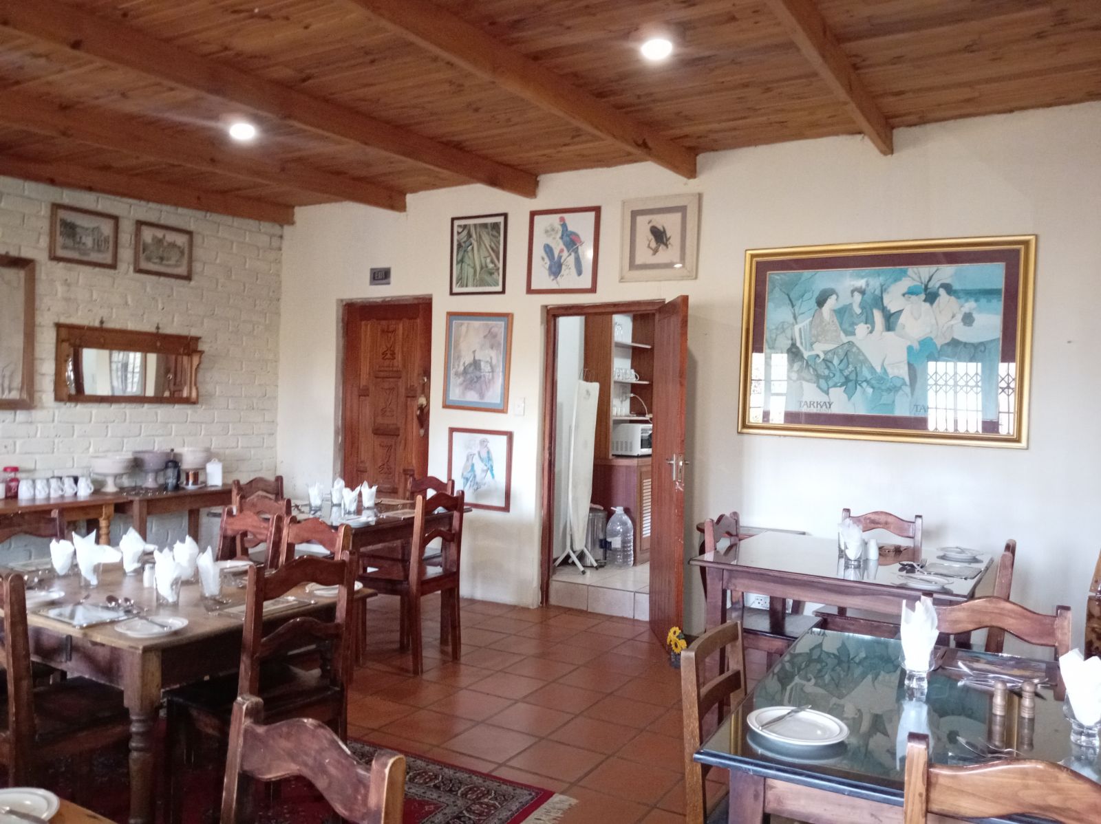 Guests enjoy meals in a dedicated dining room, with meals prepared in a well-equipped kitchen located separate from the main residence to maintain privacy. The property is also supported by a borehole, ensuring a sustainable water supply and a dam for water storage.