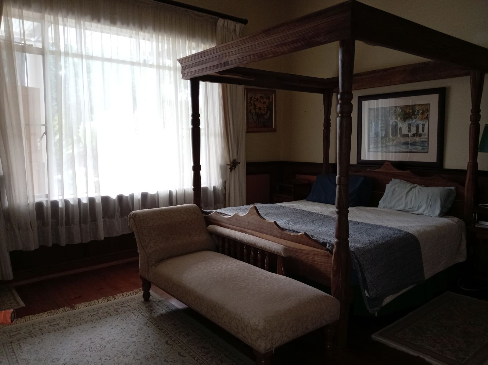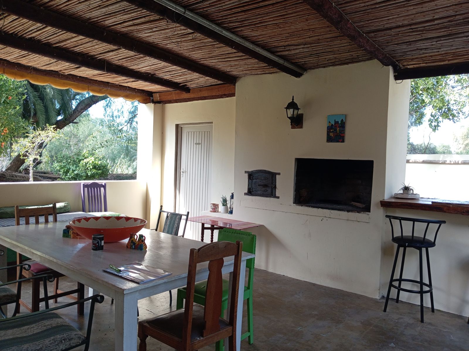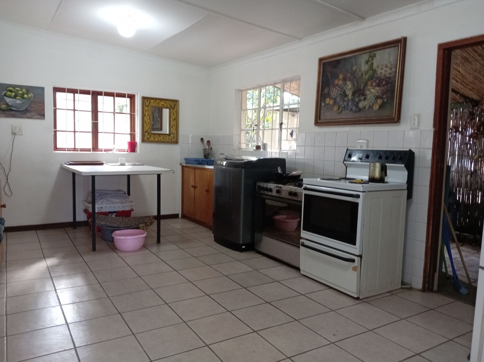 Guests enjoy meals in a dedicated dining room, with meals prepared in a well-equipped kitchen located separate from the main residence to maintain privacy. The property is also supported by a borehole, ensuring a sustainable water supply and a dam for water storage.