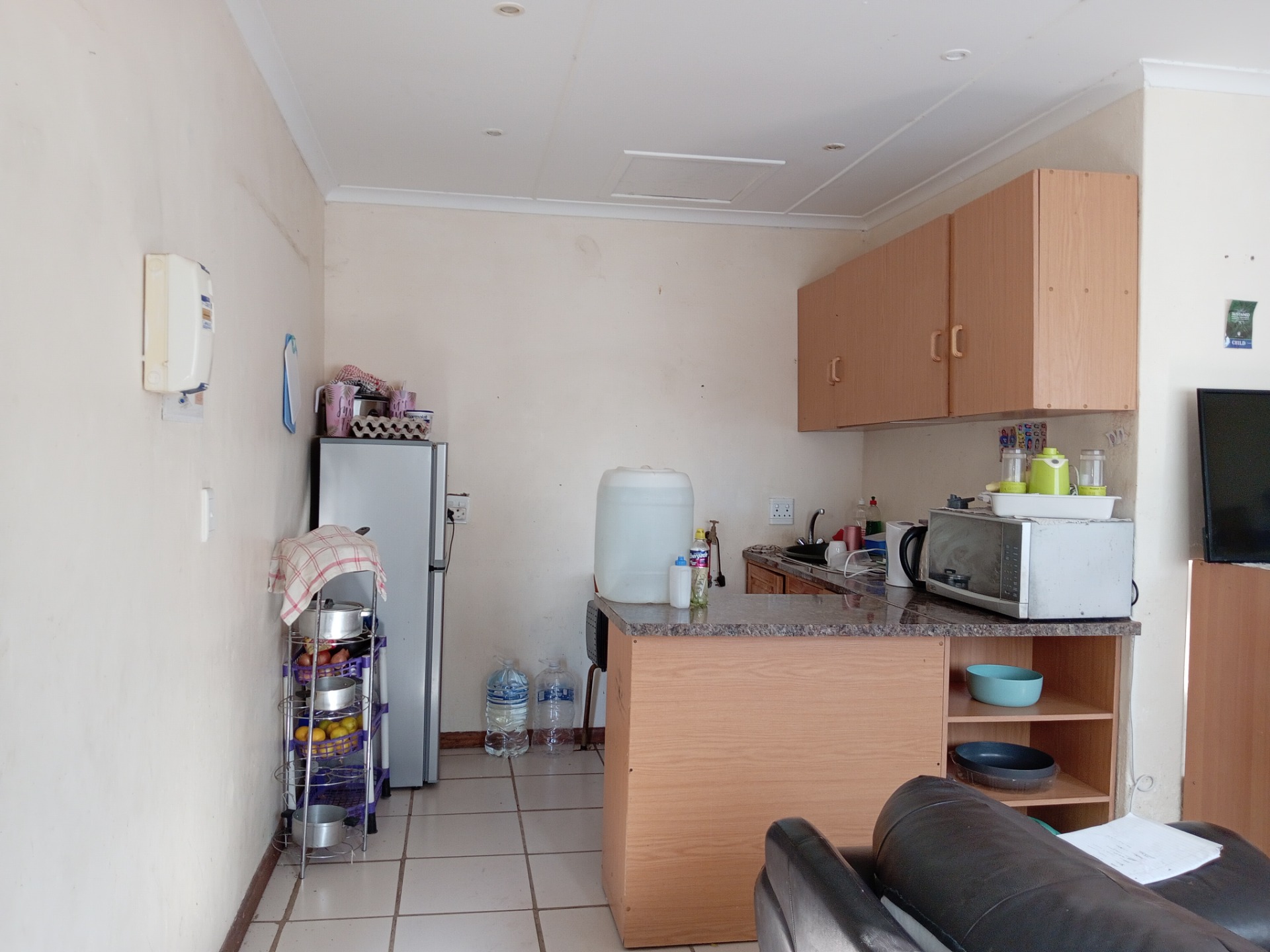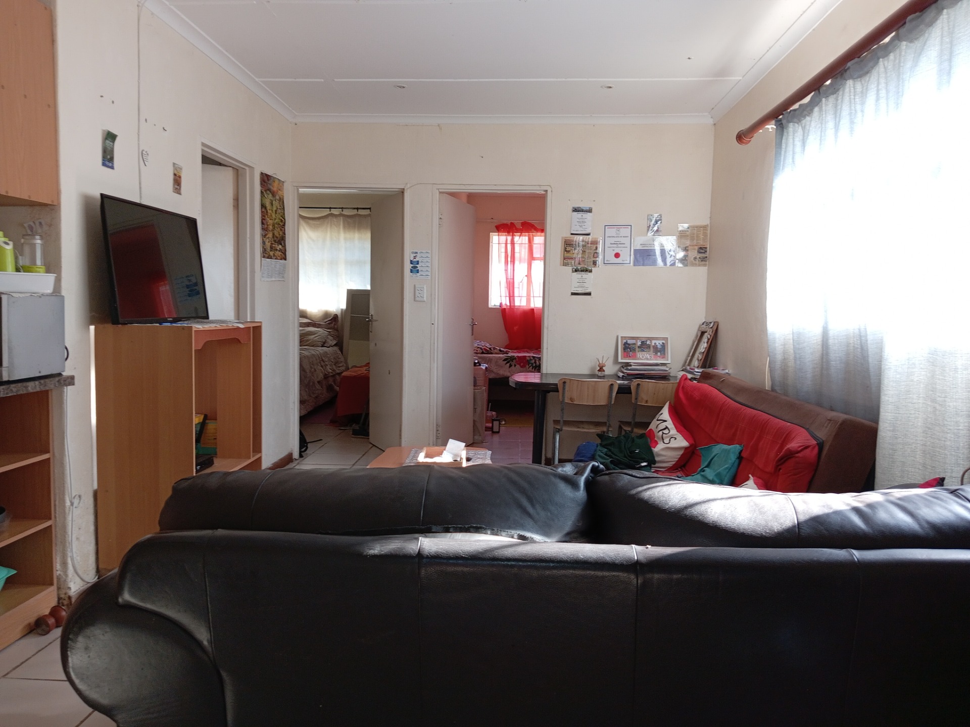 3 Bedrooms (one with BIC's) provides a nice space for a family. There is a large lounge, a dining room area and a kitchen. One bathroom with a bath and shower and a back stoep that has been enclosed and can be utilized as a TV room.