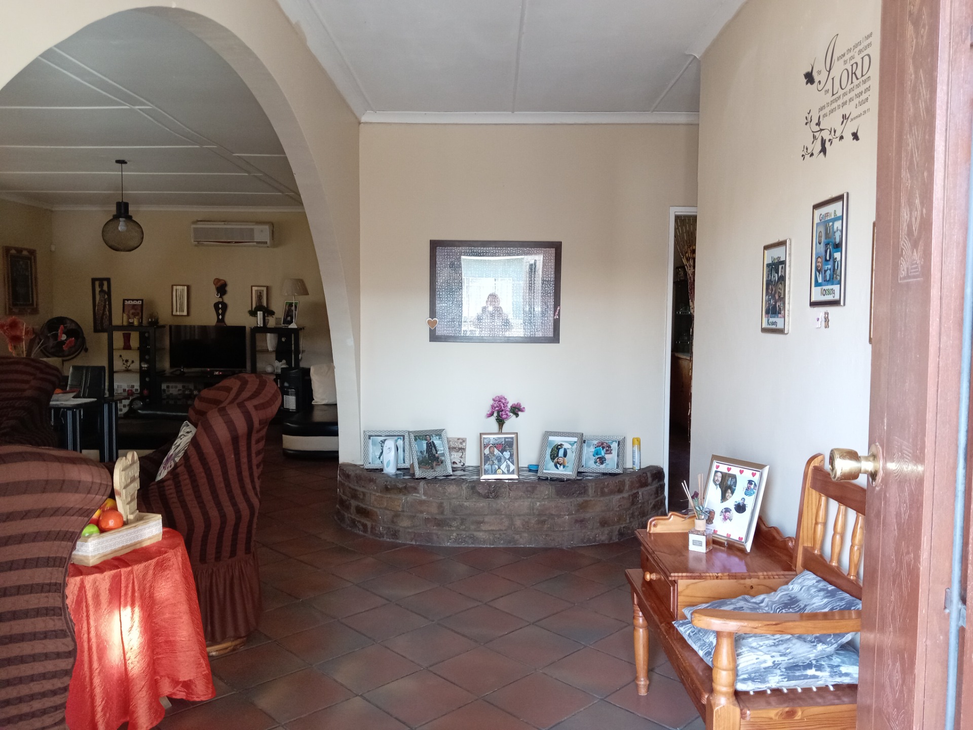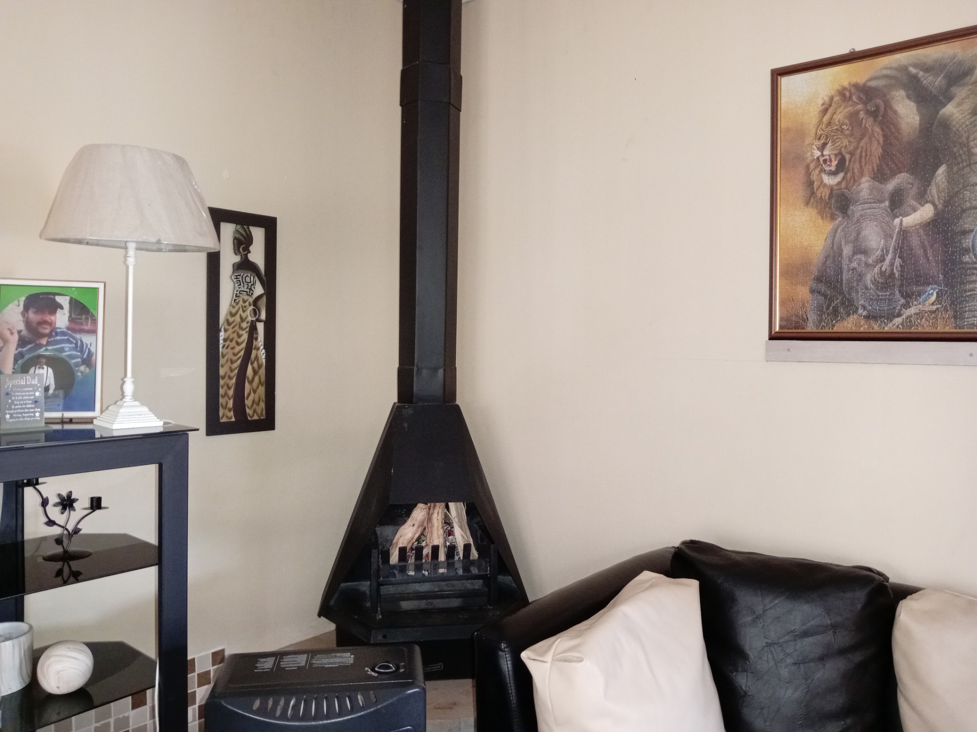 - Comfortable Living Areas: The living area is designed for relaxation and warmth, highlighted by a built-in Jetmaster fireplace that provides a cozy atmosphere during colder months. Trellidoors in the corridoor offer an added layer of security and privacy, separating the bedrooms from the living space.